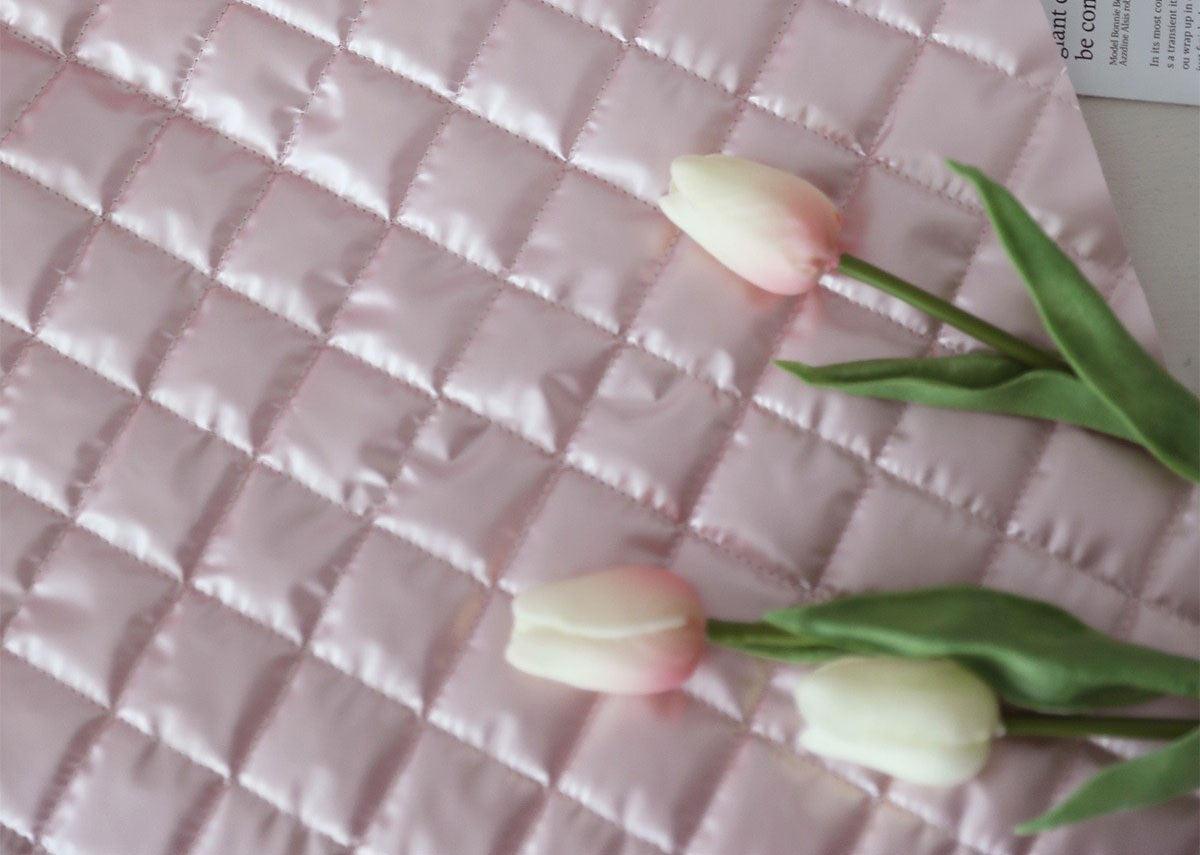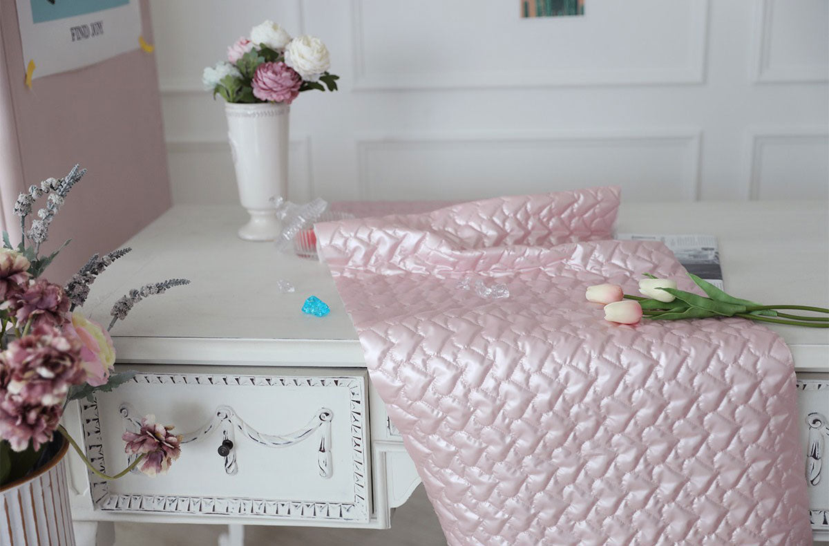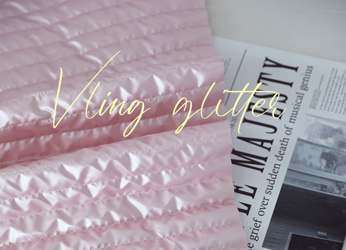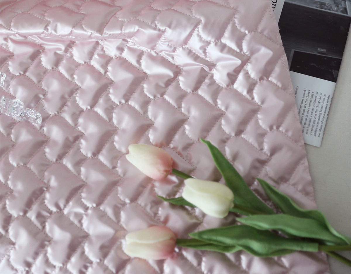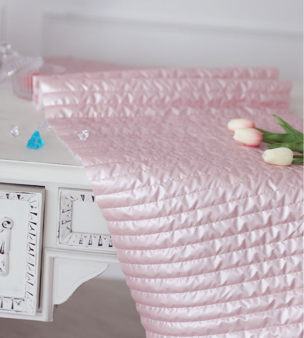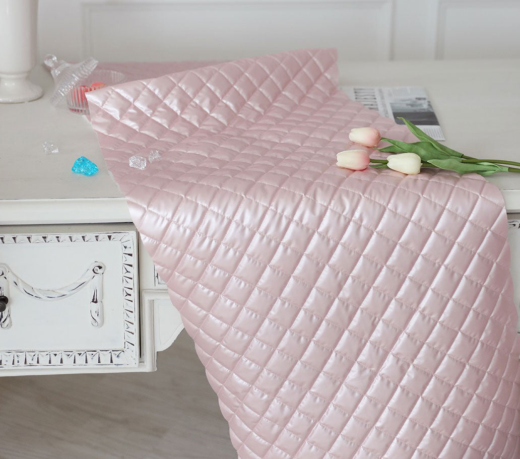 Pink Glitter Stripe Diamond Heart Patterned Polyester Quilted Nubi Fabric - Korean Fabric