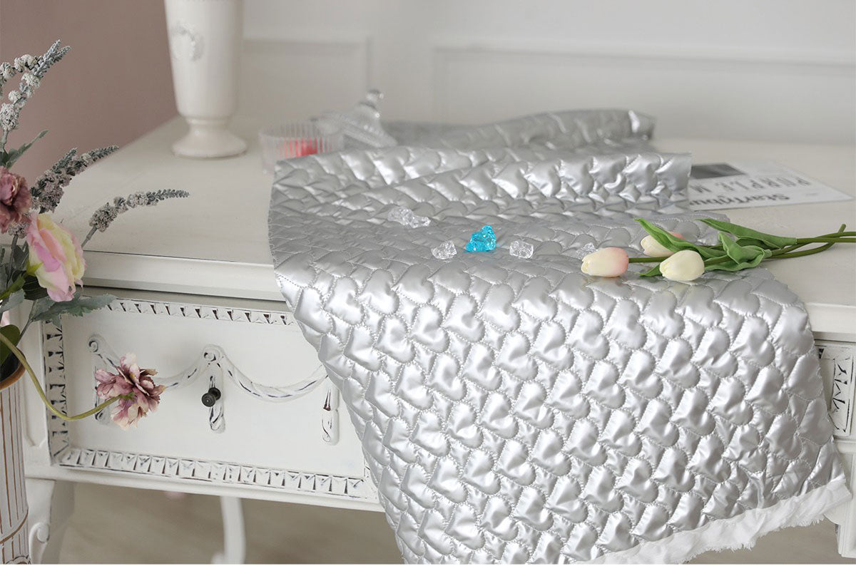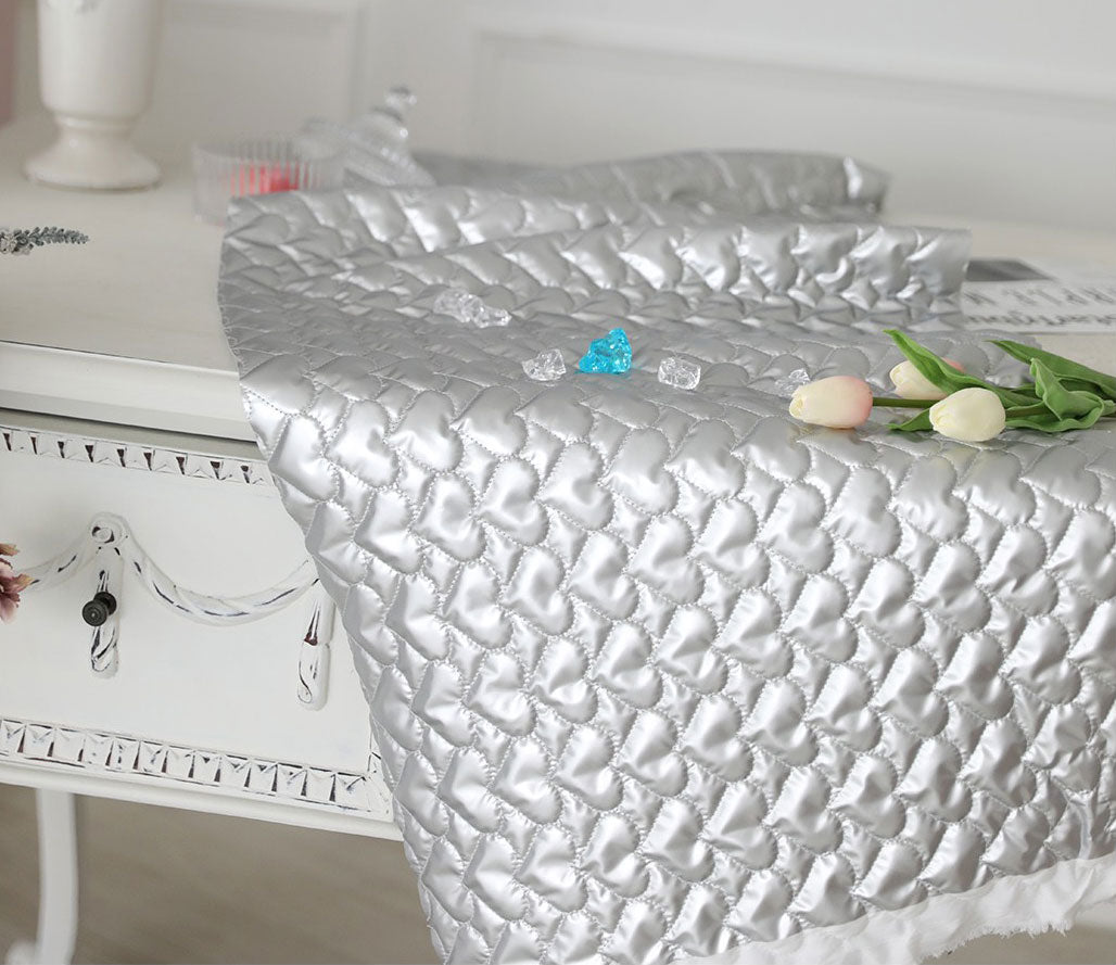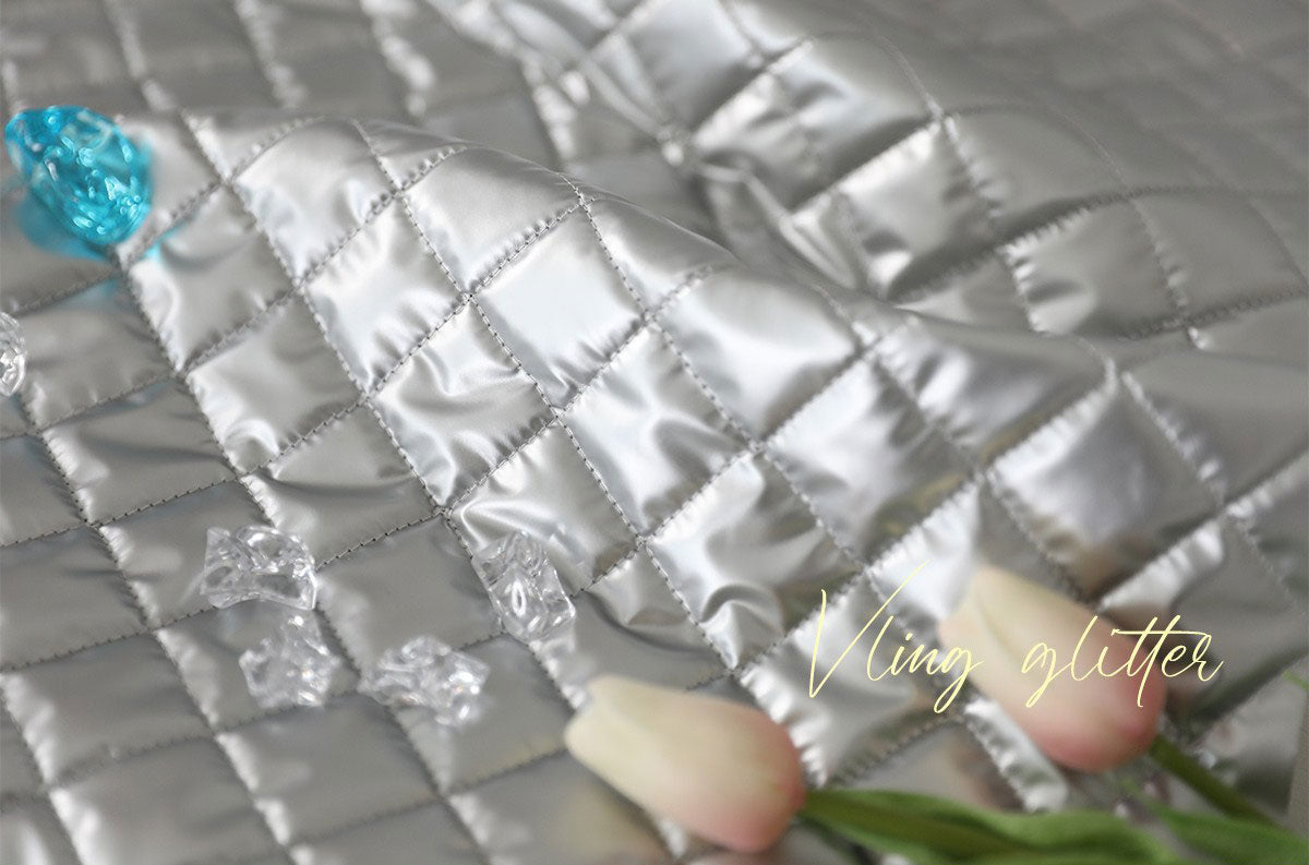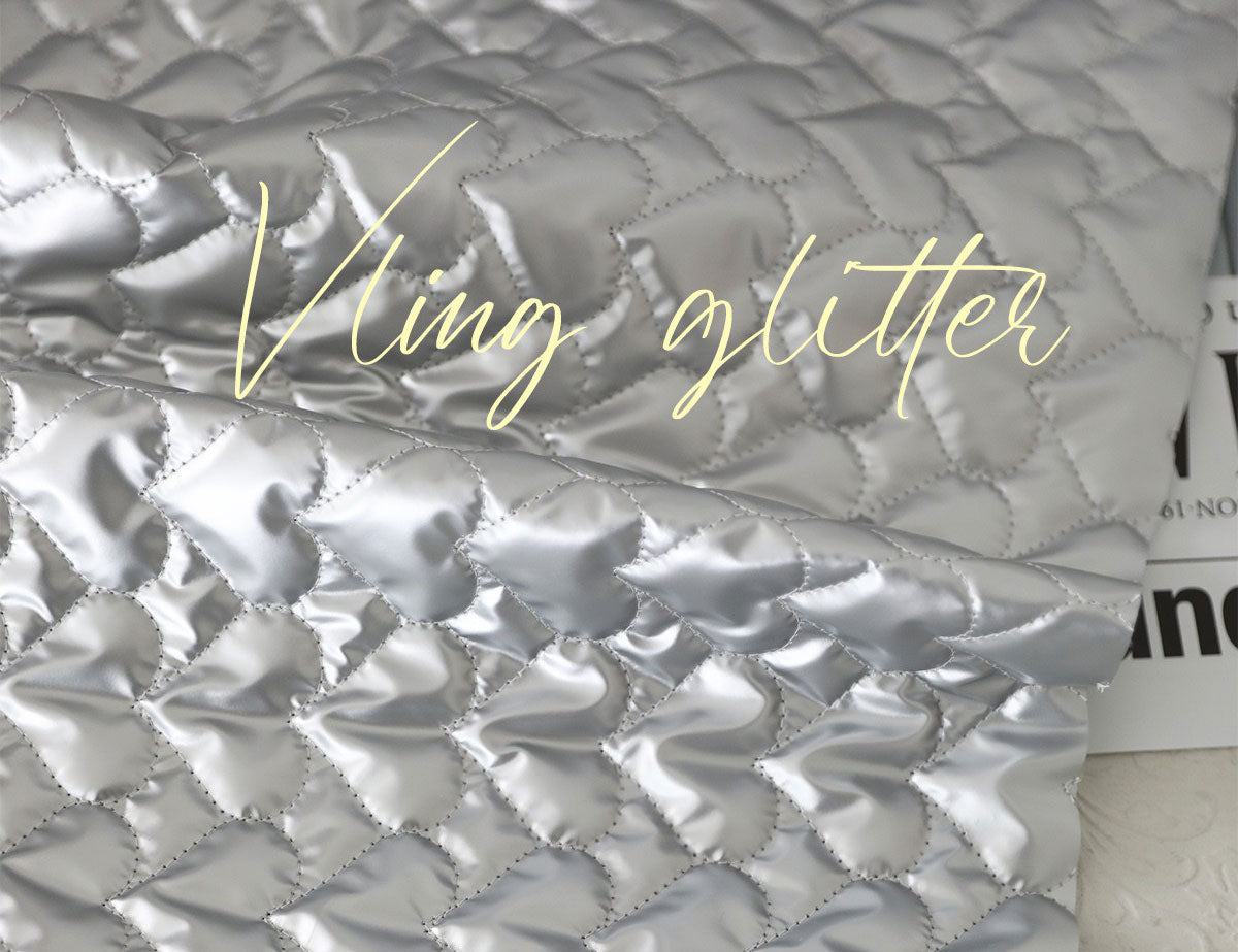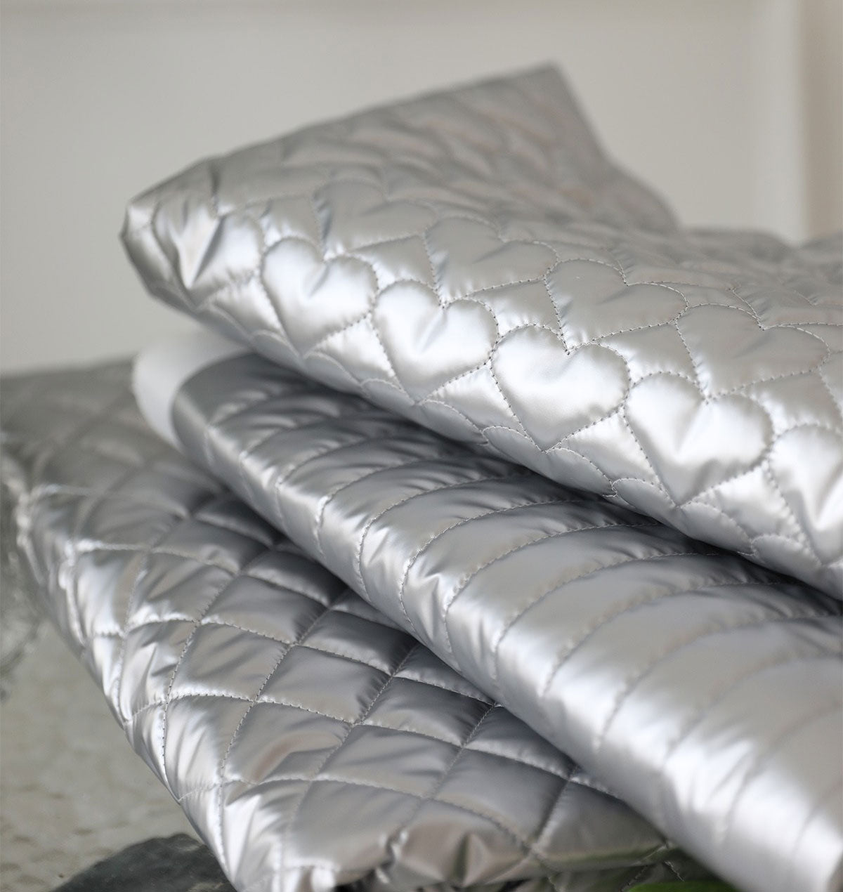 Silver Glitter Stripe Diamond Heart Patterned Polyester Quilted Nubi Fabric - Korean Fabric