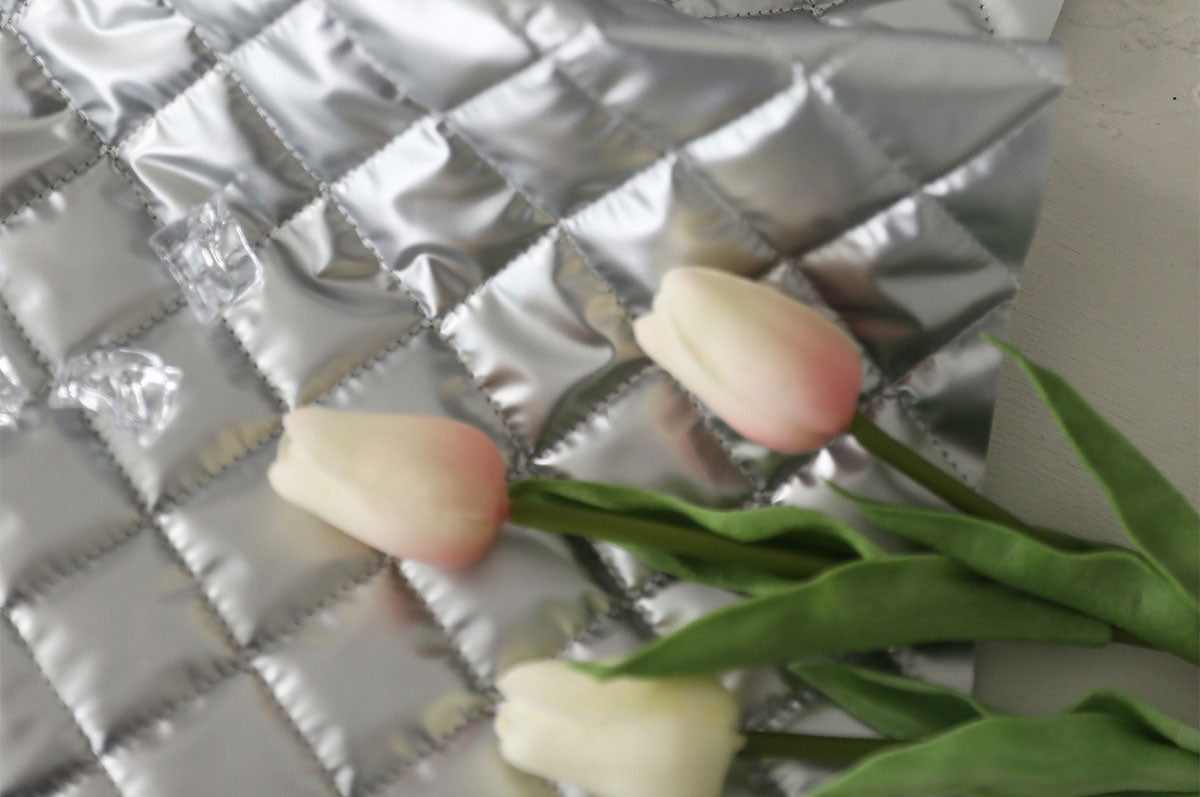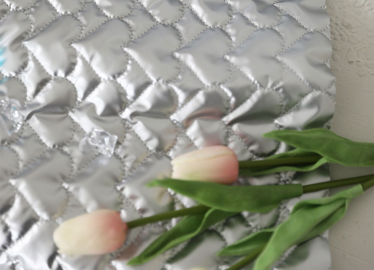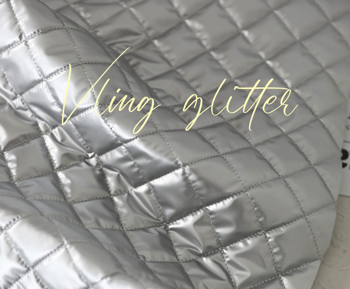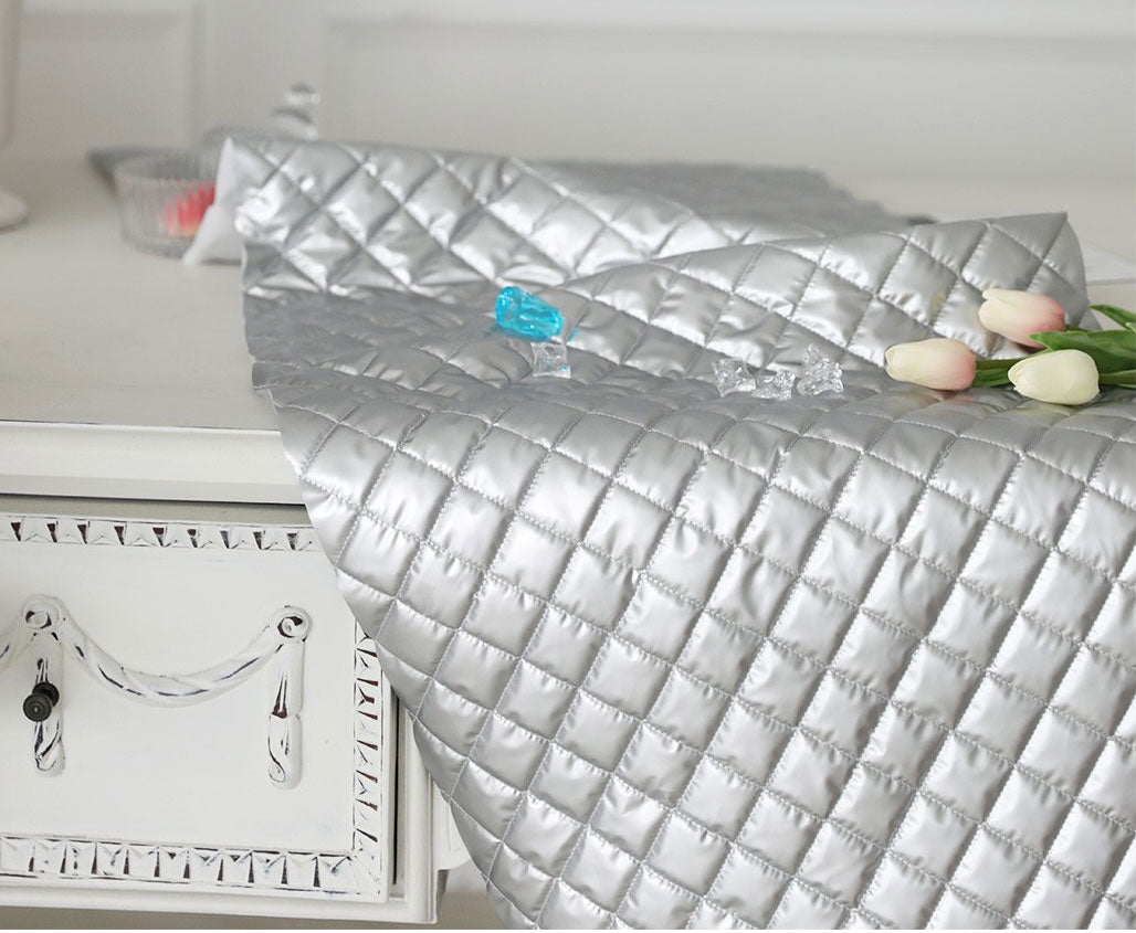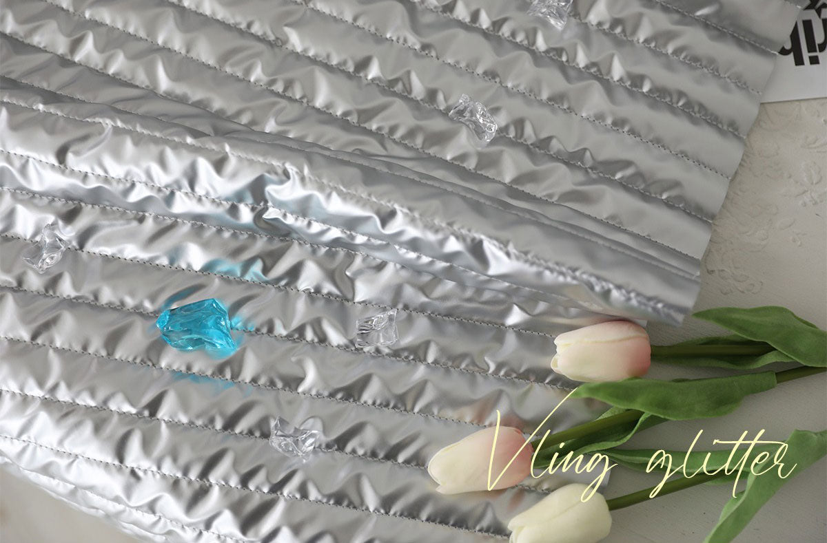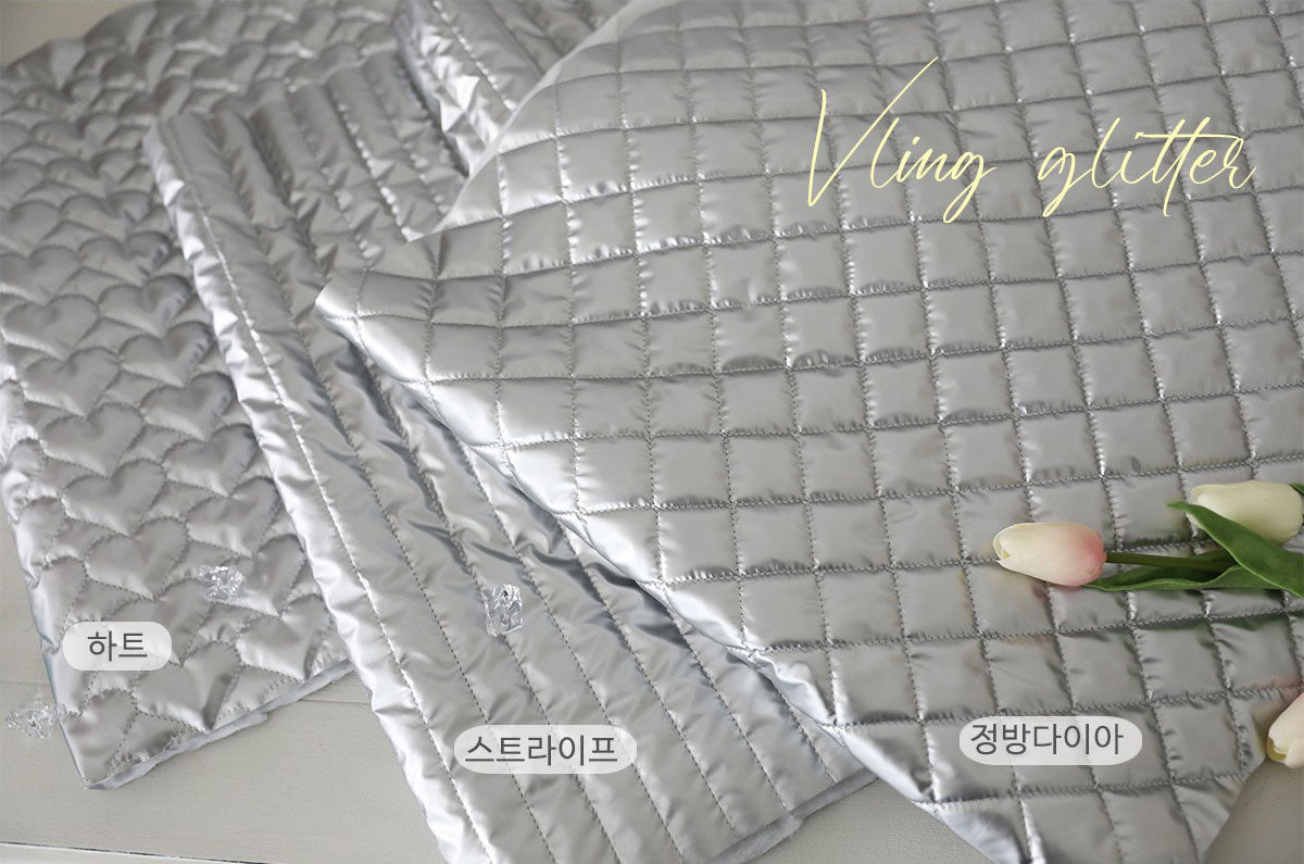 Silver Glitter Stripe Diamond Heart Patterned Polyester Quilted Nubi Fabric - Korean Fabric