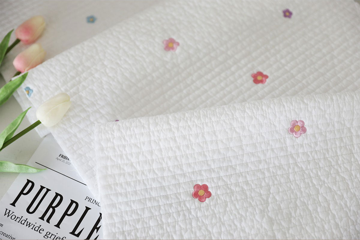 High Quality Daisy Embroidery Cotton Nubi Double Sided 60s Quilted Fabric