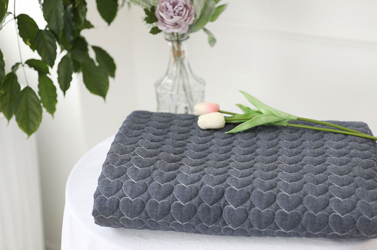 Heart Patterned Quilted Nubi Fabric - Korean Fabric