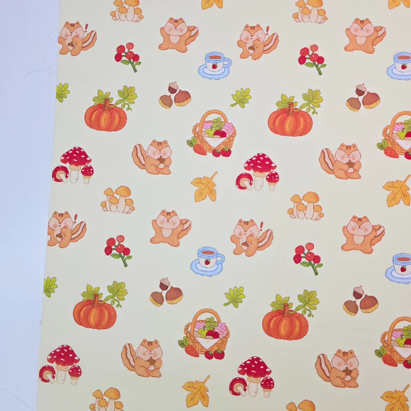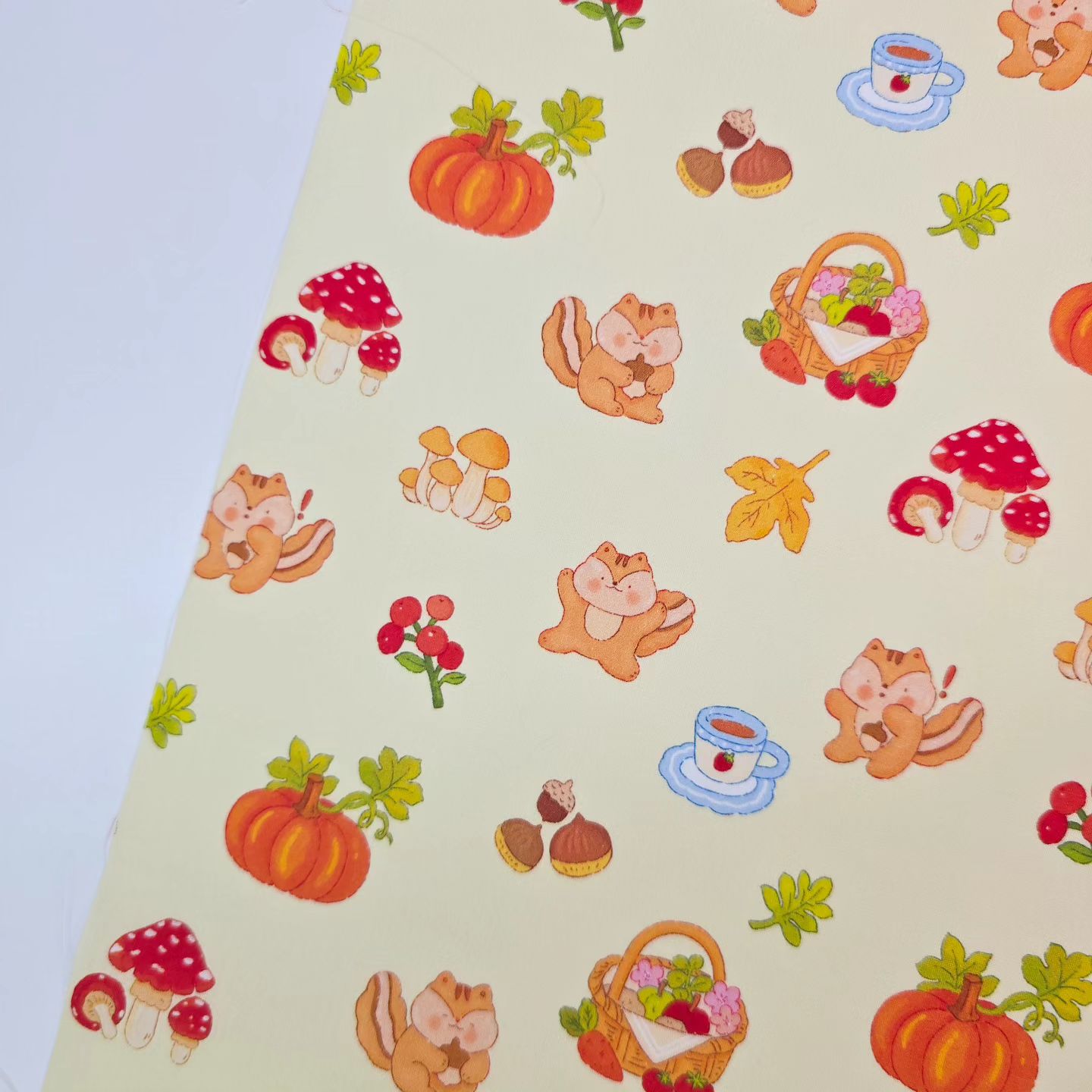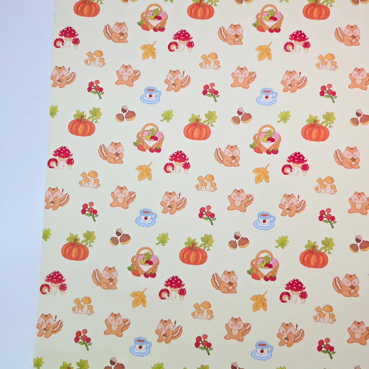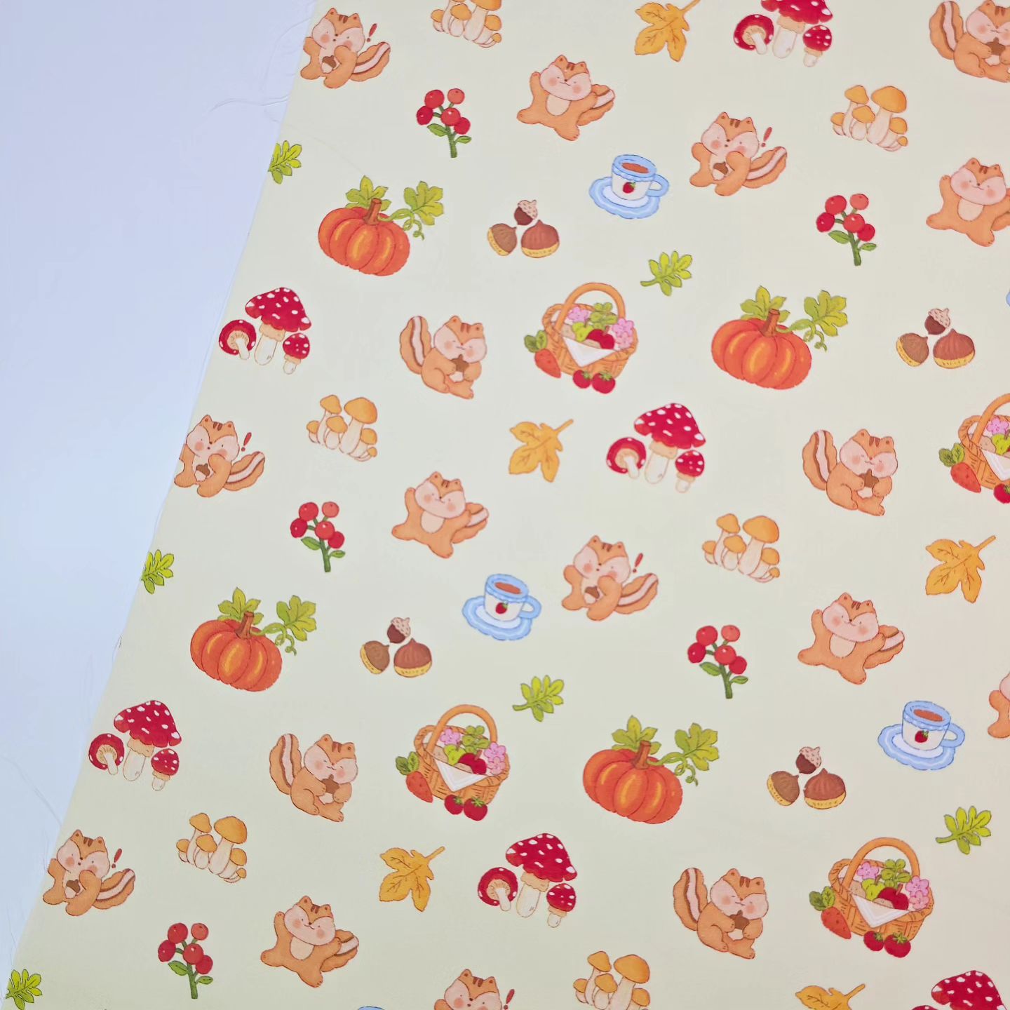 Fruits & Squirrel Patterned Fabric, Cute, Kids, Sewing, Quilt - Korean Fabric