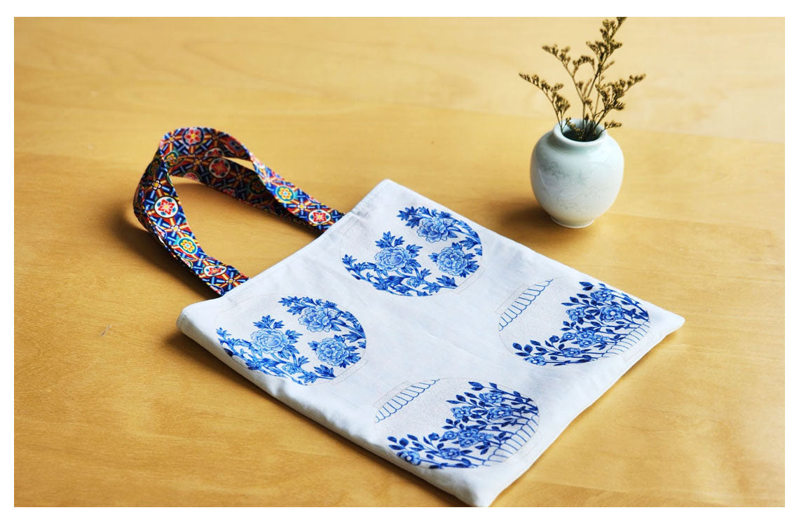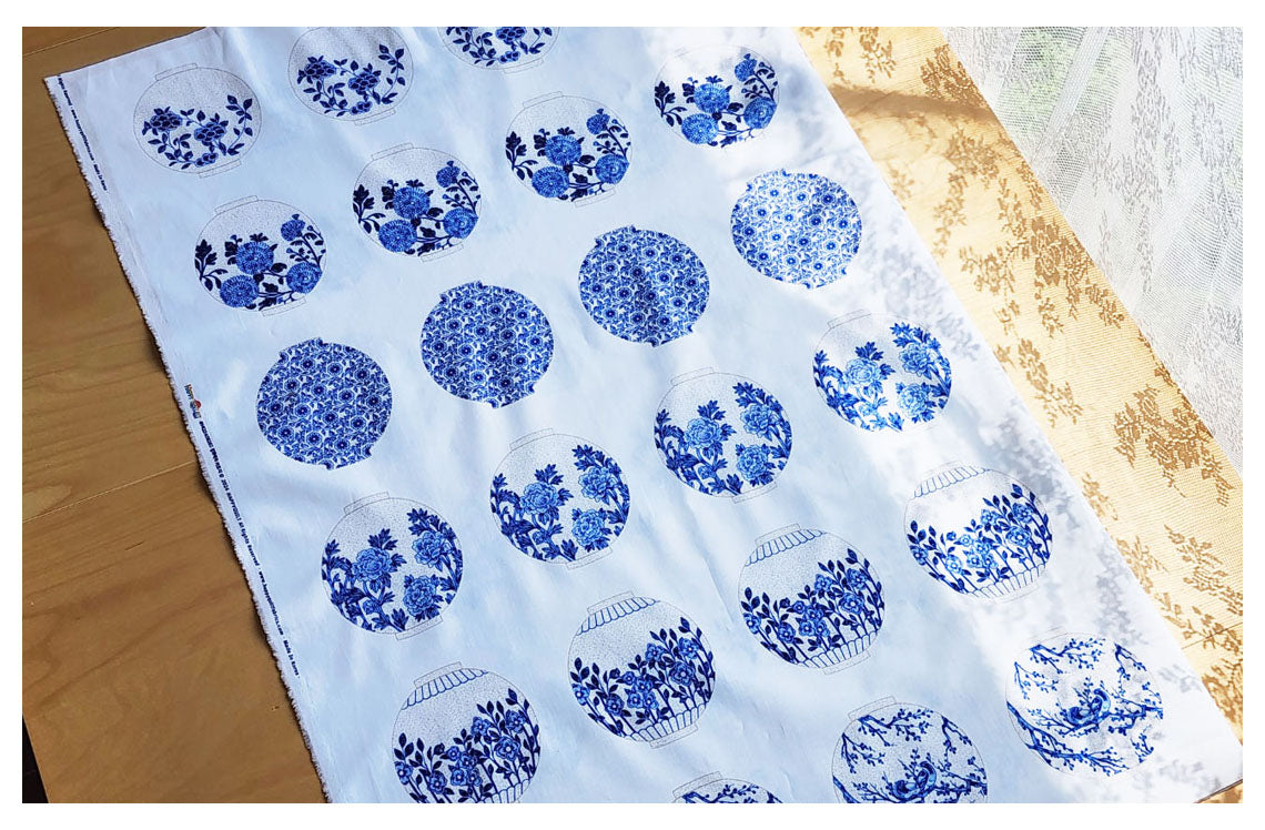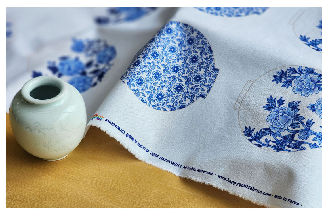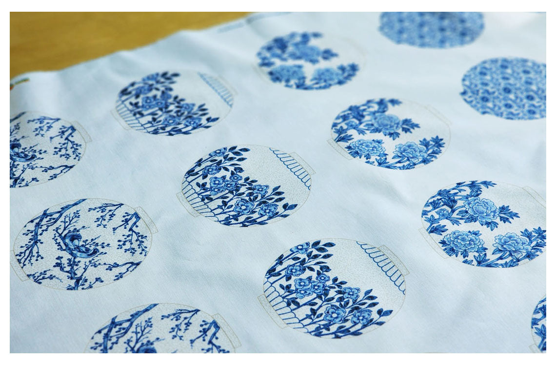 Korean Traditional Design Blue White Porcelain Pattern Fabric Korean Fabric