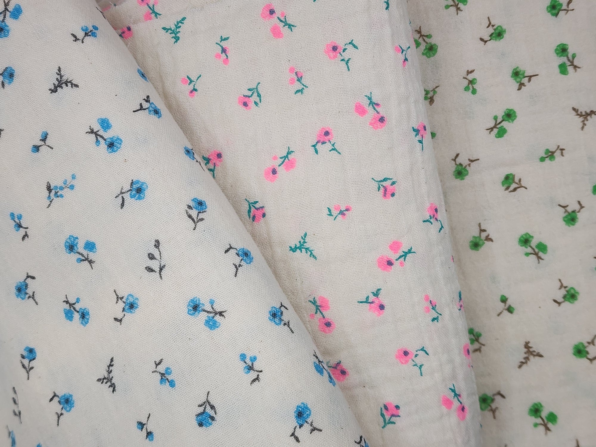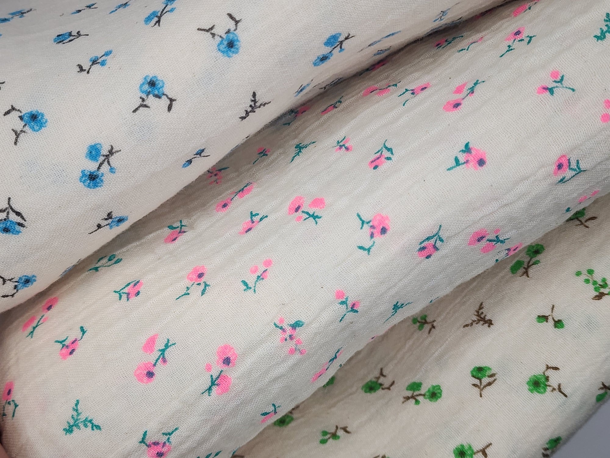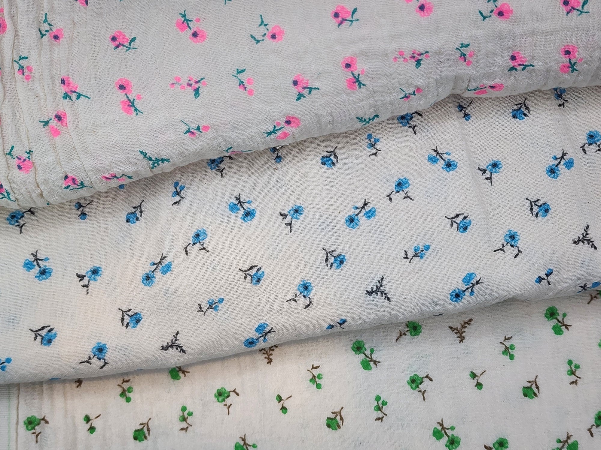 Petite Flower Branch Patterned Double Gauze Fabric - Korean Fabric