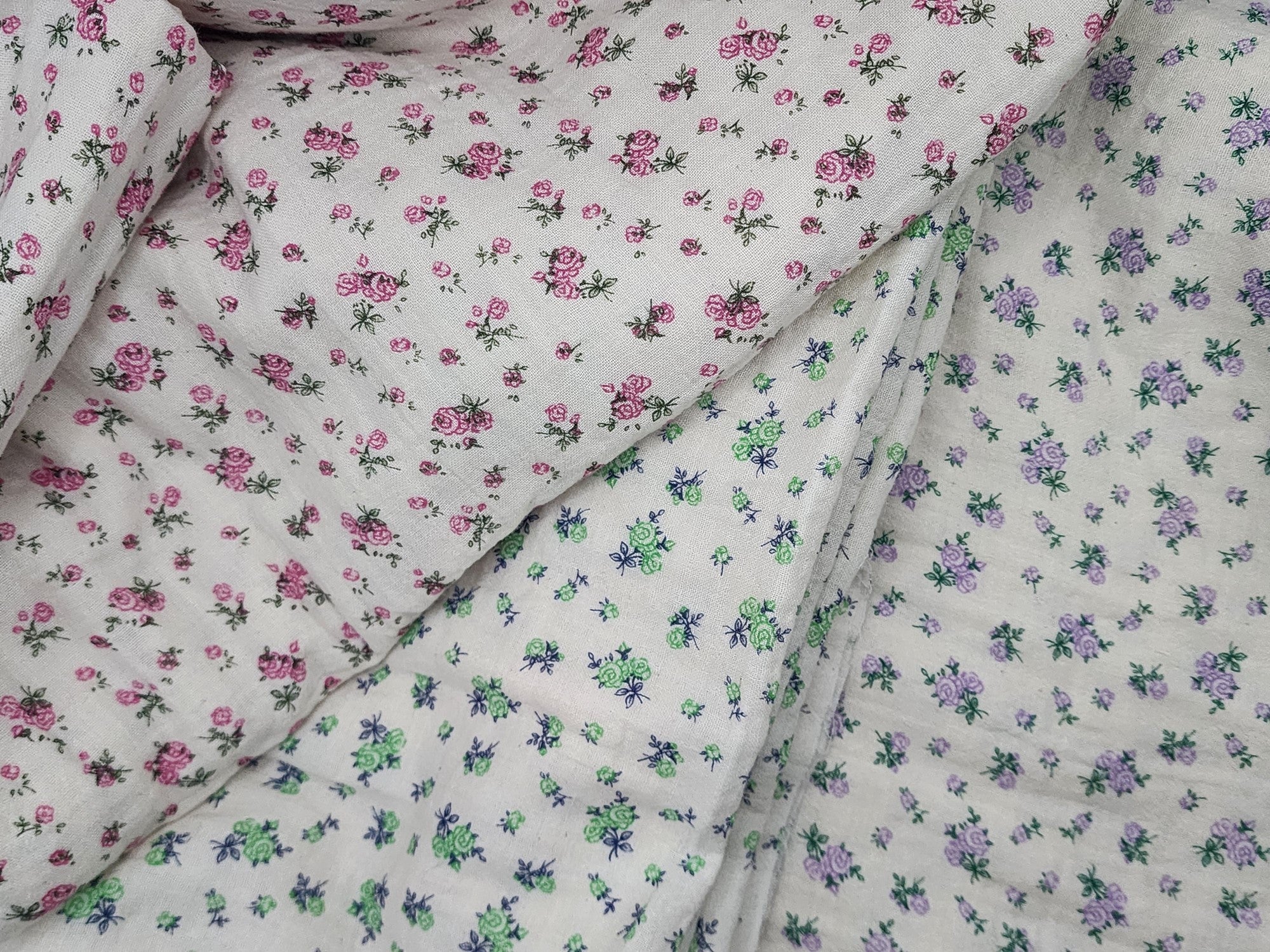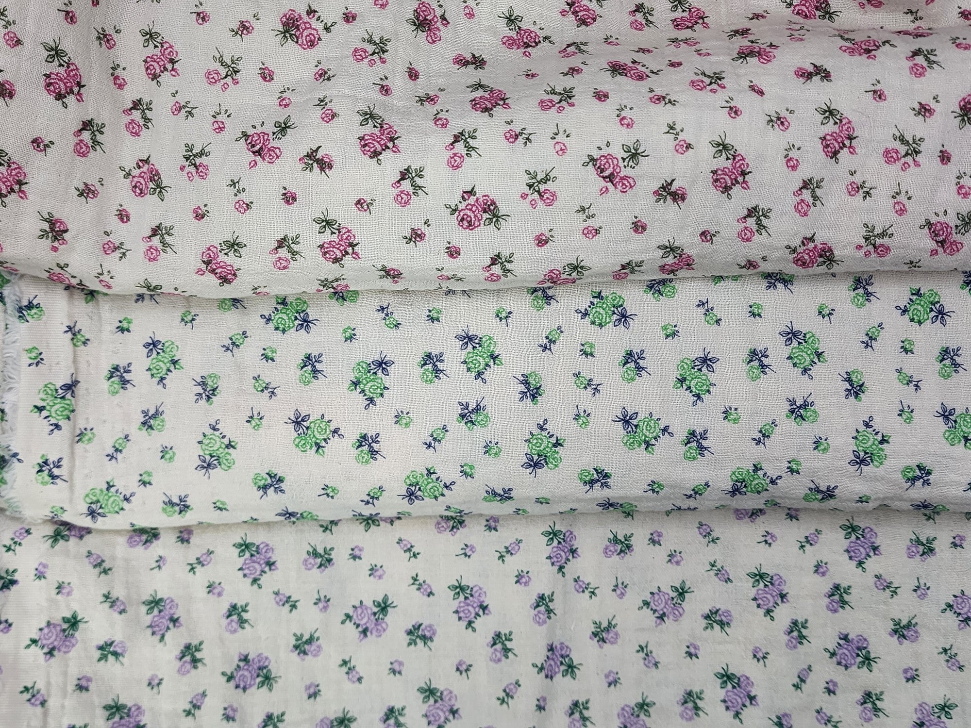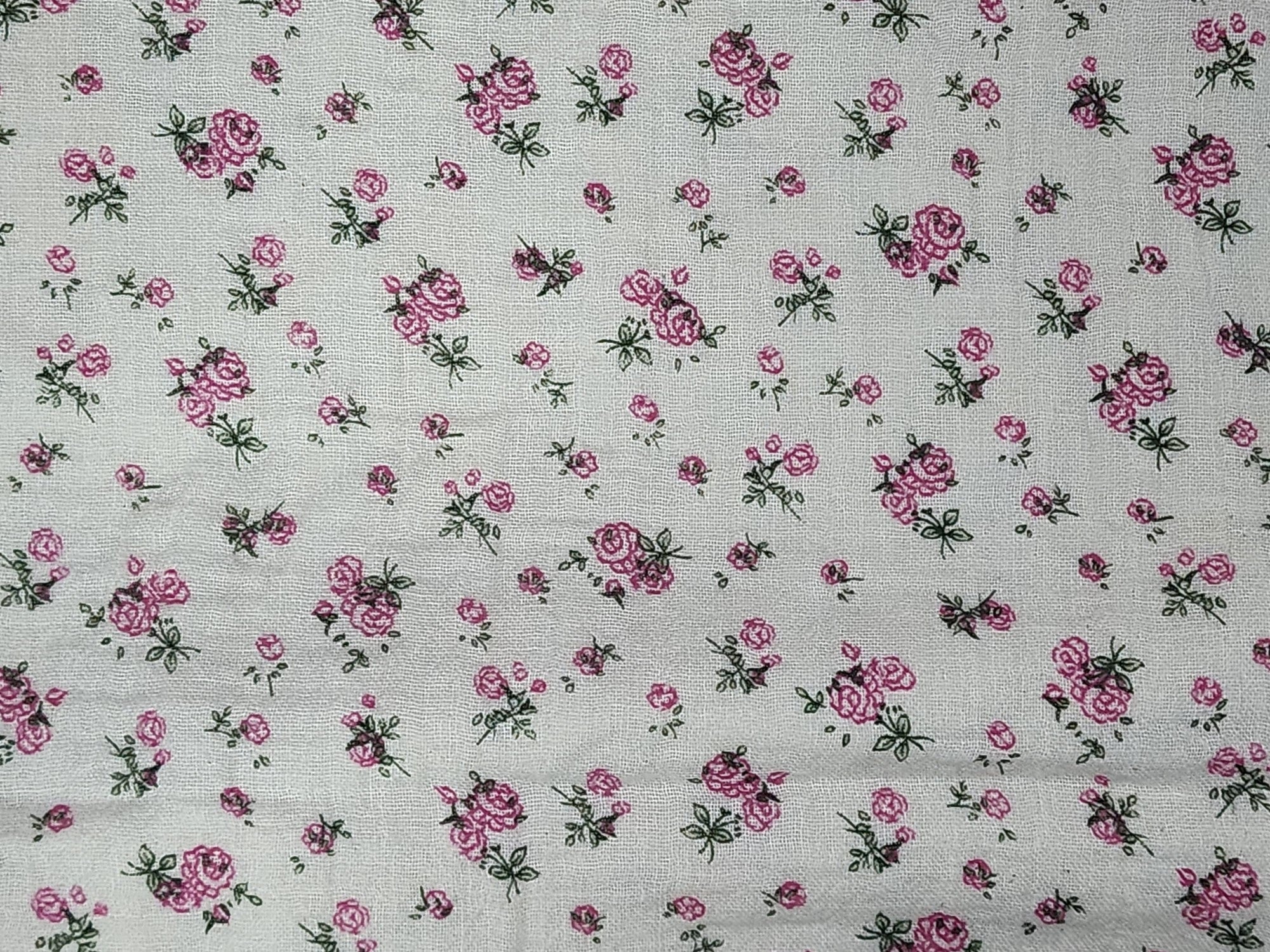 Petite Rose Flower Patterned Double Gauze Fabric - Korean Fabric