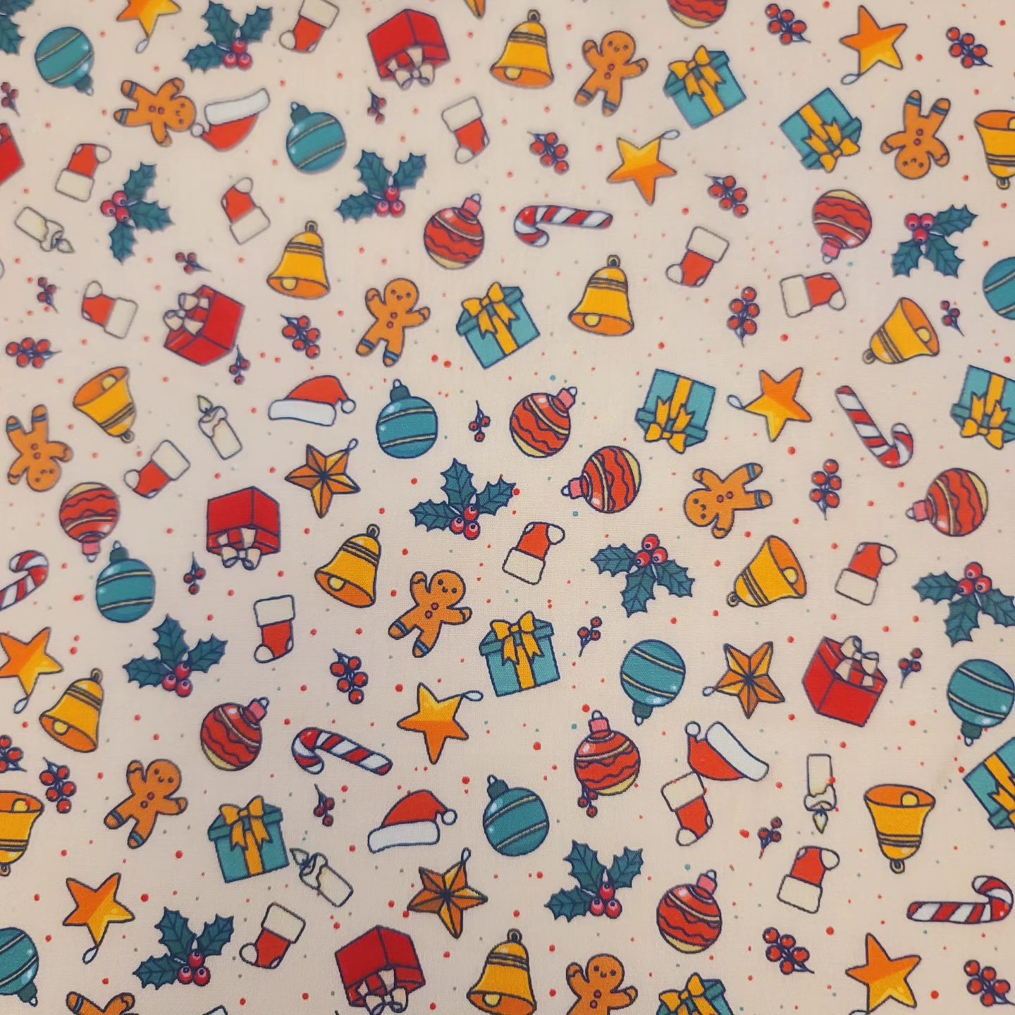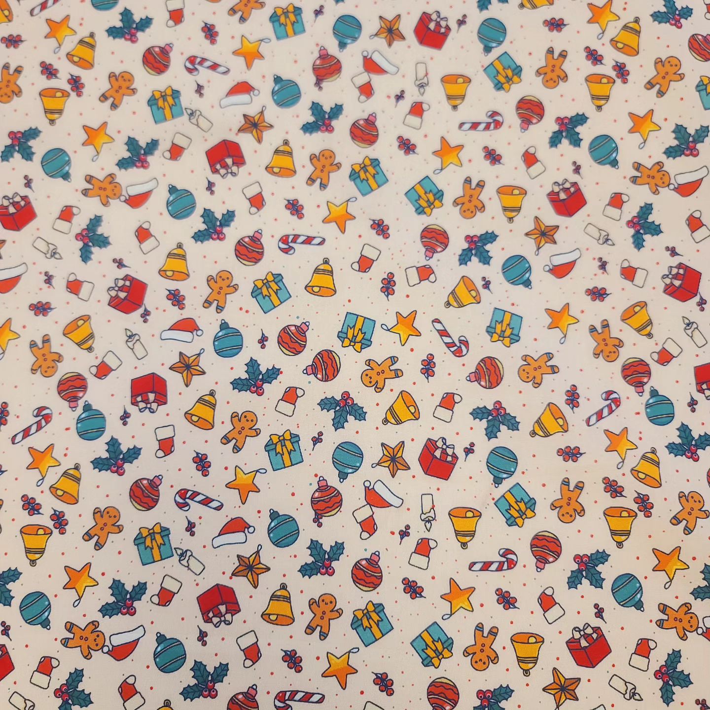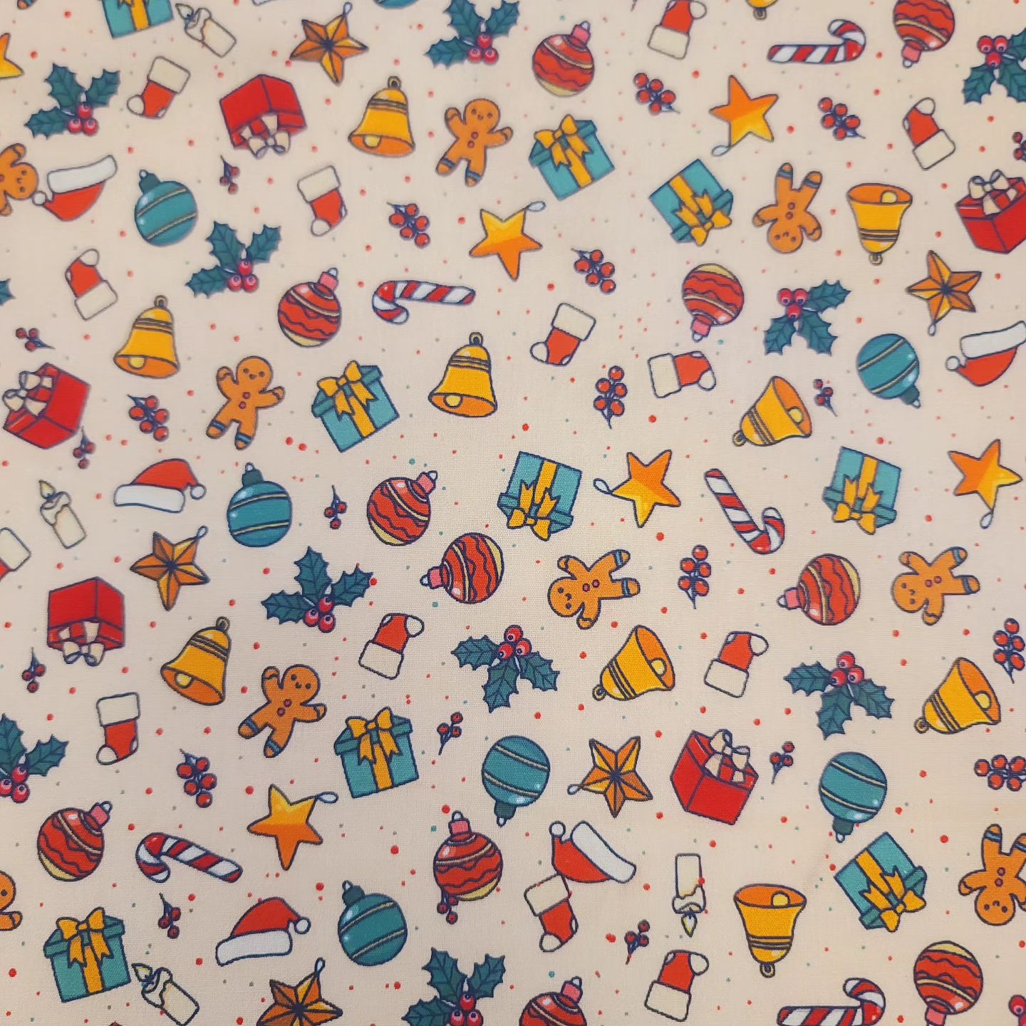 Casual Christmas Present Santa Cookie Bell Tree Patterned Fabric - Korean Fabric