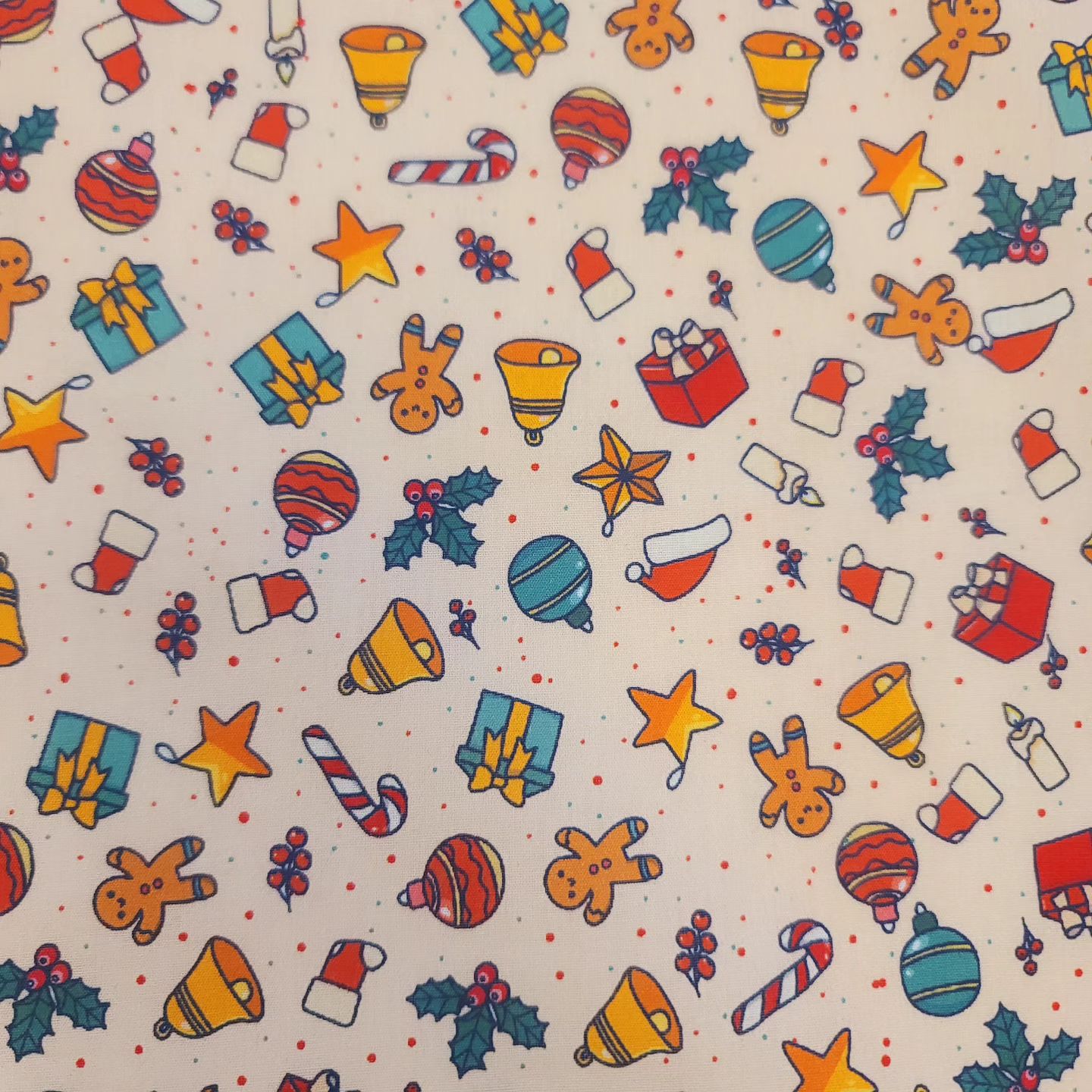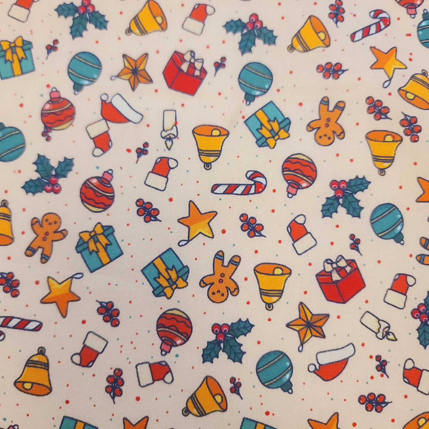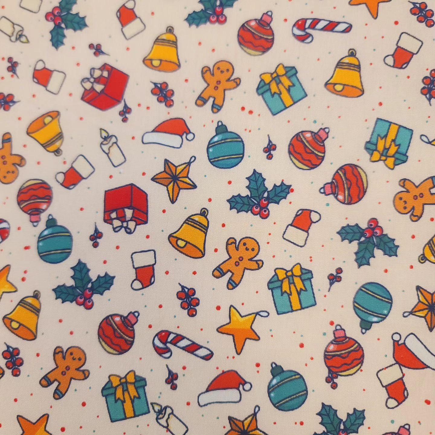 Casual Christmas Present Santa Cookie Bell Tree Patterned Fabric - Korean Fabric