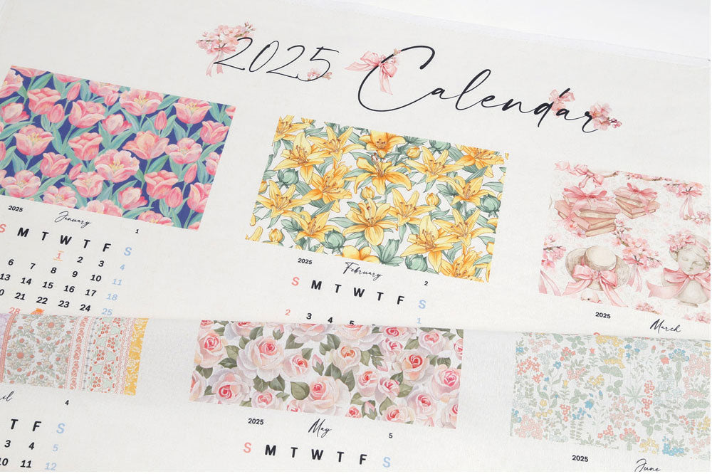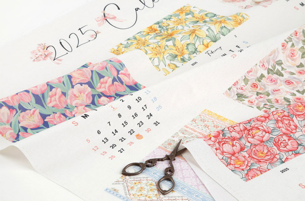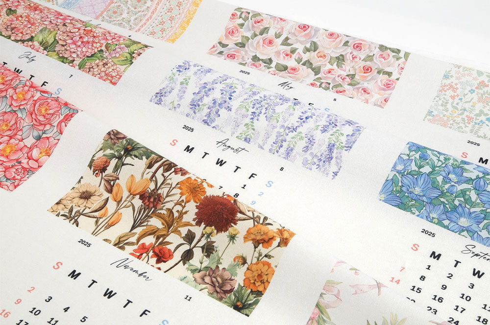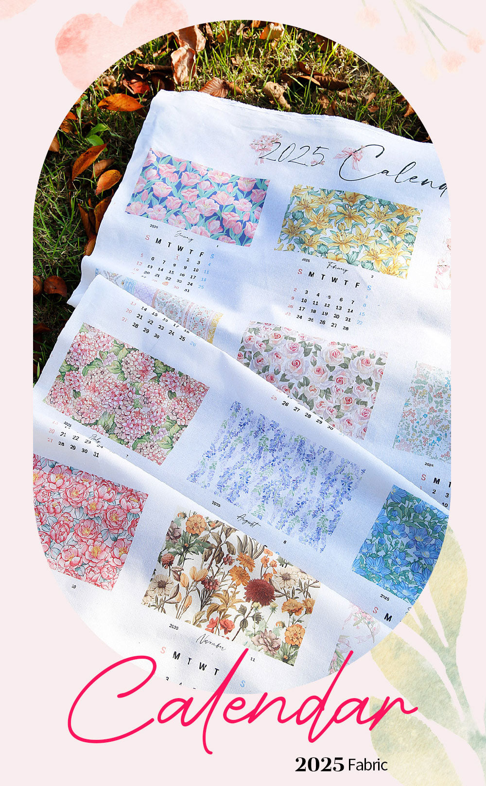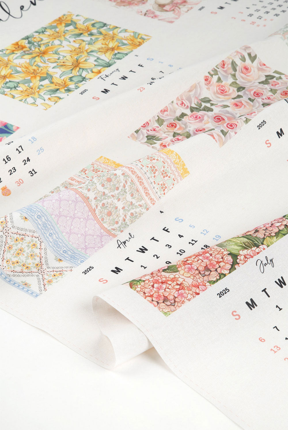 Floral Designed Calendar for 2025 Panel Cut Fabric Korean Fabric