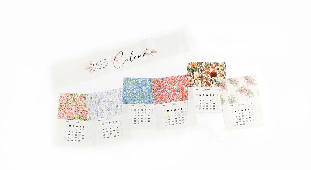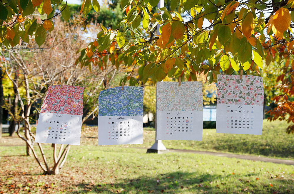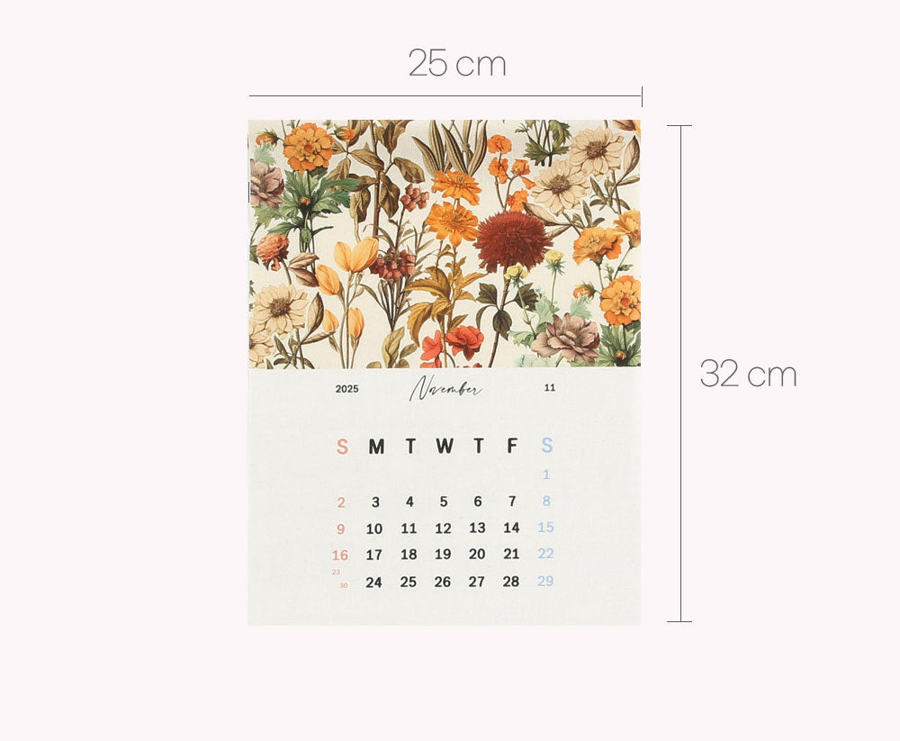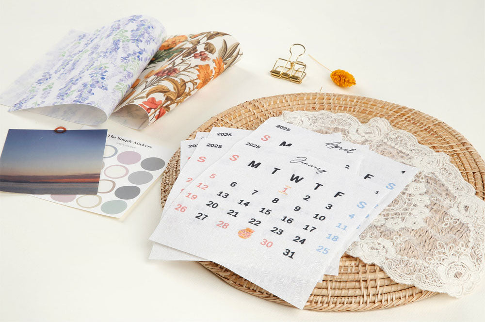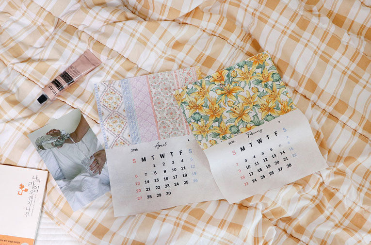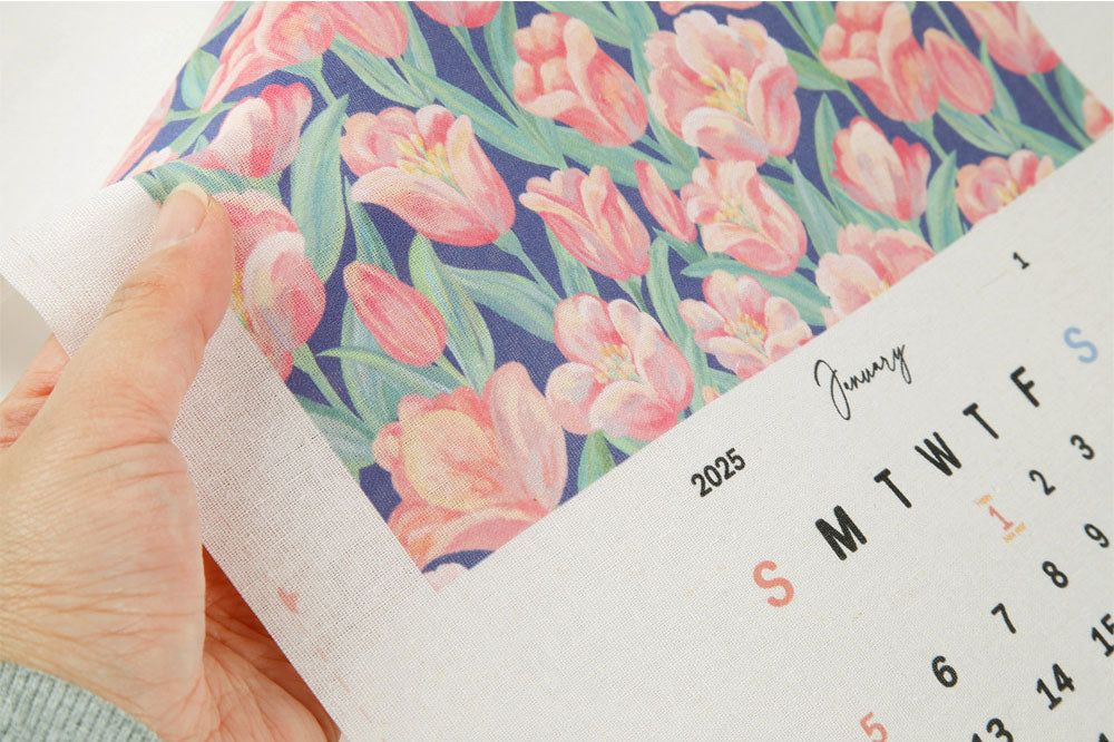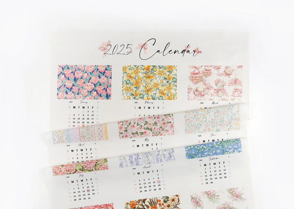 Floral Designed Calendar for 2025 Panel Cut Fabric Korean Fabric