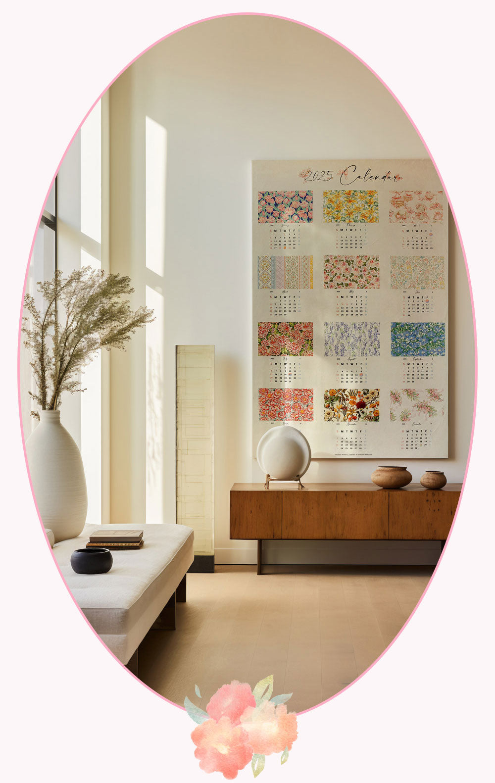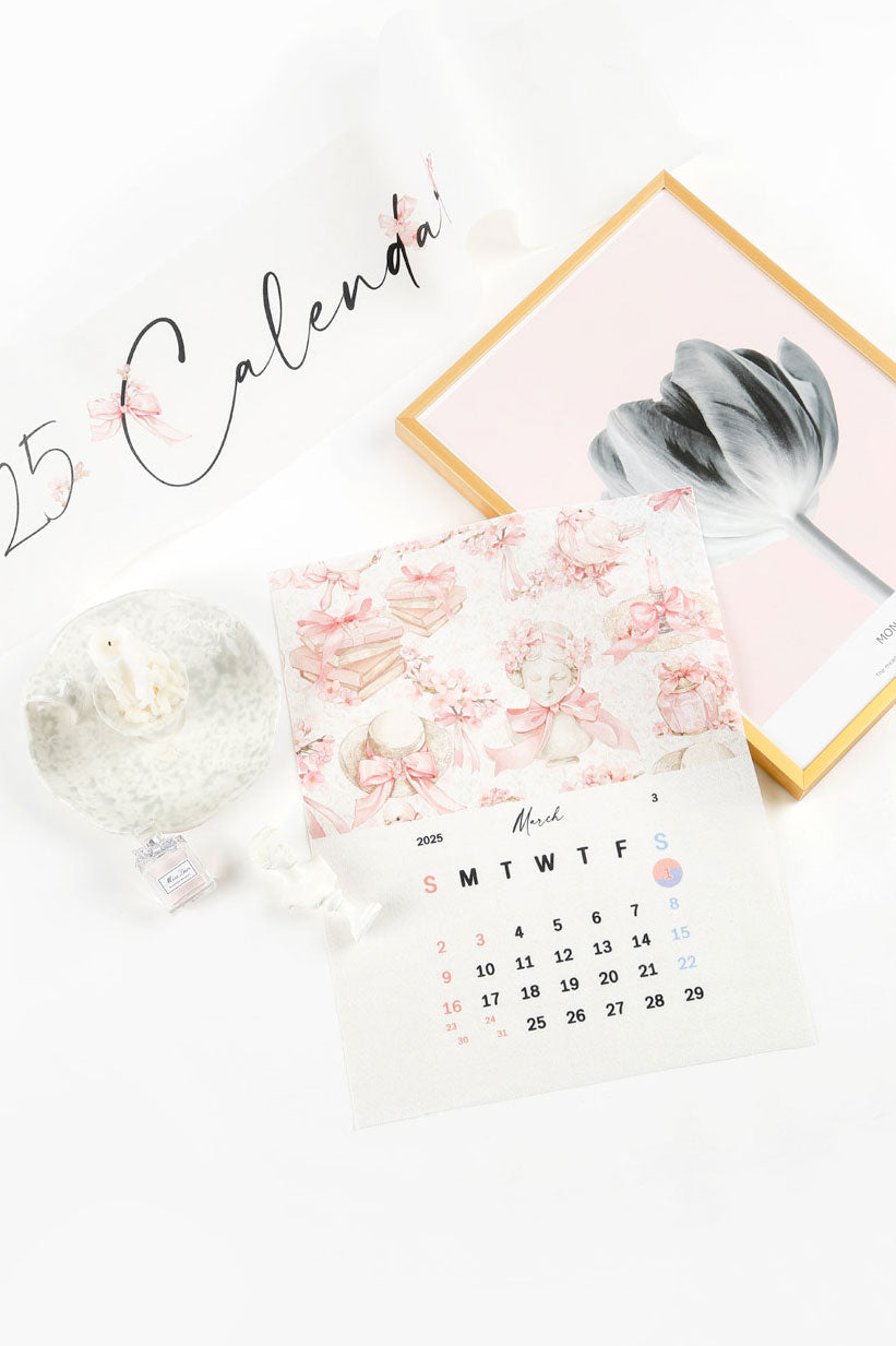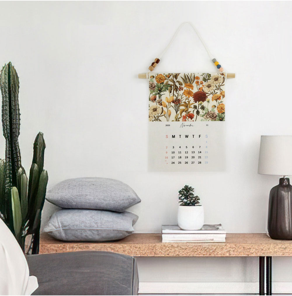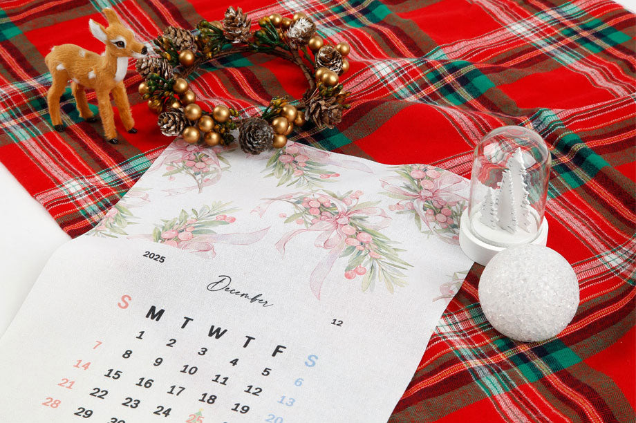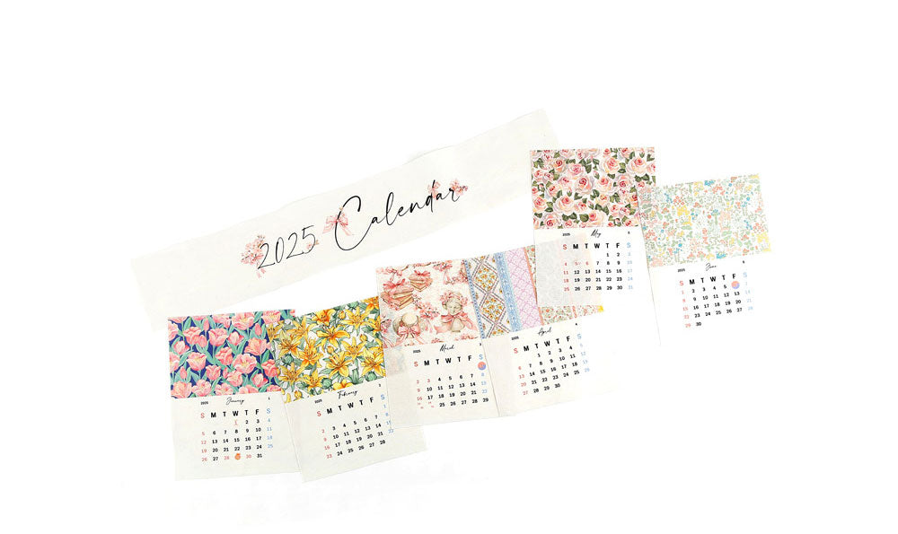 Floral Designed Calendar for 2025 Panel Cut Fabric Korean Fabric