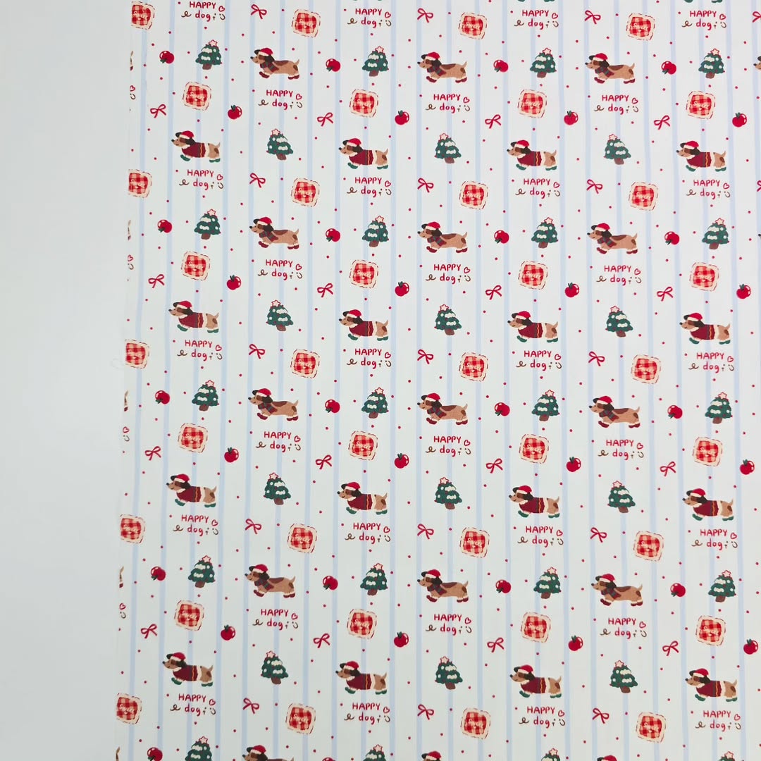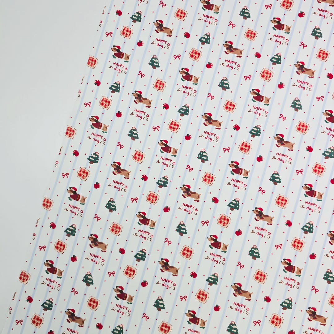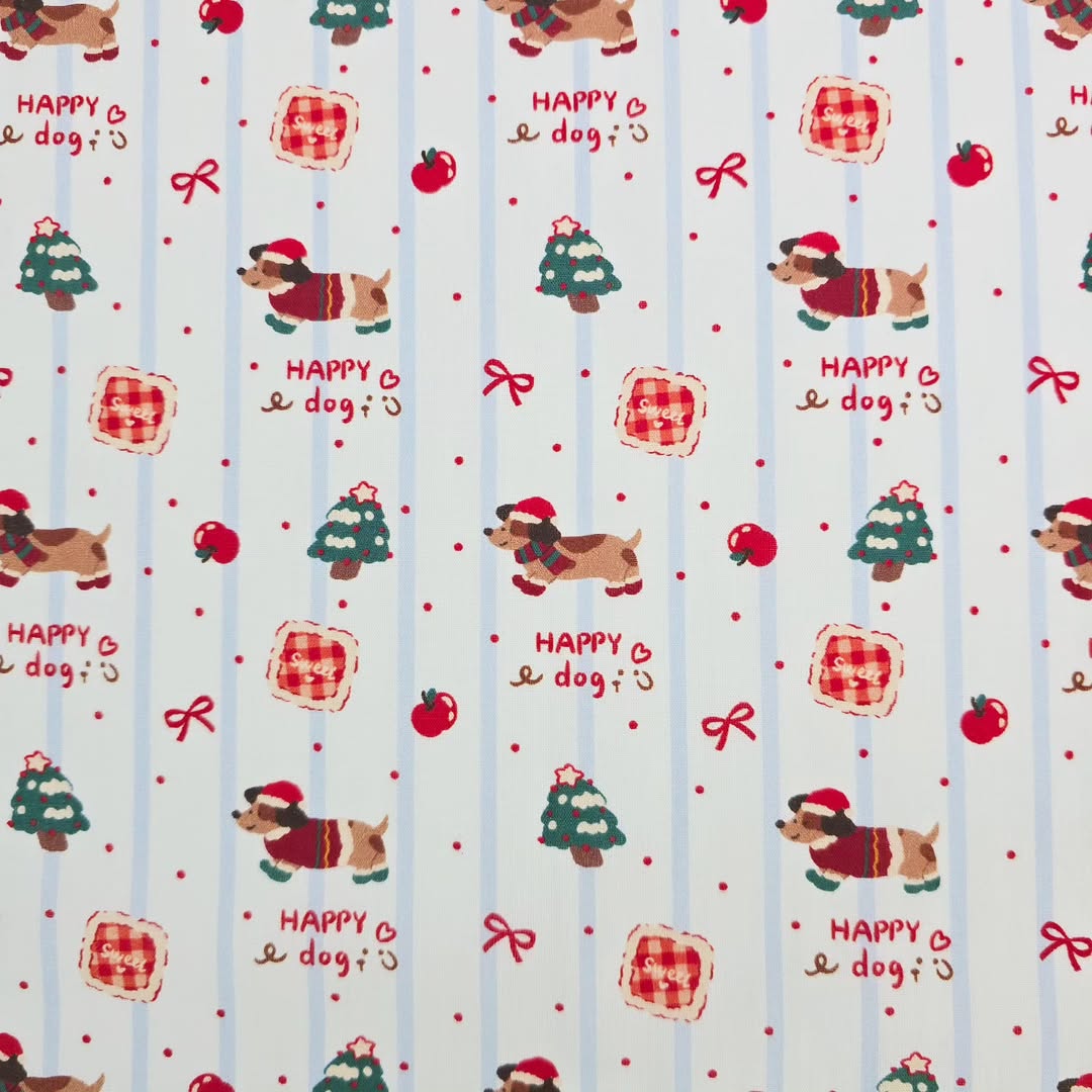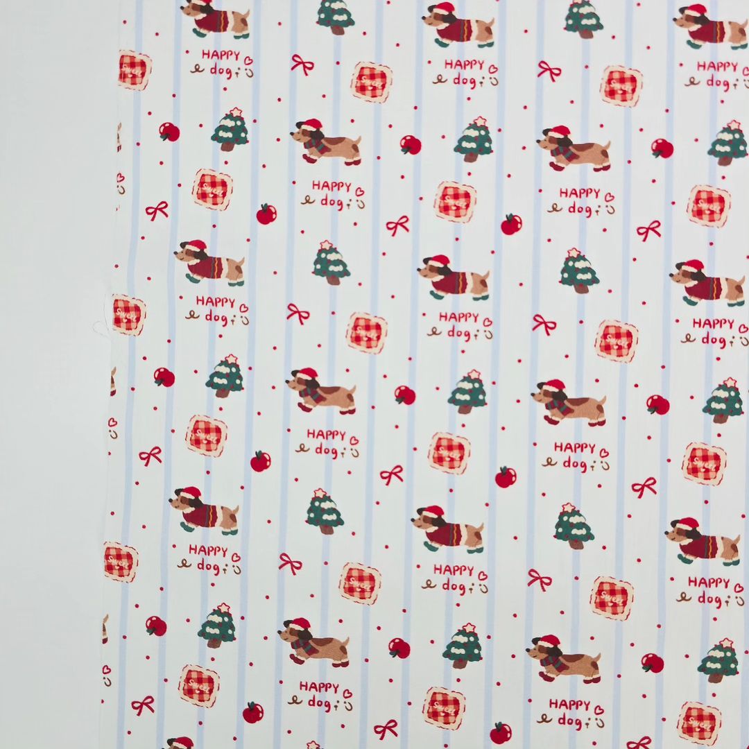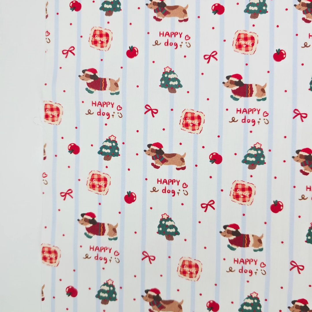 Christmas Stripe Dog Dachshund Patterned Fabric - Korean Fabric