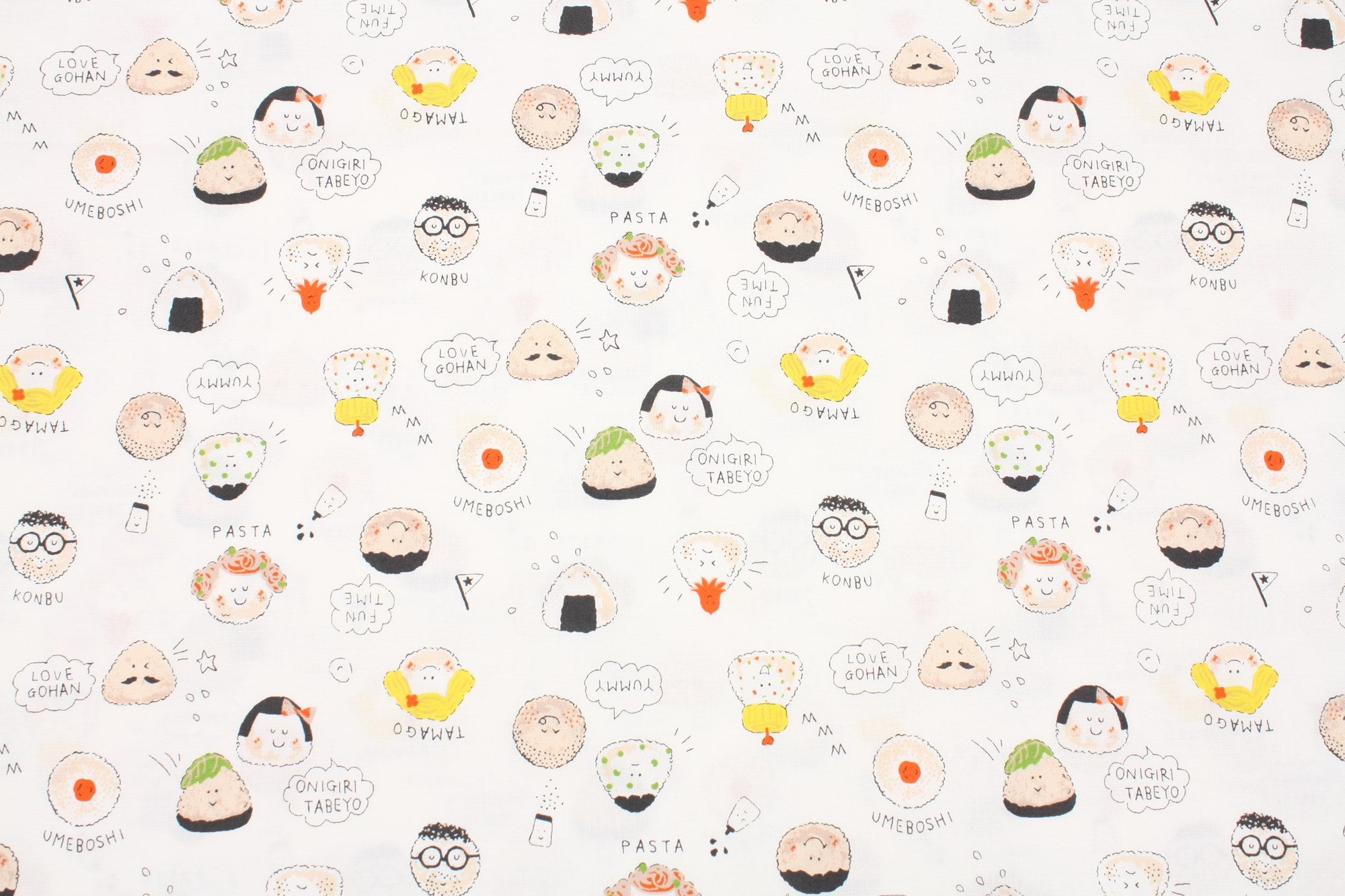 Japan Rice Ball, Onigiri Family Patterned Oxford Fabric