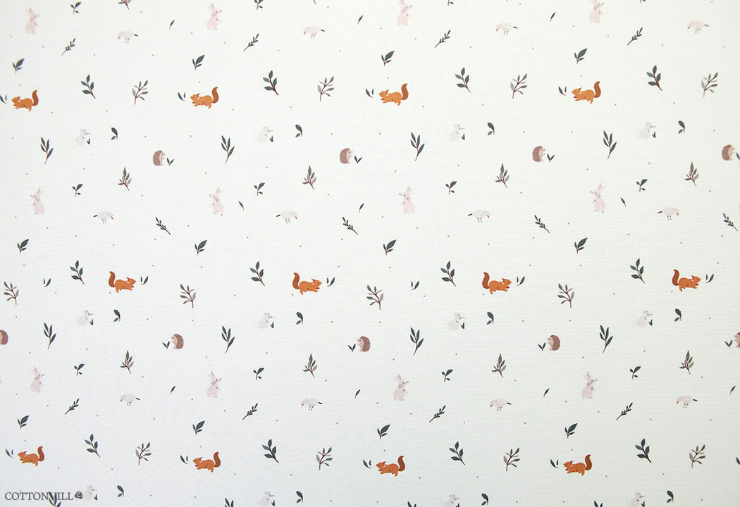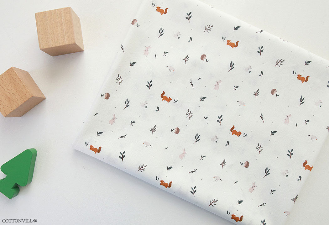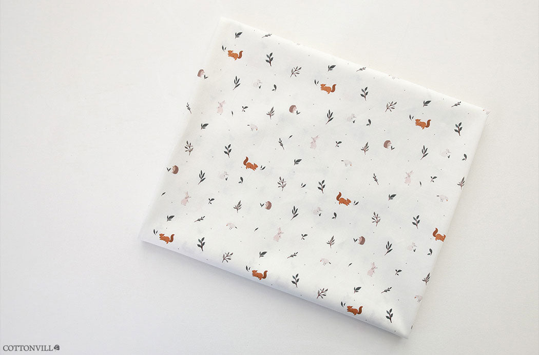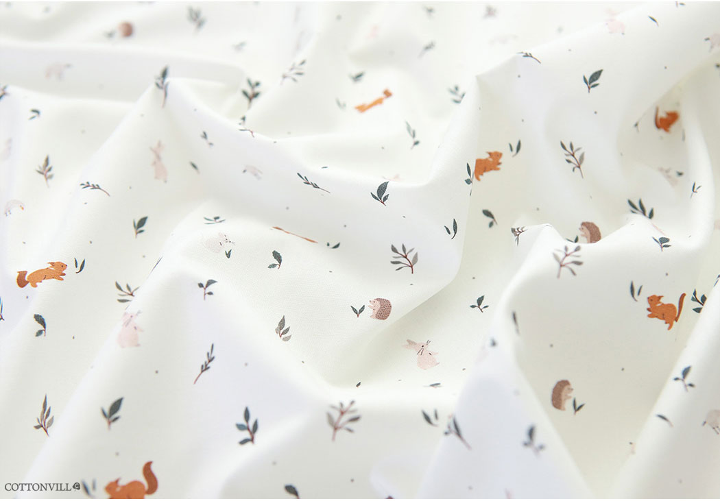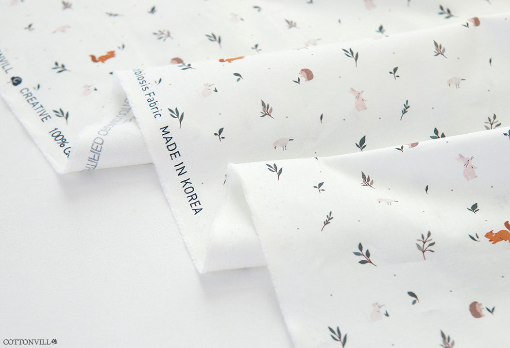 Baby Animals Bird Squirrel Rabbit Patterned Fabric - Korean Fabric