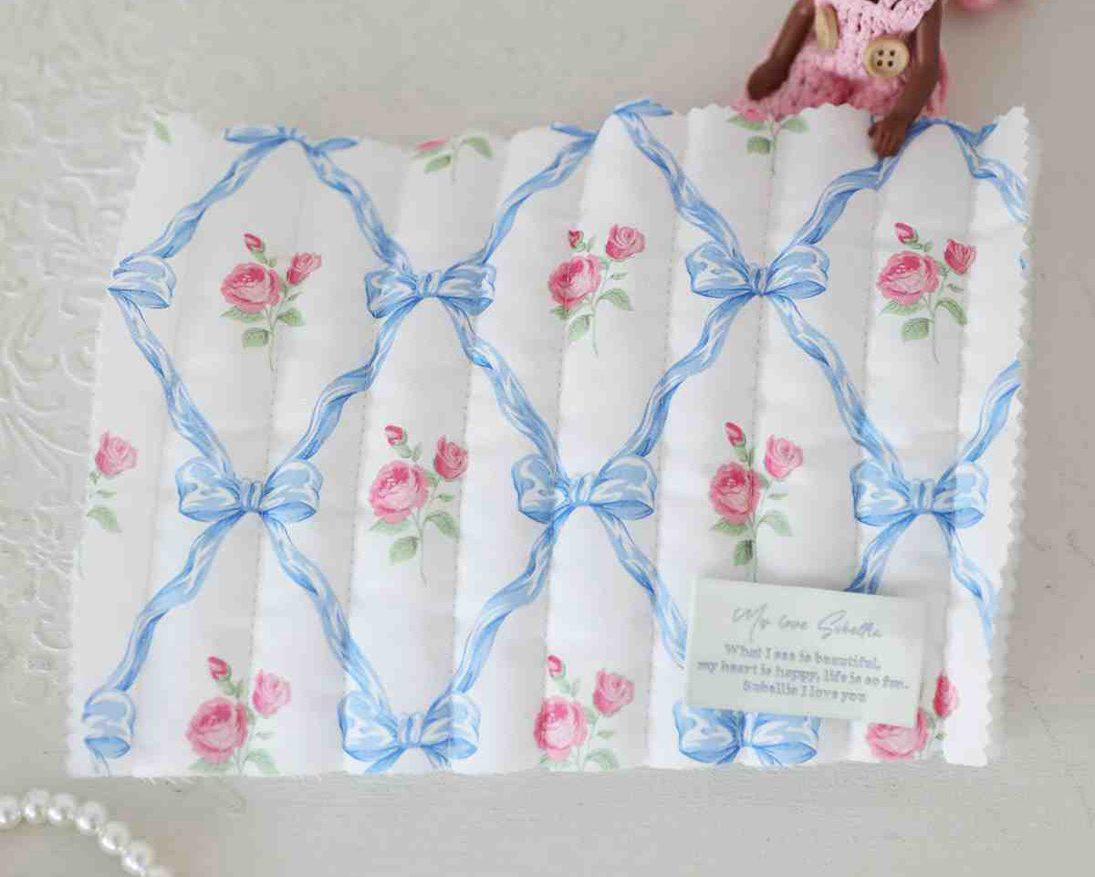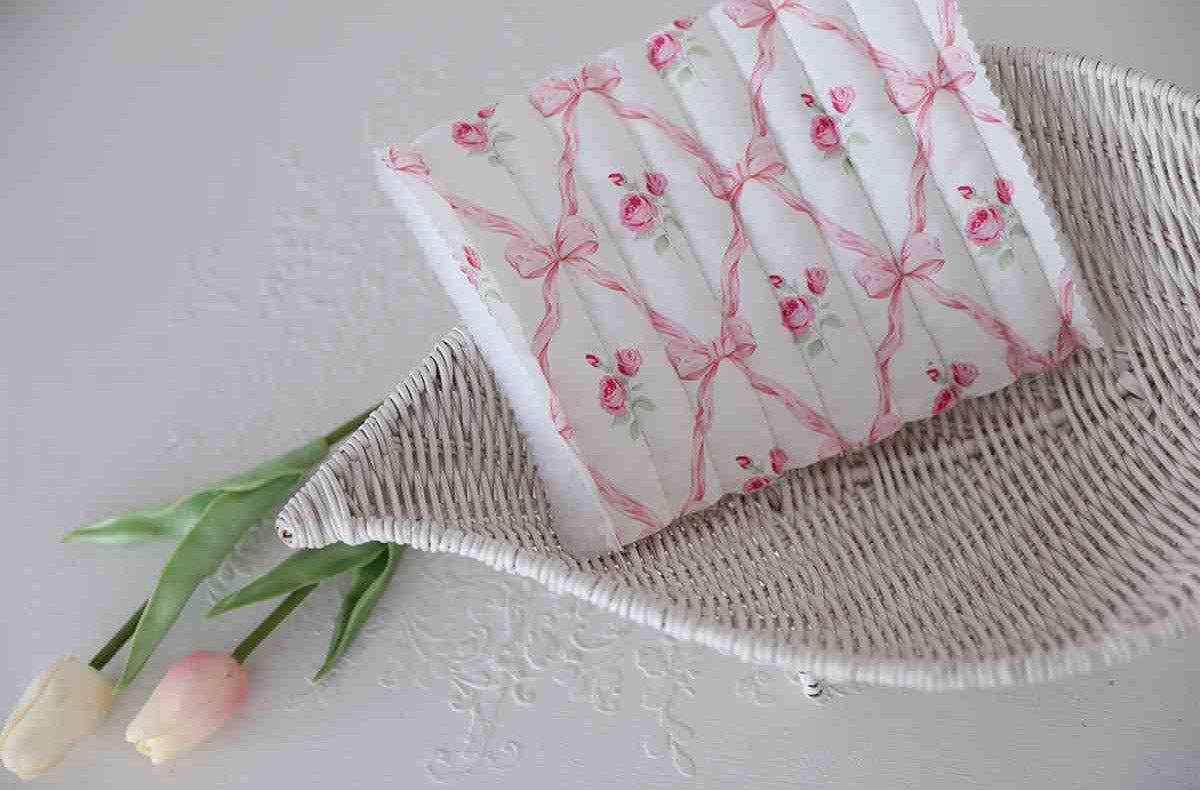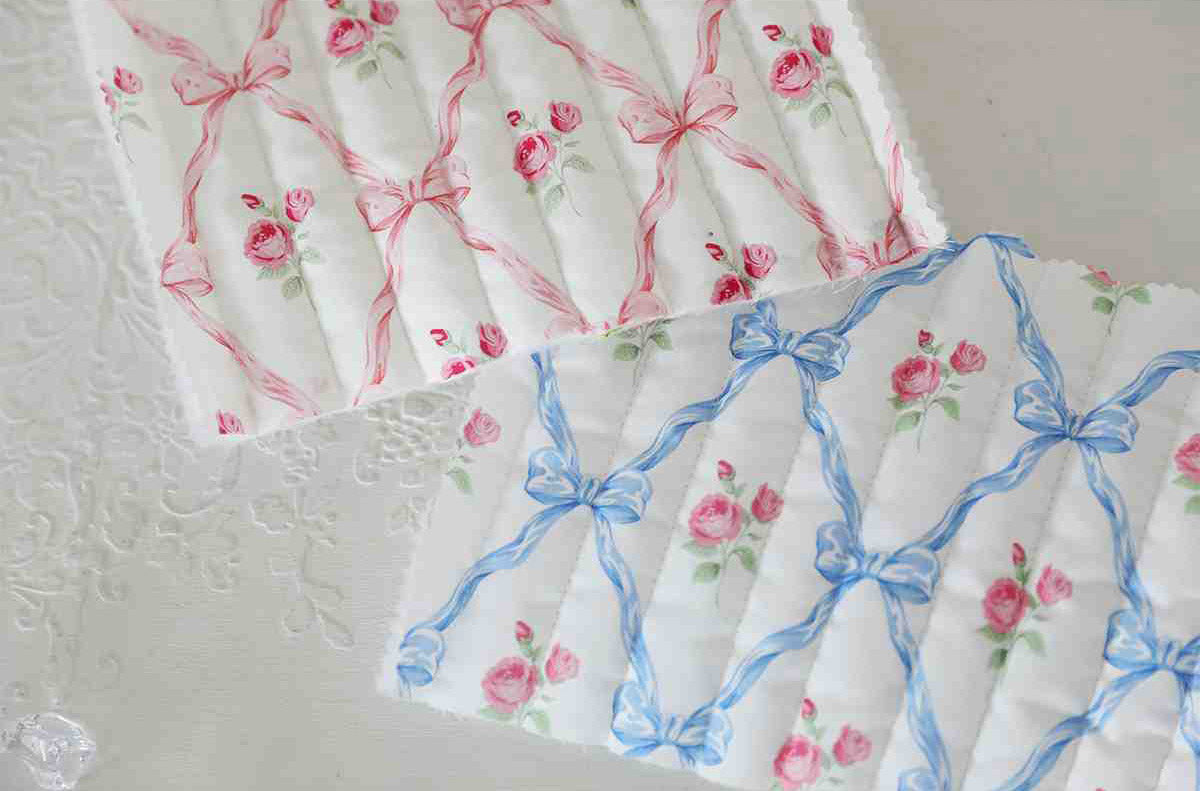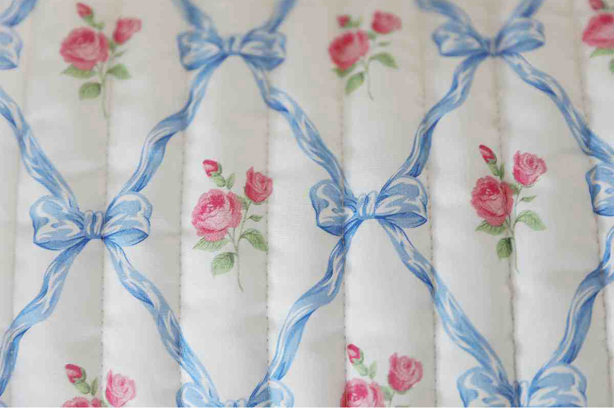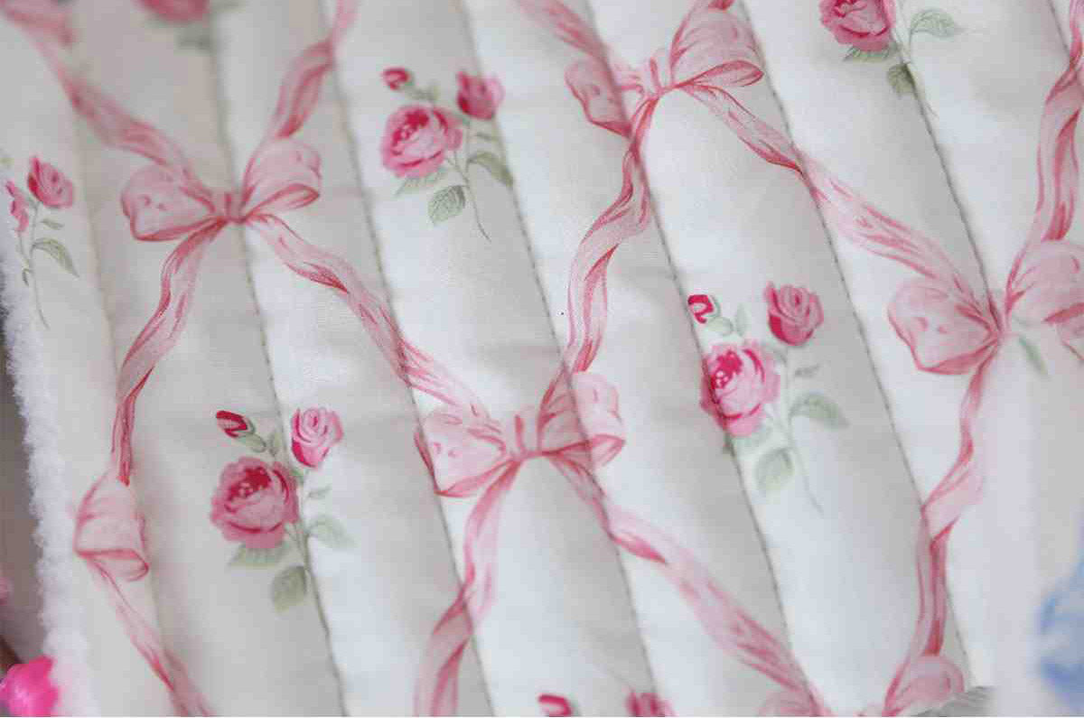 Ribbon Rose Patterned Stripe Quilted Nubi Fabric - Korean Fabric