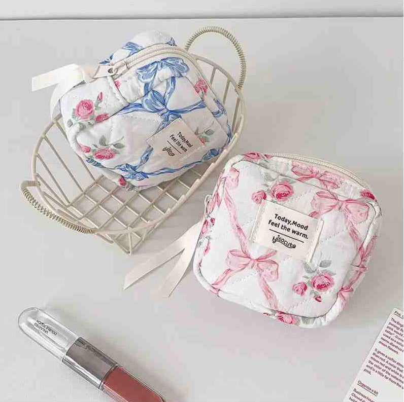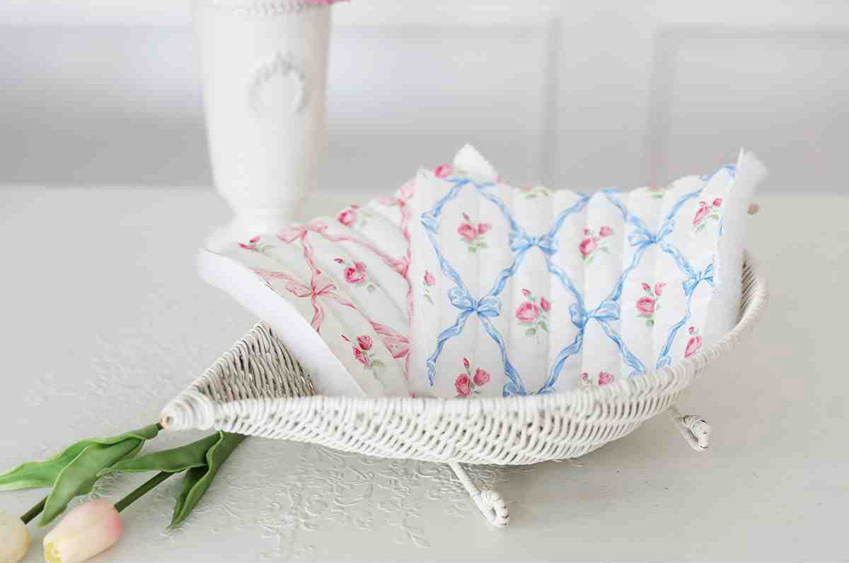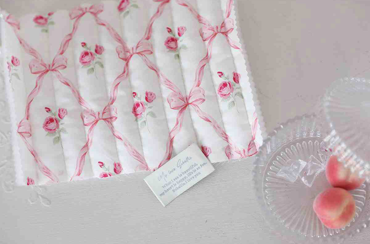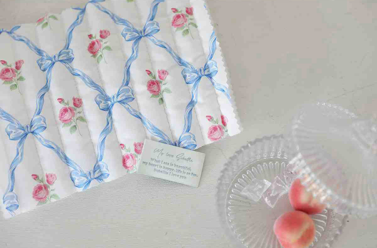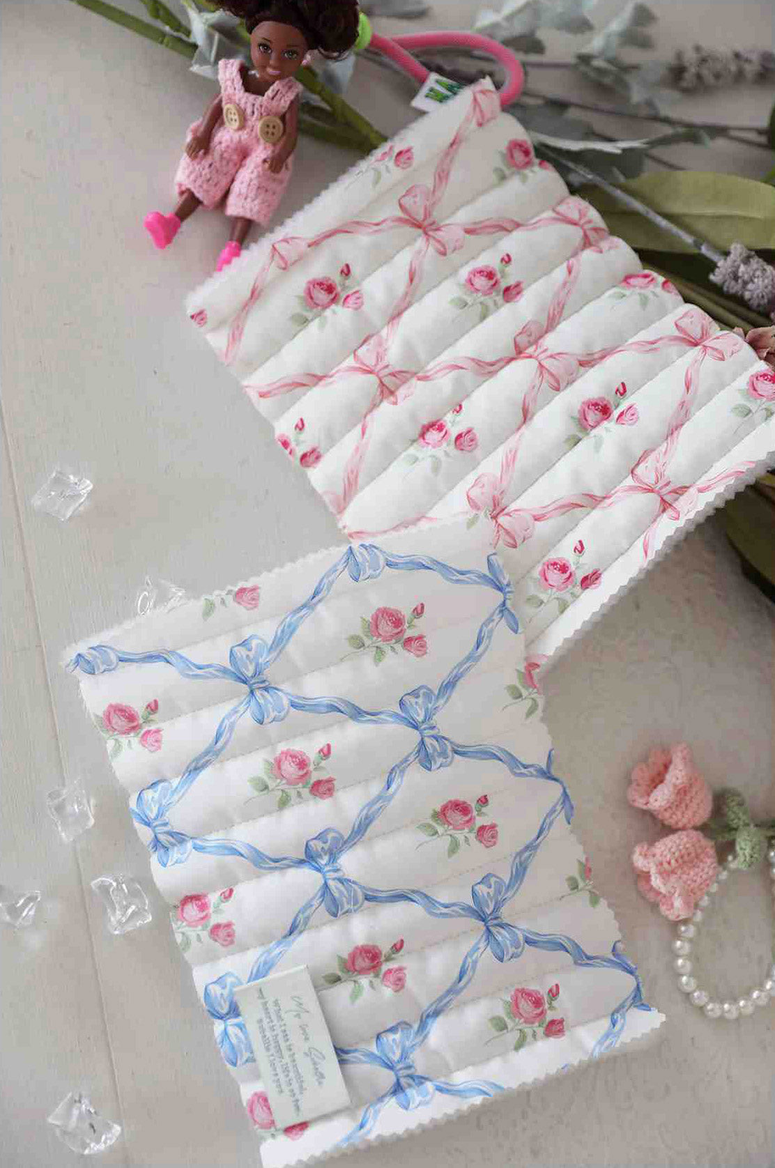 Ribbon Rose Patterned Stripe Quilted Nubi Fabric - Korean Fabric