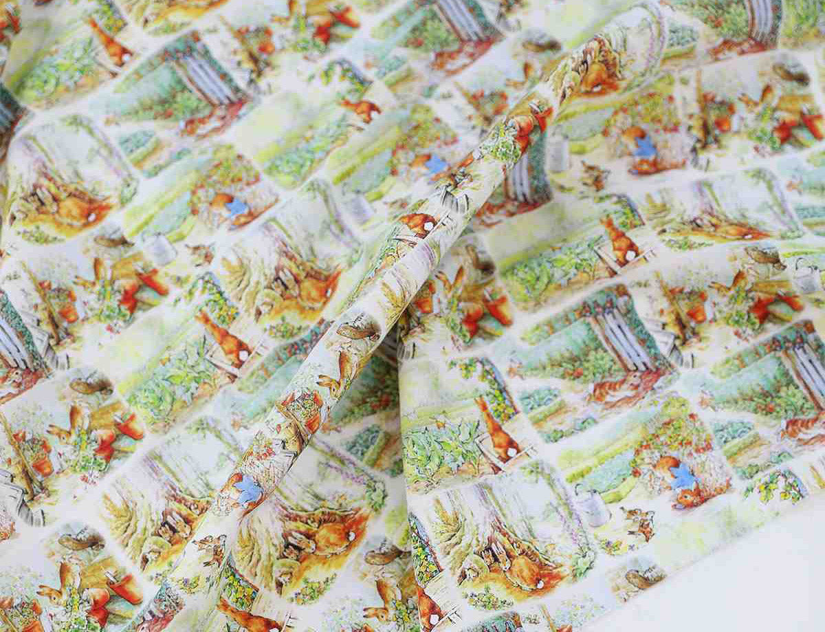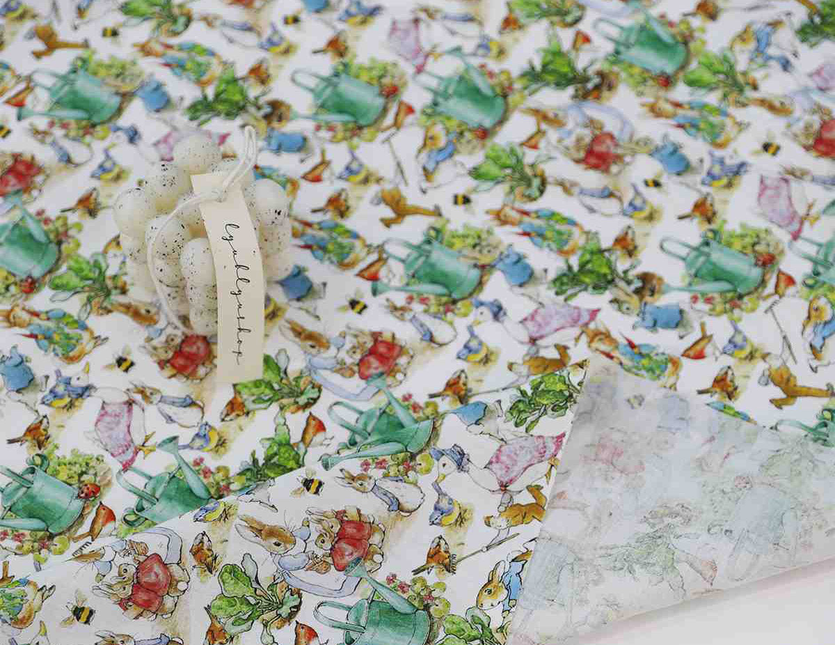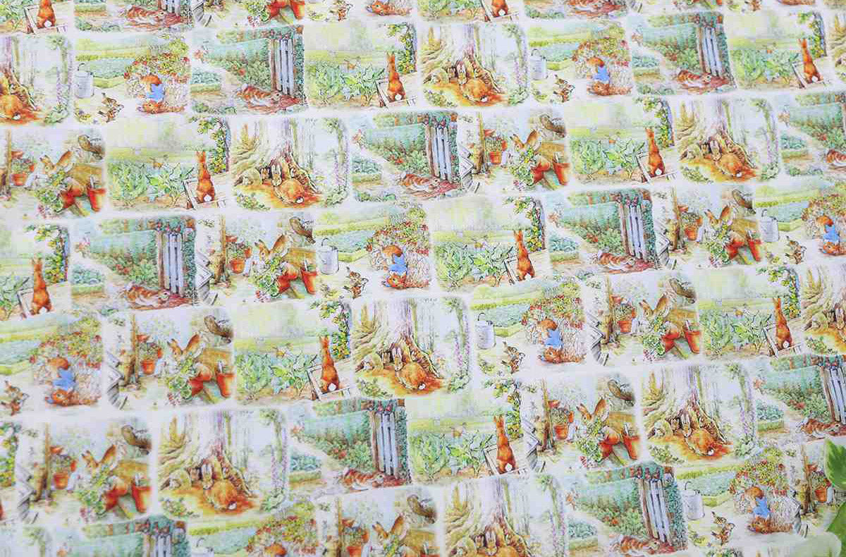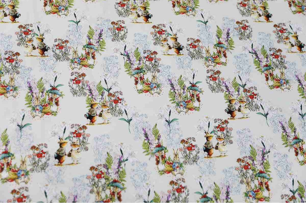 Rabbit Story Bunny Garden Patterned 30s Cotton Fabric printed in Korea