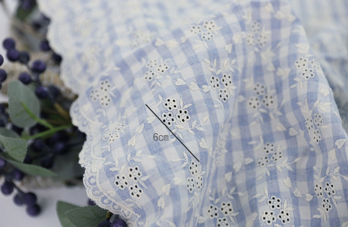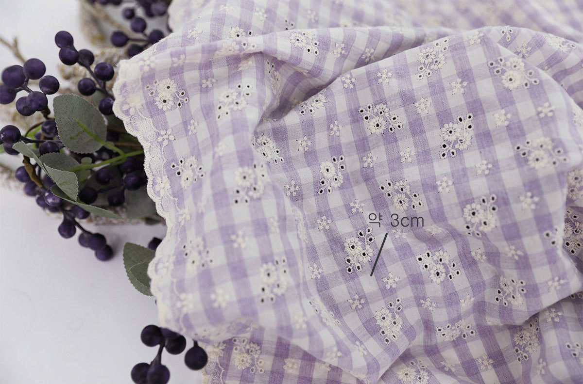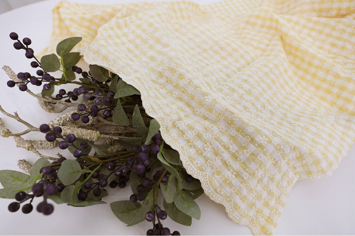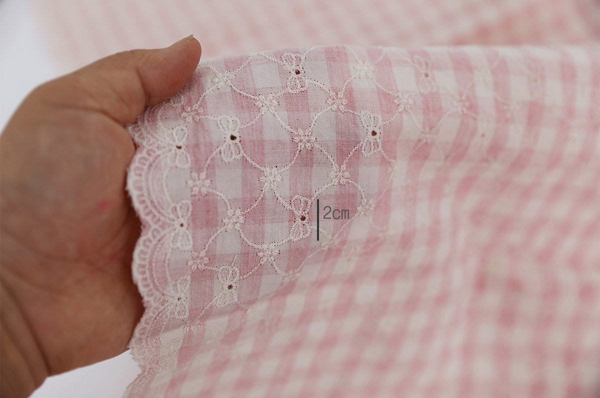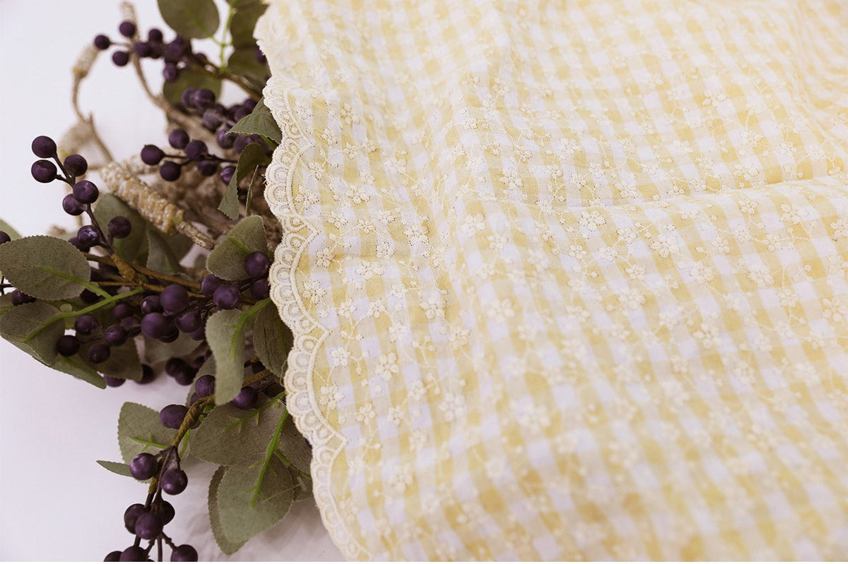 Lace Embroidery Check Gingham Patterned fabric - Korean Fabric