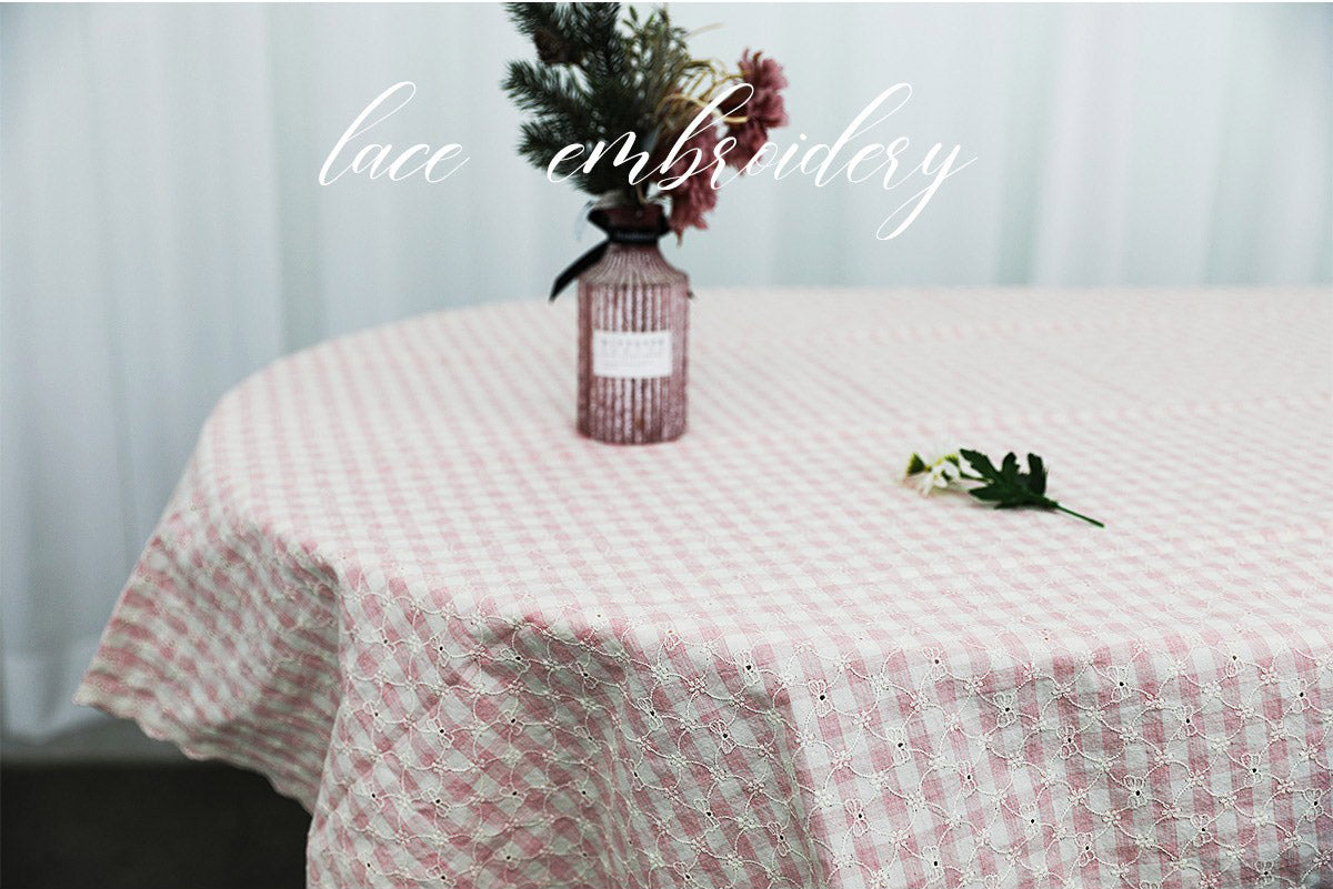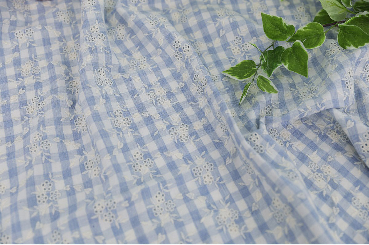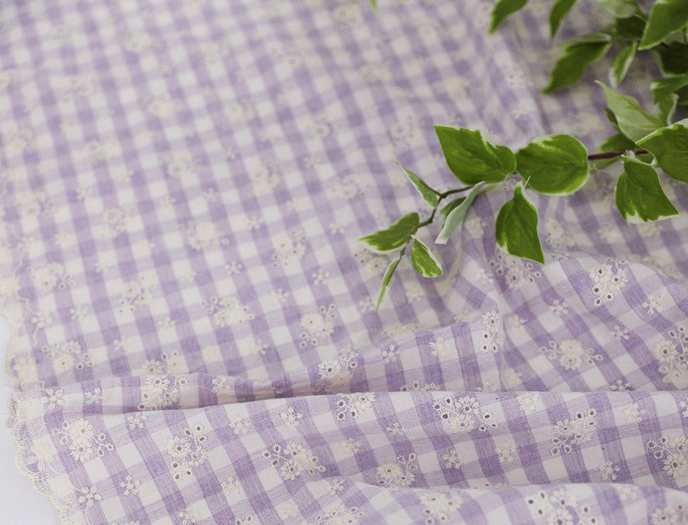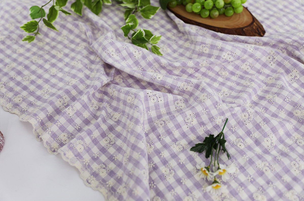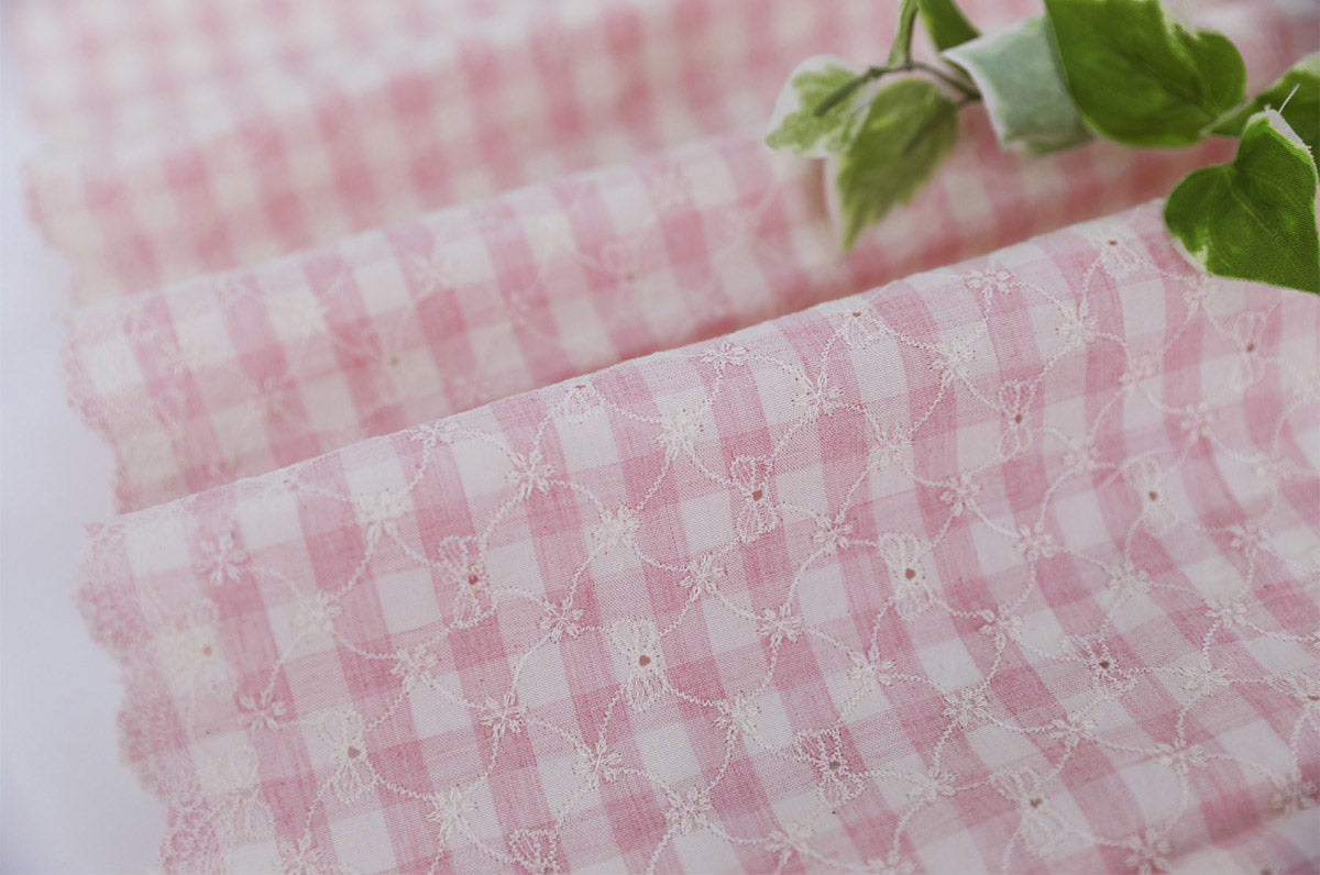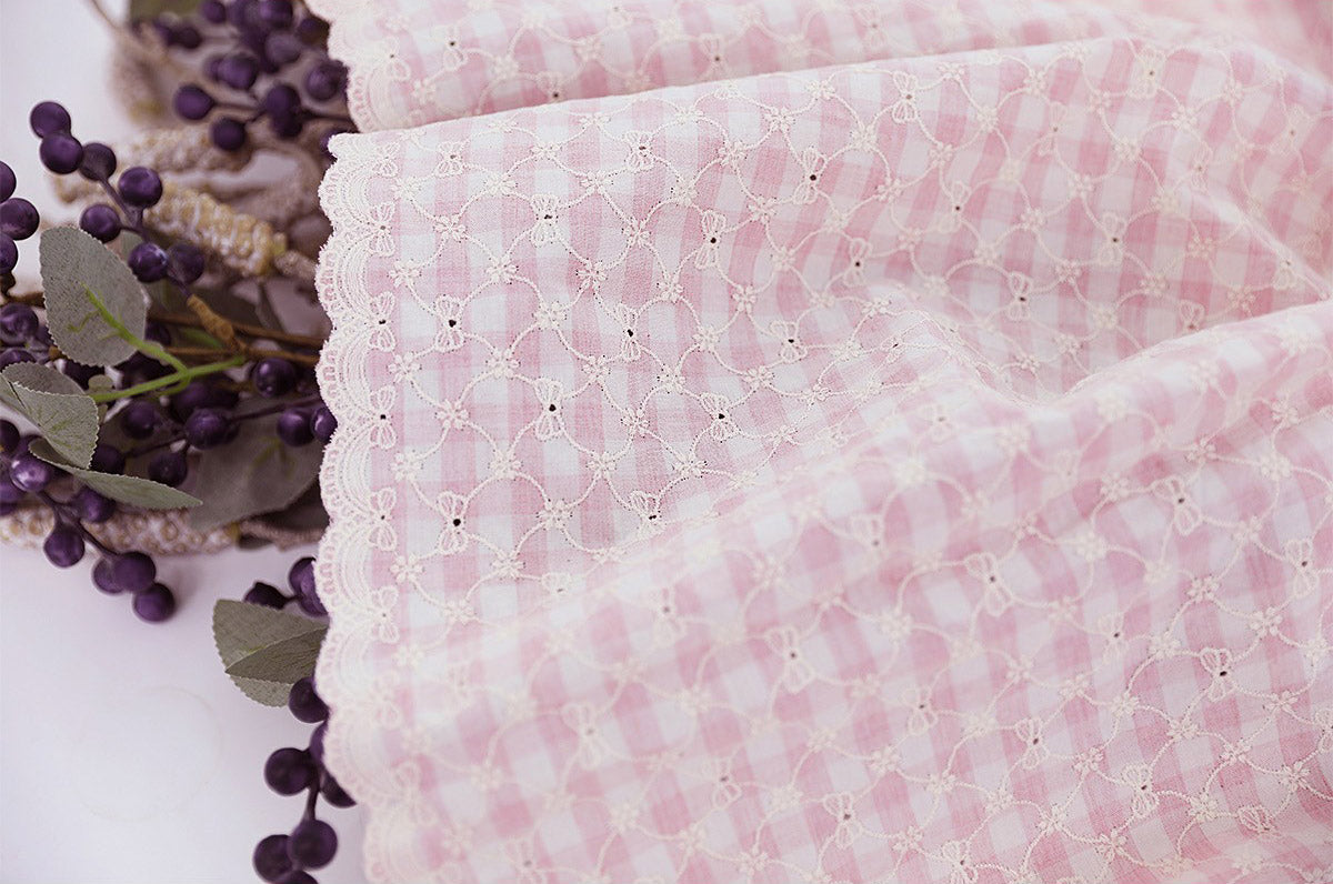Lace Embroidery Check Gingham Patterned fabric - Korean Fabric