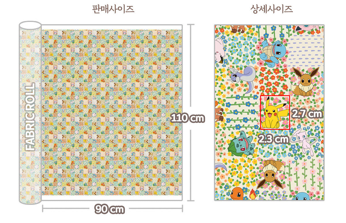 Pocket Monster, Pokemon Flower Patchwork Character Fabric made in Korea