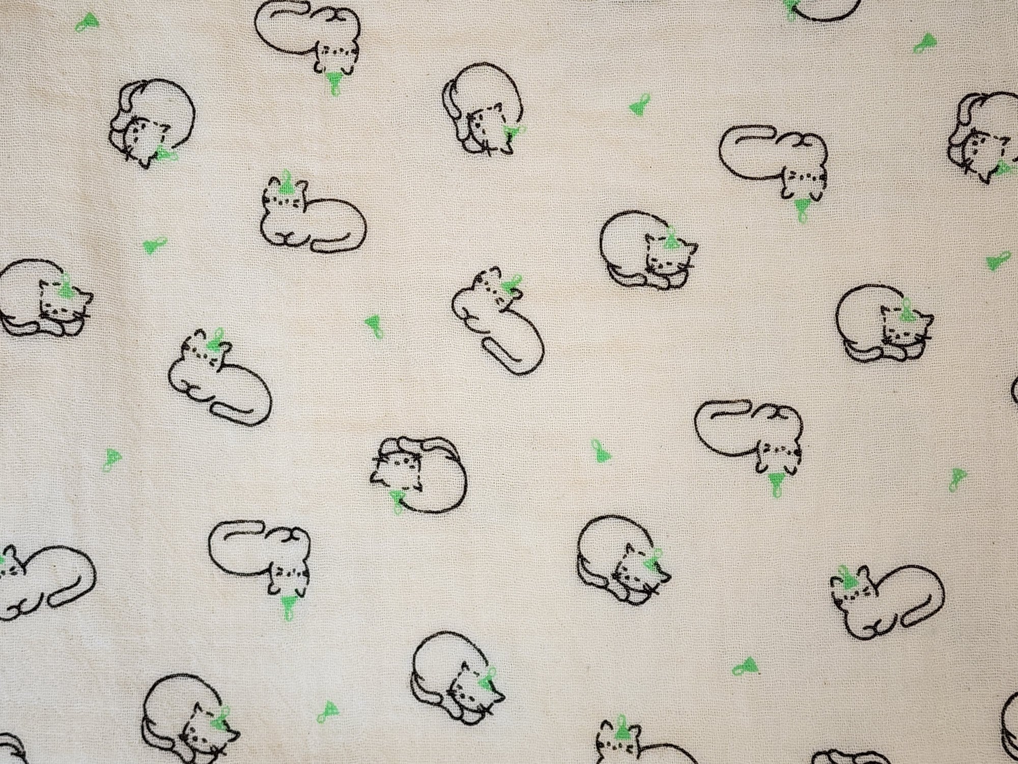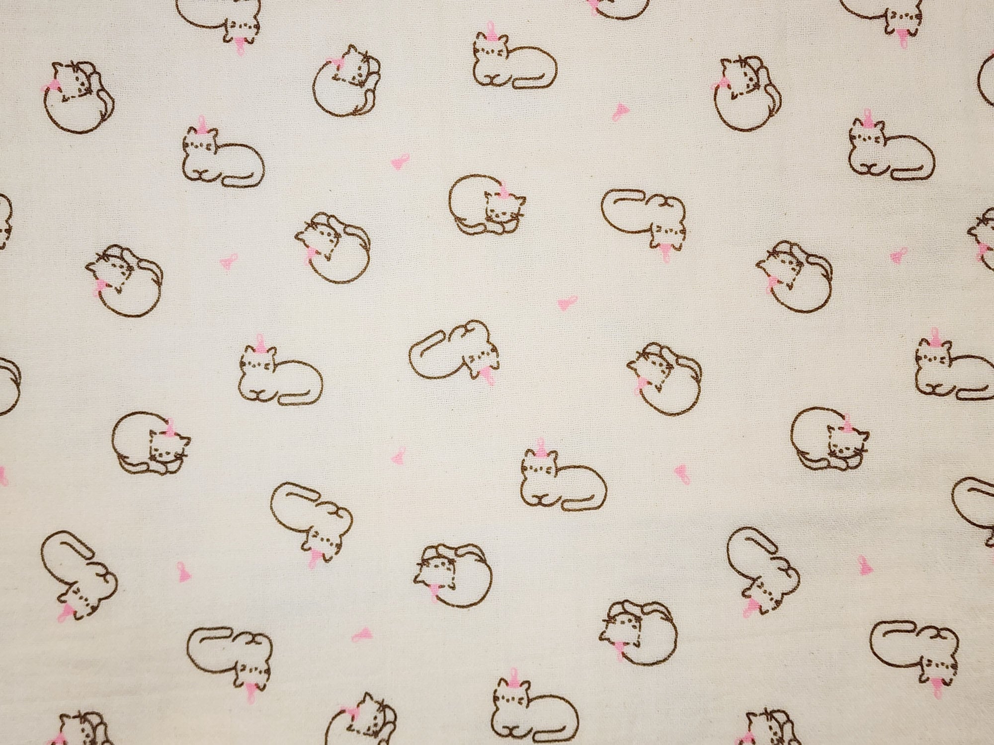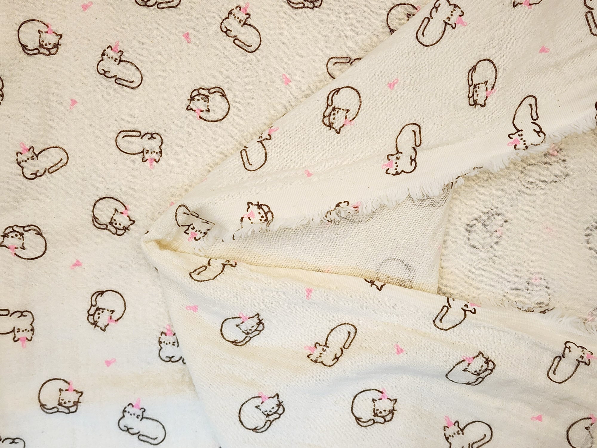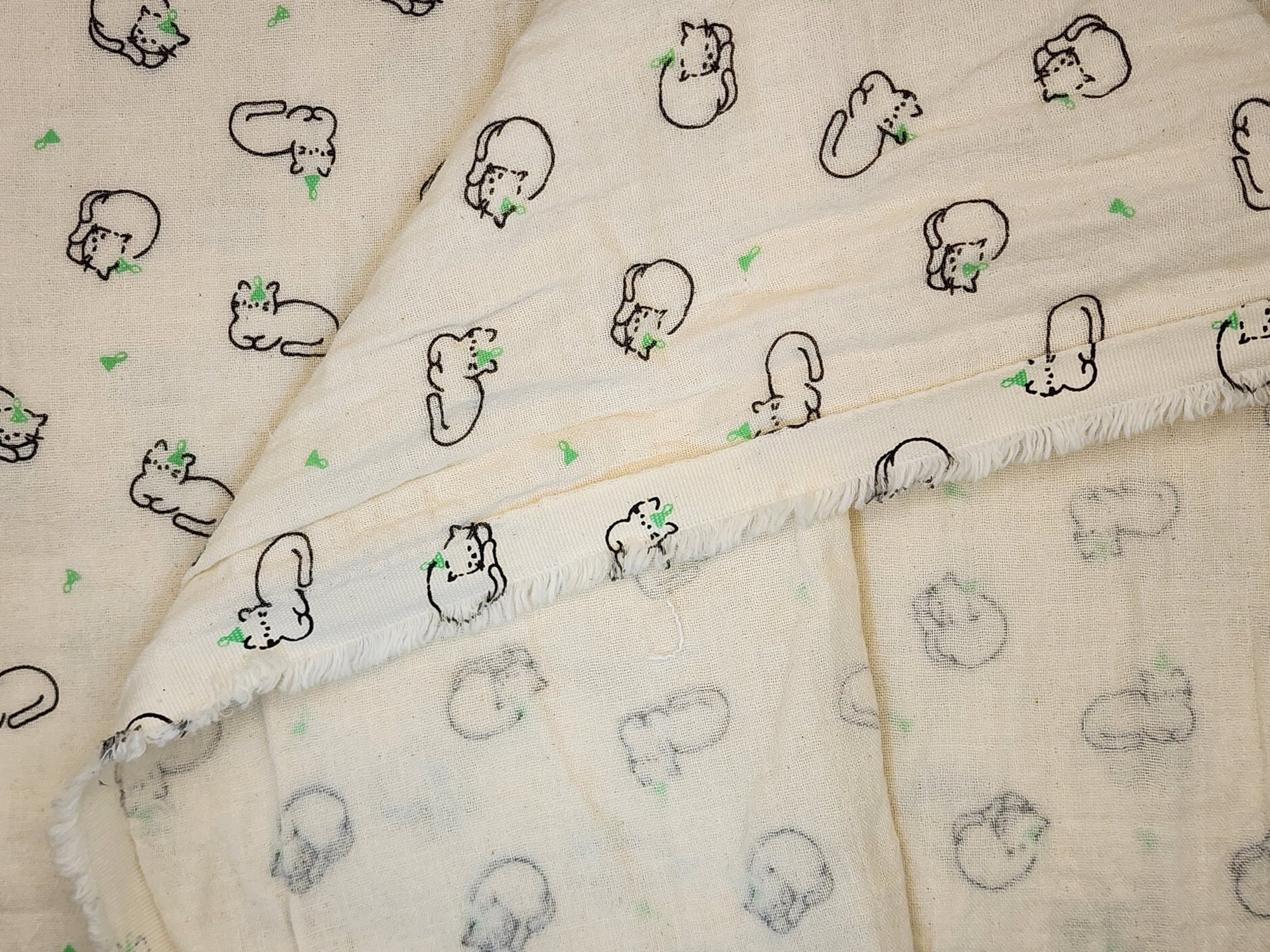 Loaf Cat Kitten Patterned Crinkle Double Gauze Fabric - Korean Fabric