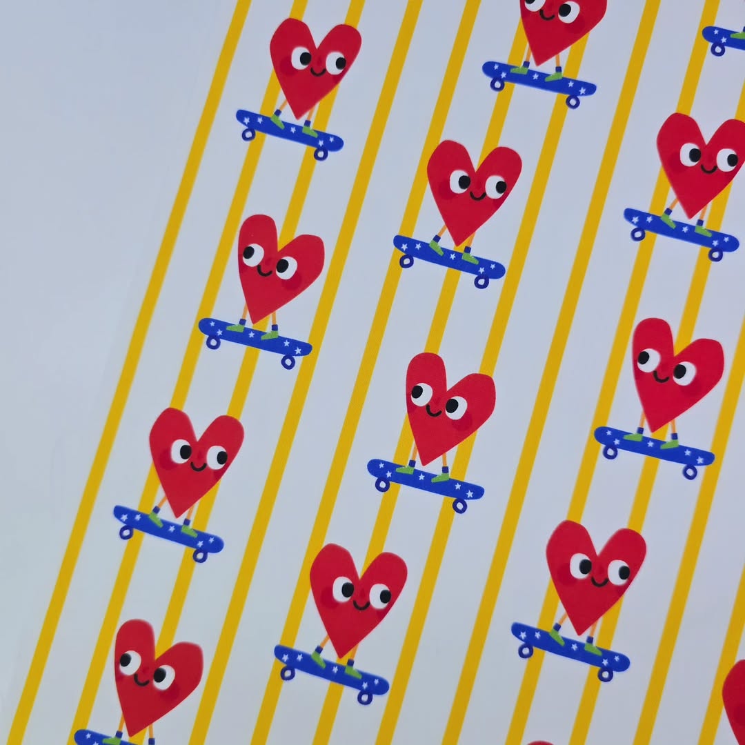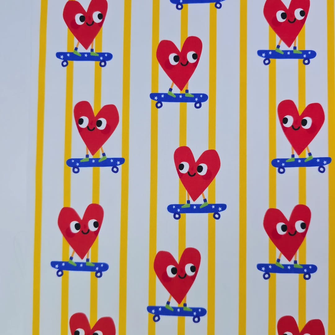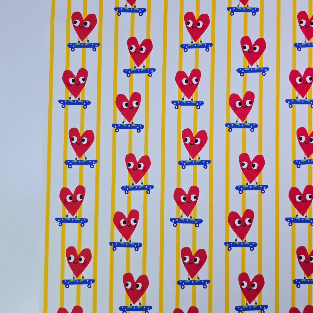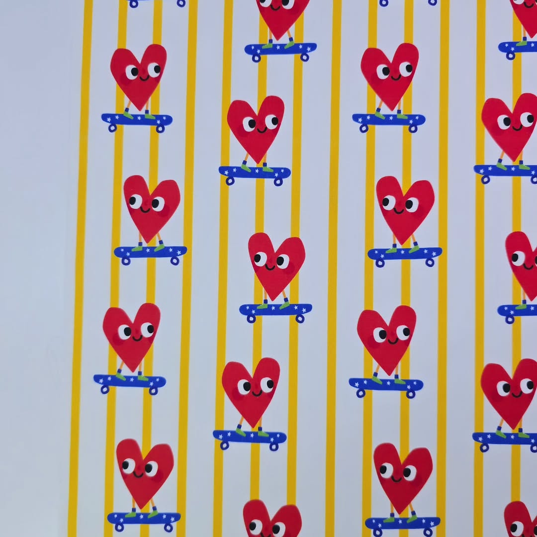Heart on Skateboard Patterned Fabric - Korean Fabric