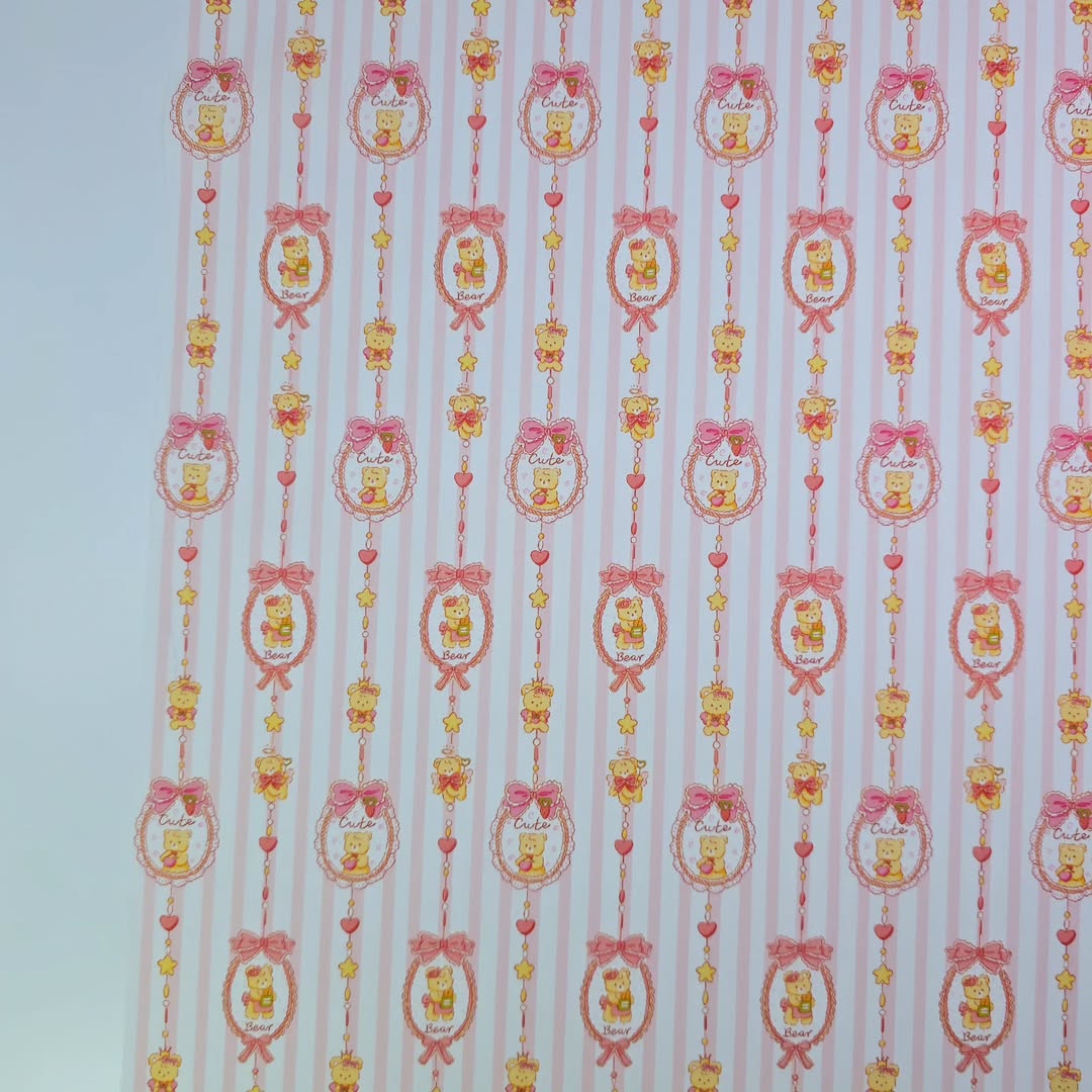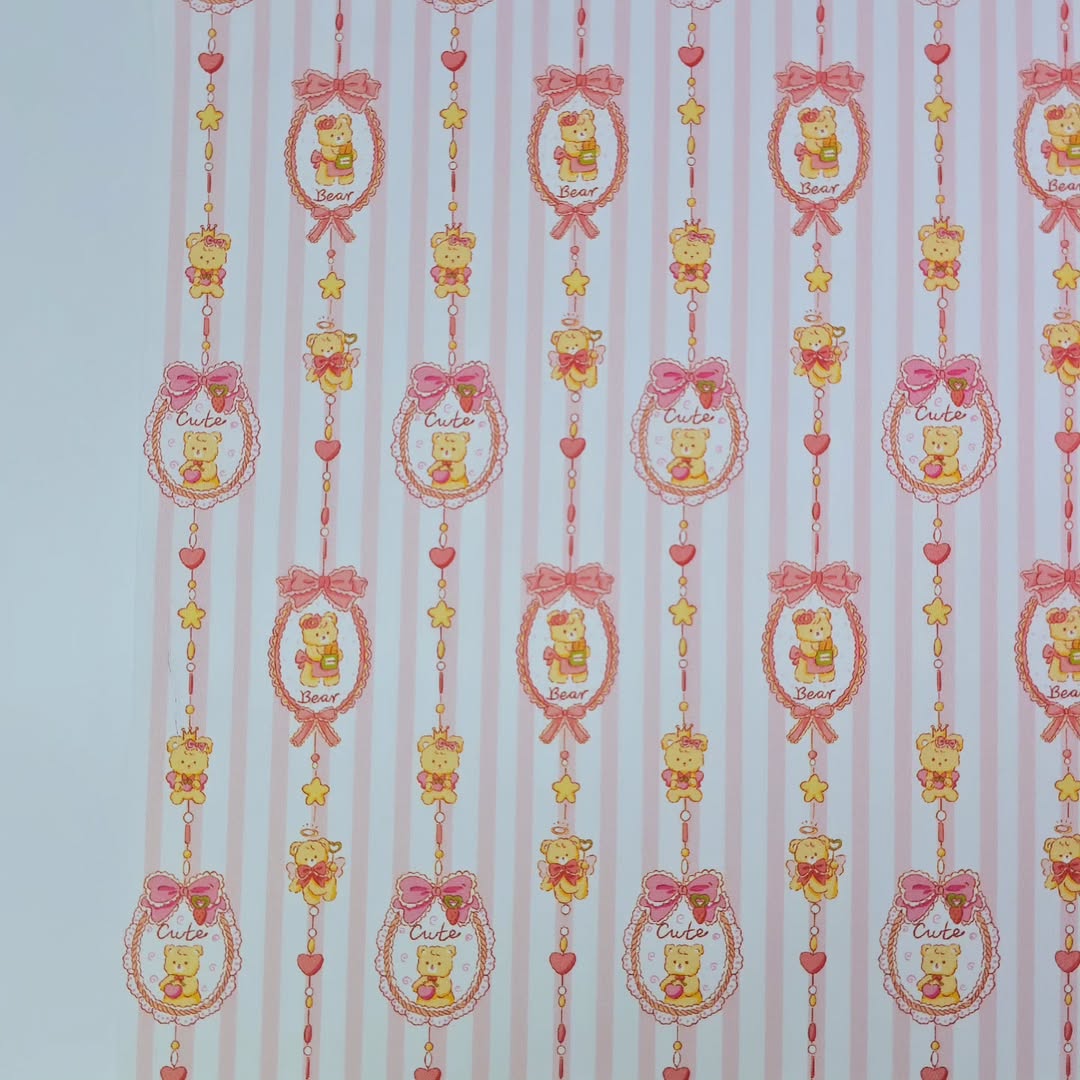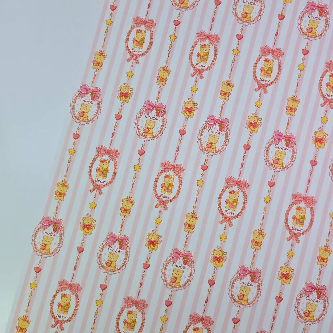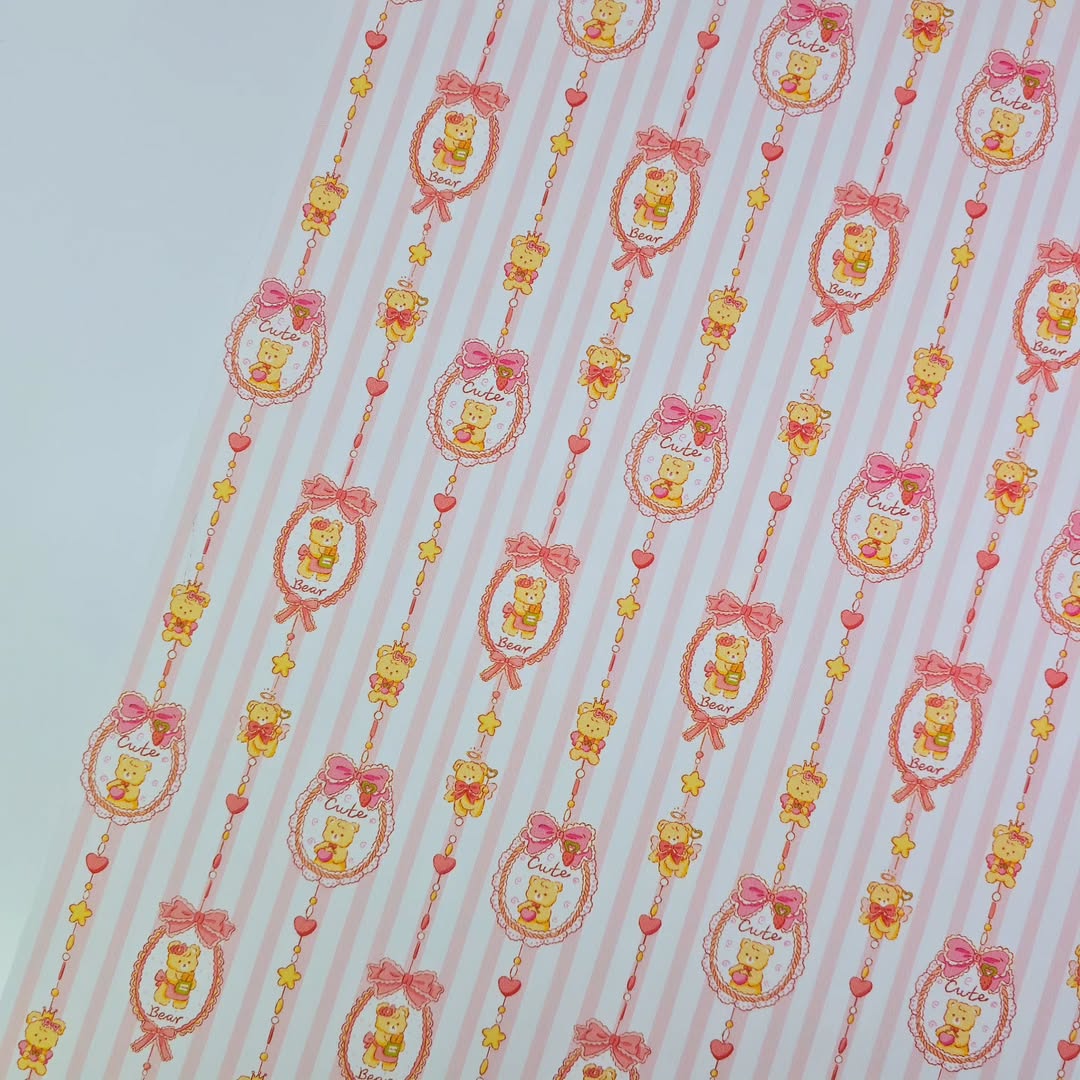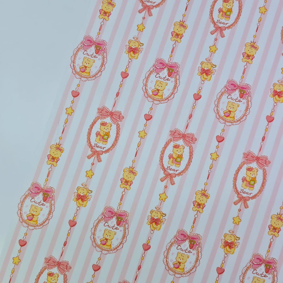 Ribbon Teddy bear Pink Stripe Patterned Fabric - Korean Fabric