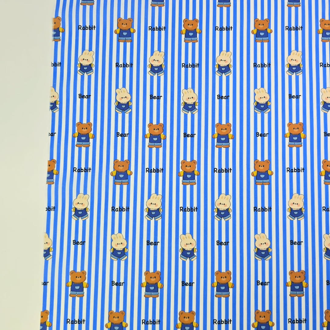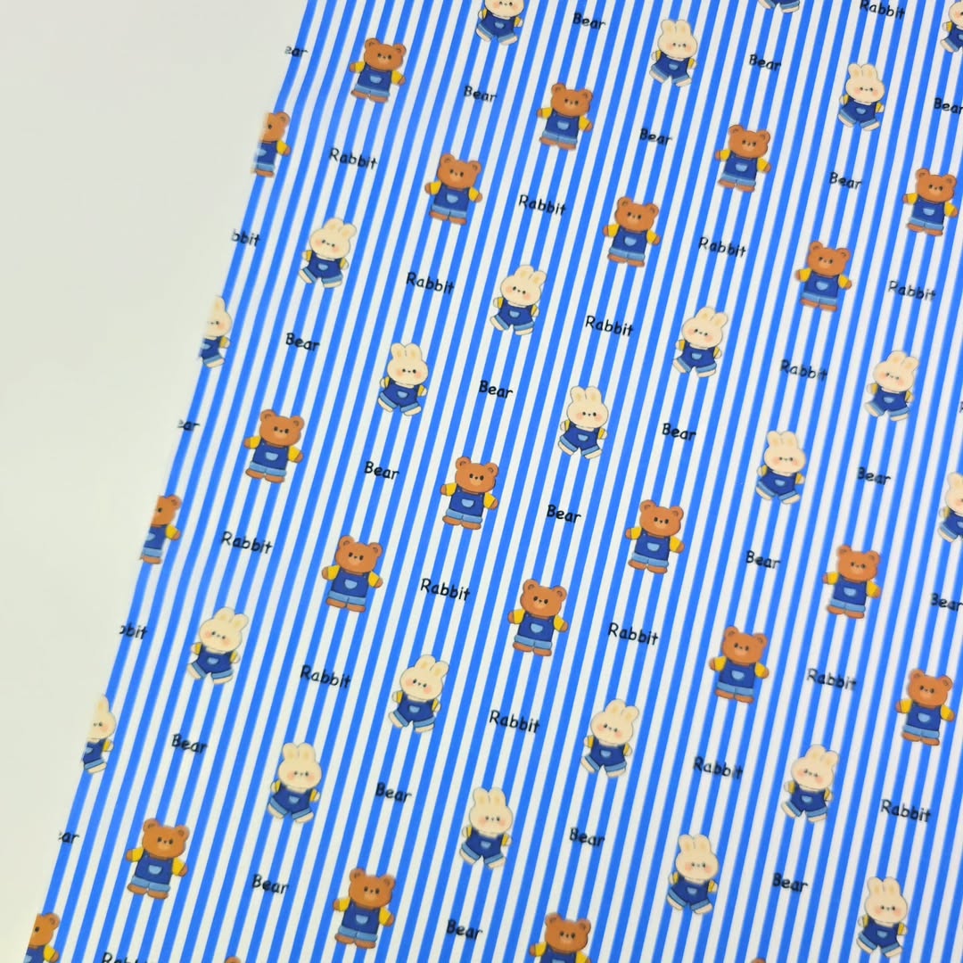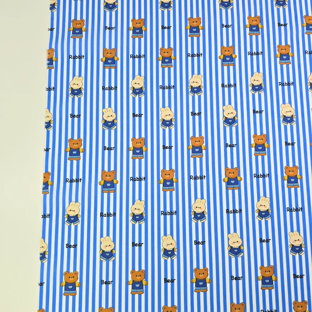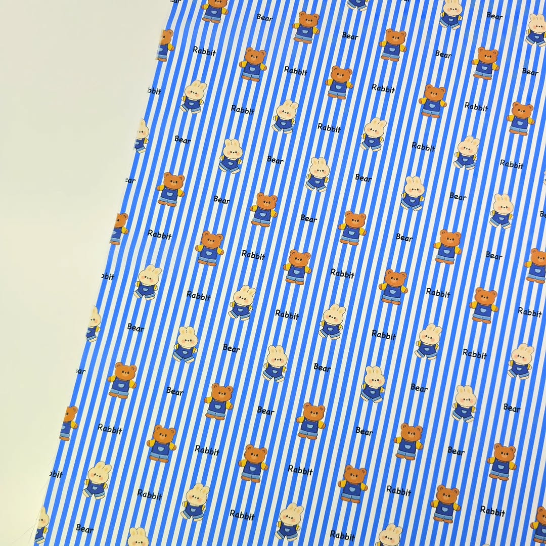 Cute Teddy bear Rabbit Blue Stripe Patterned Fabric - Korean Fabric