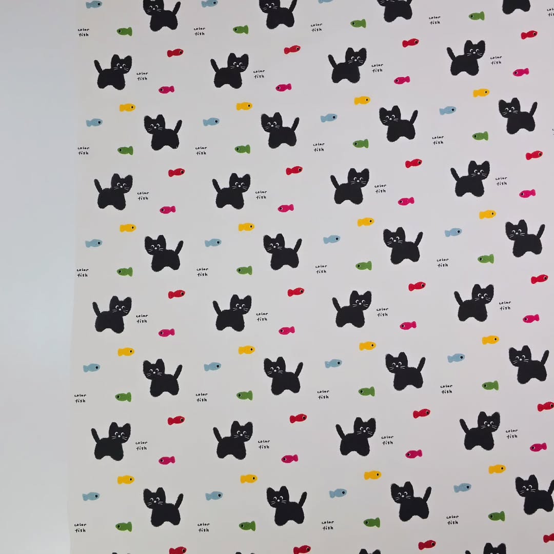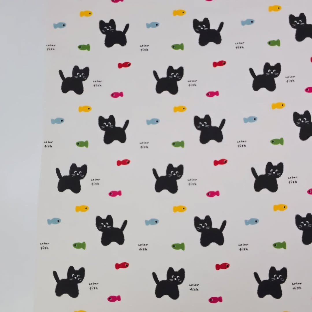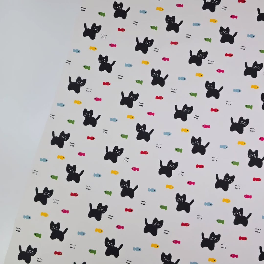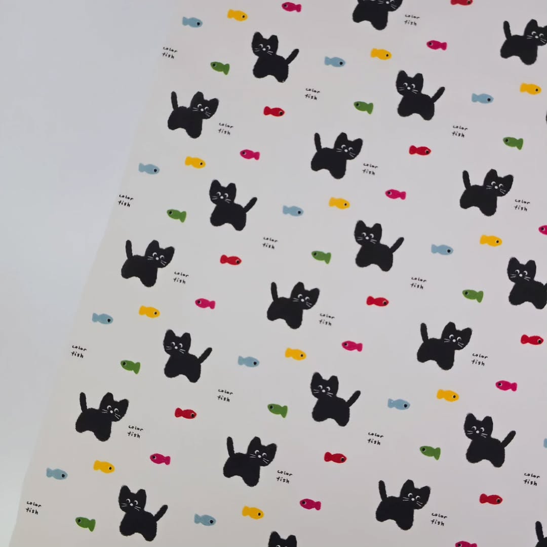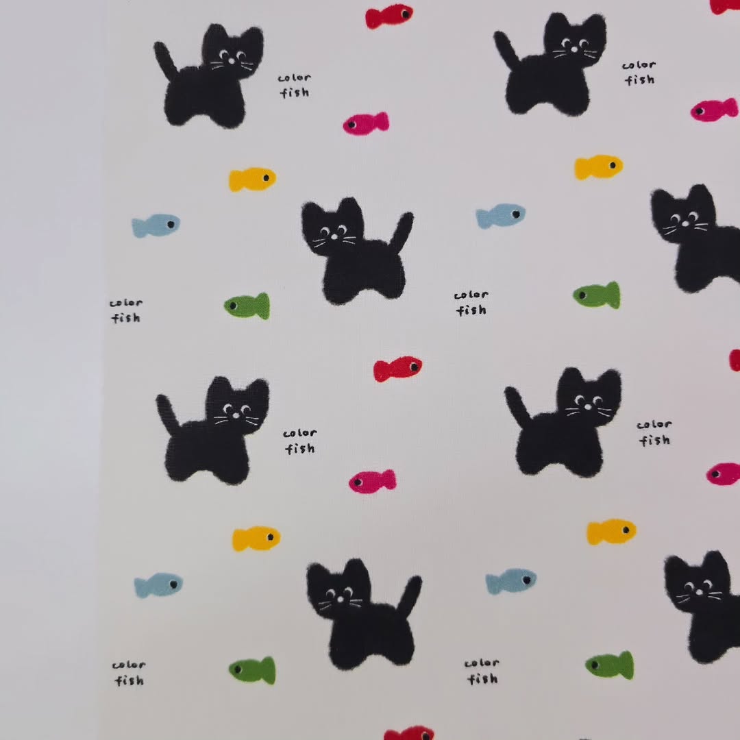 Black Cat & Fish Patterned Fabric - Korean Fabric