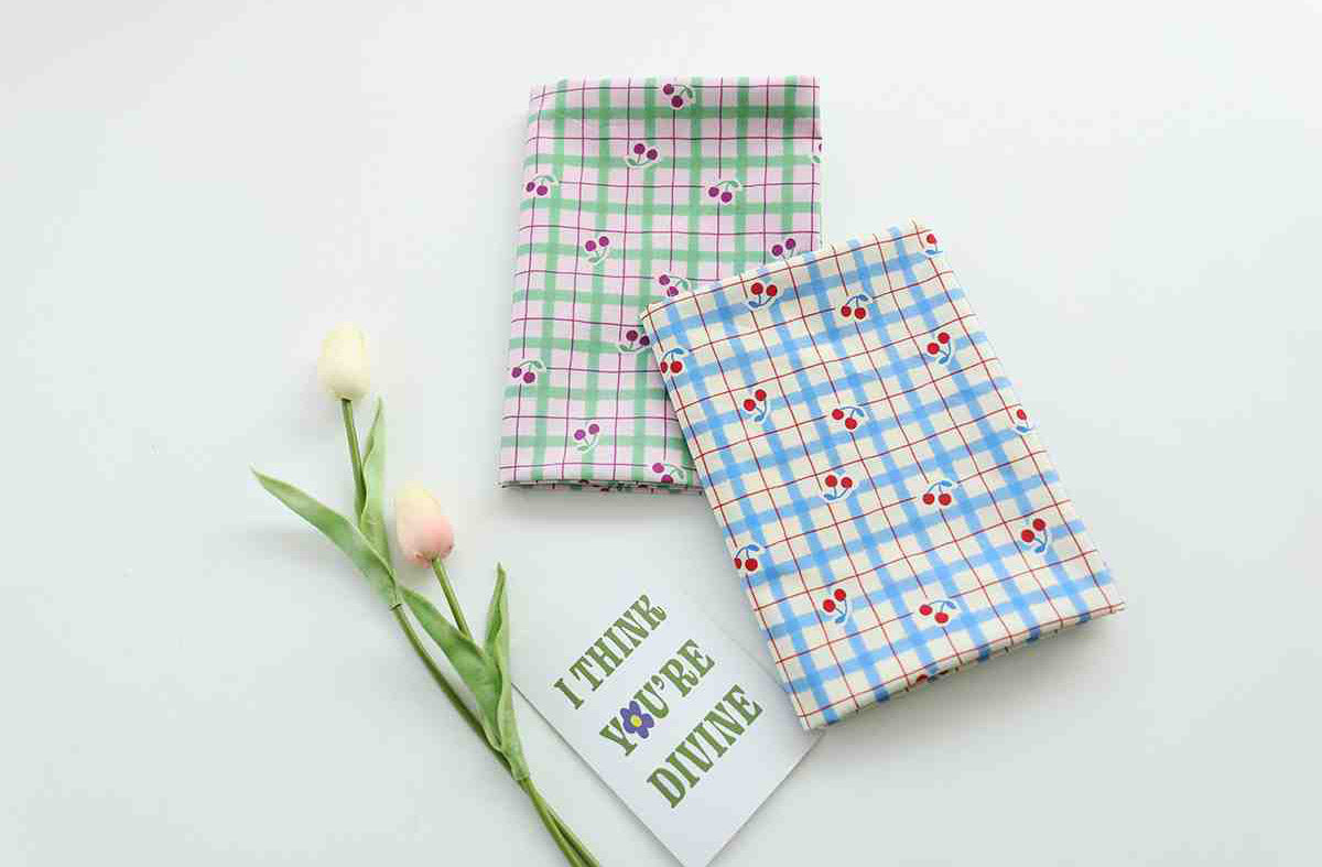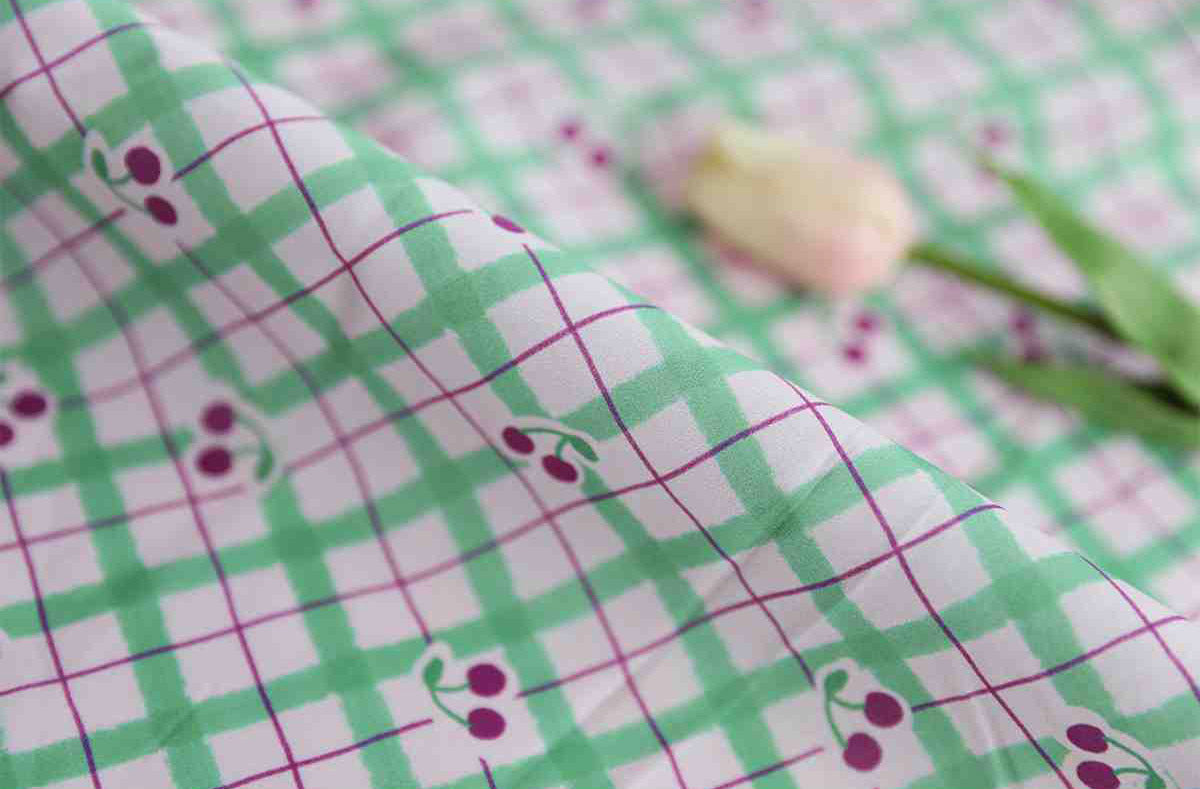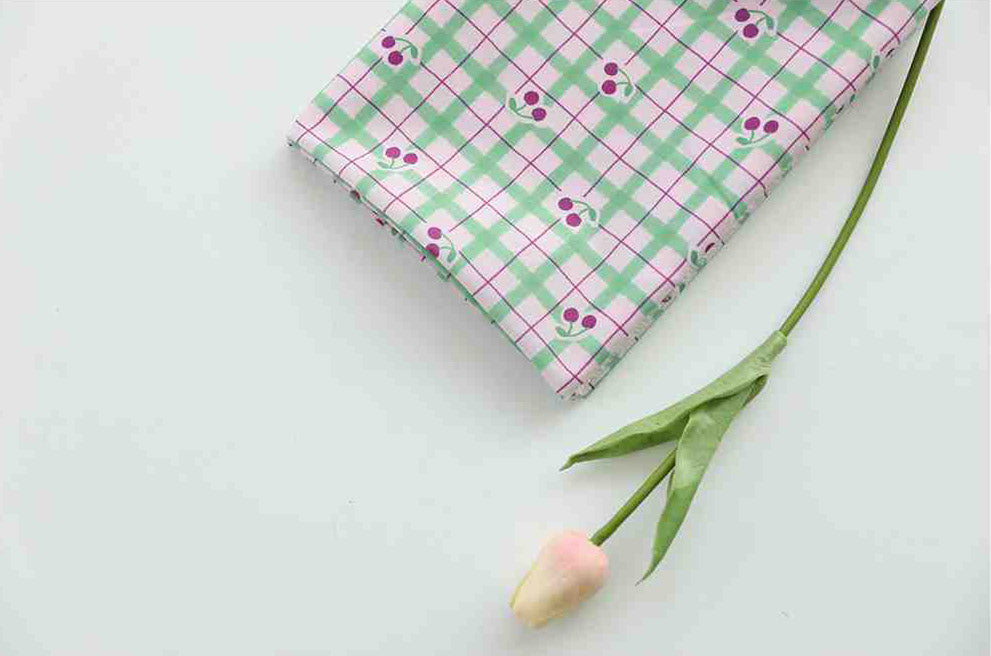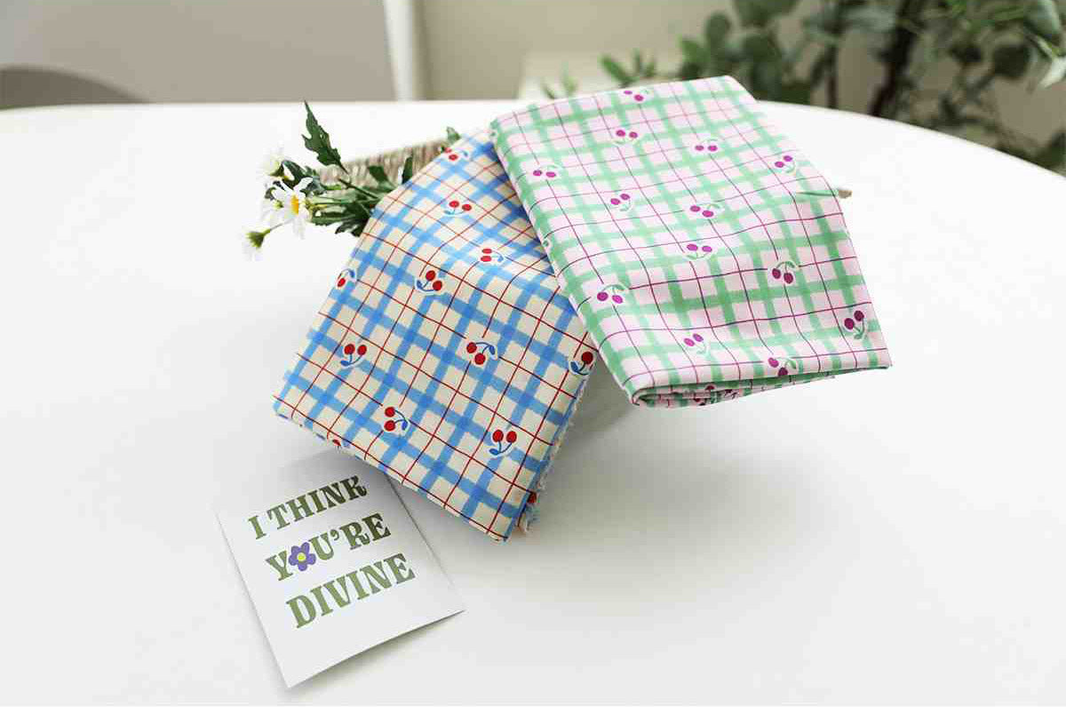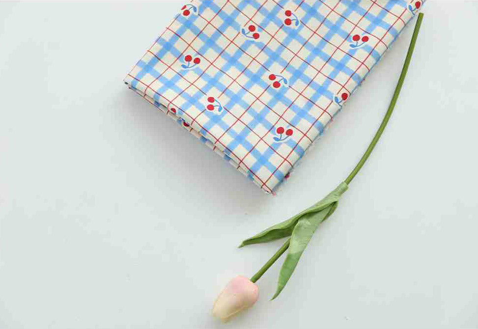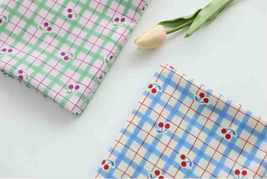 Check Cherry Patterned 30s Cotton Fabric printed in Korea