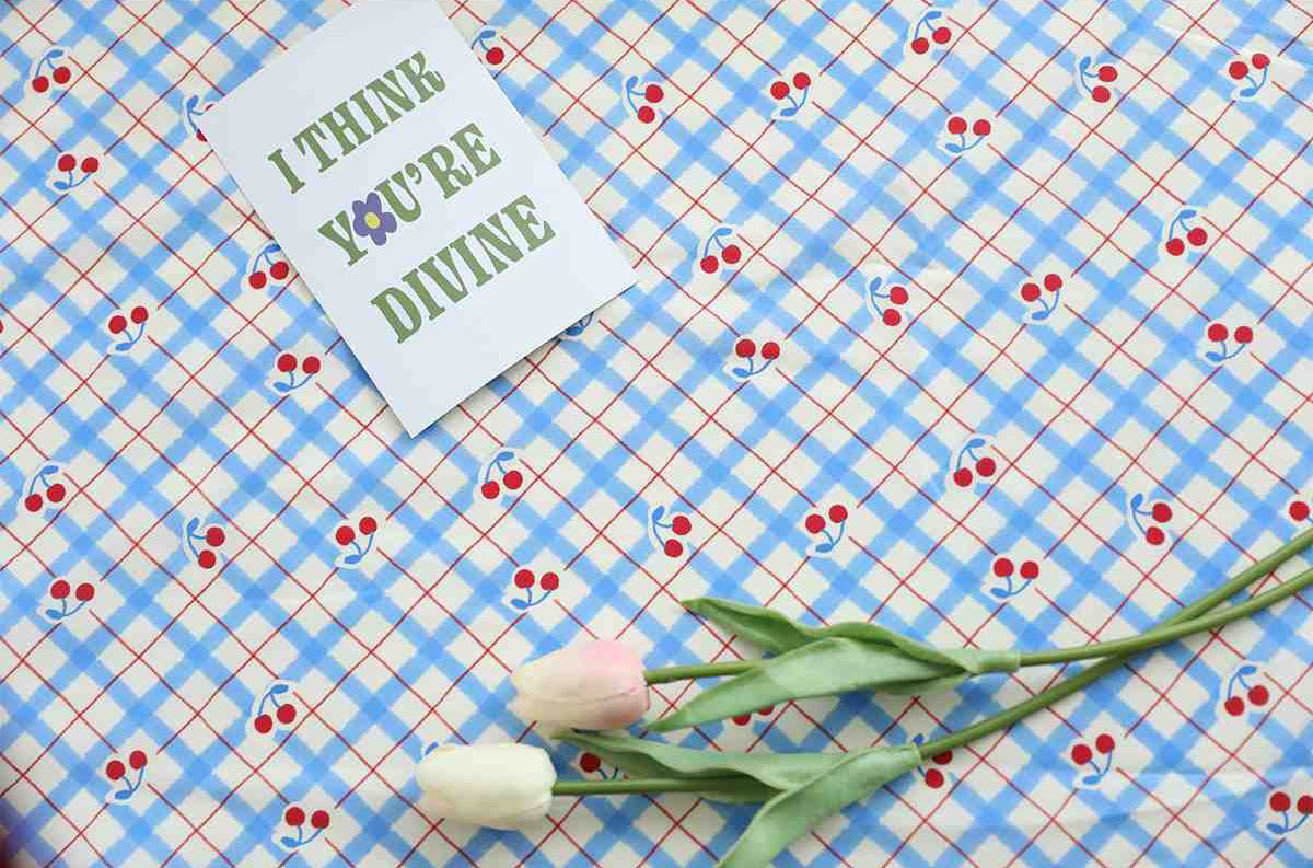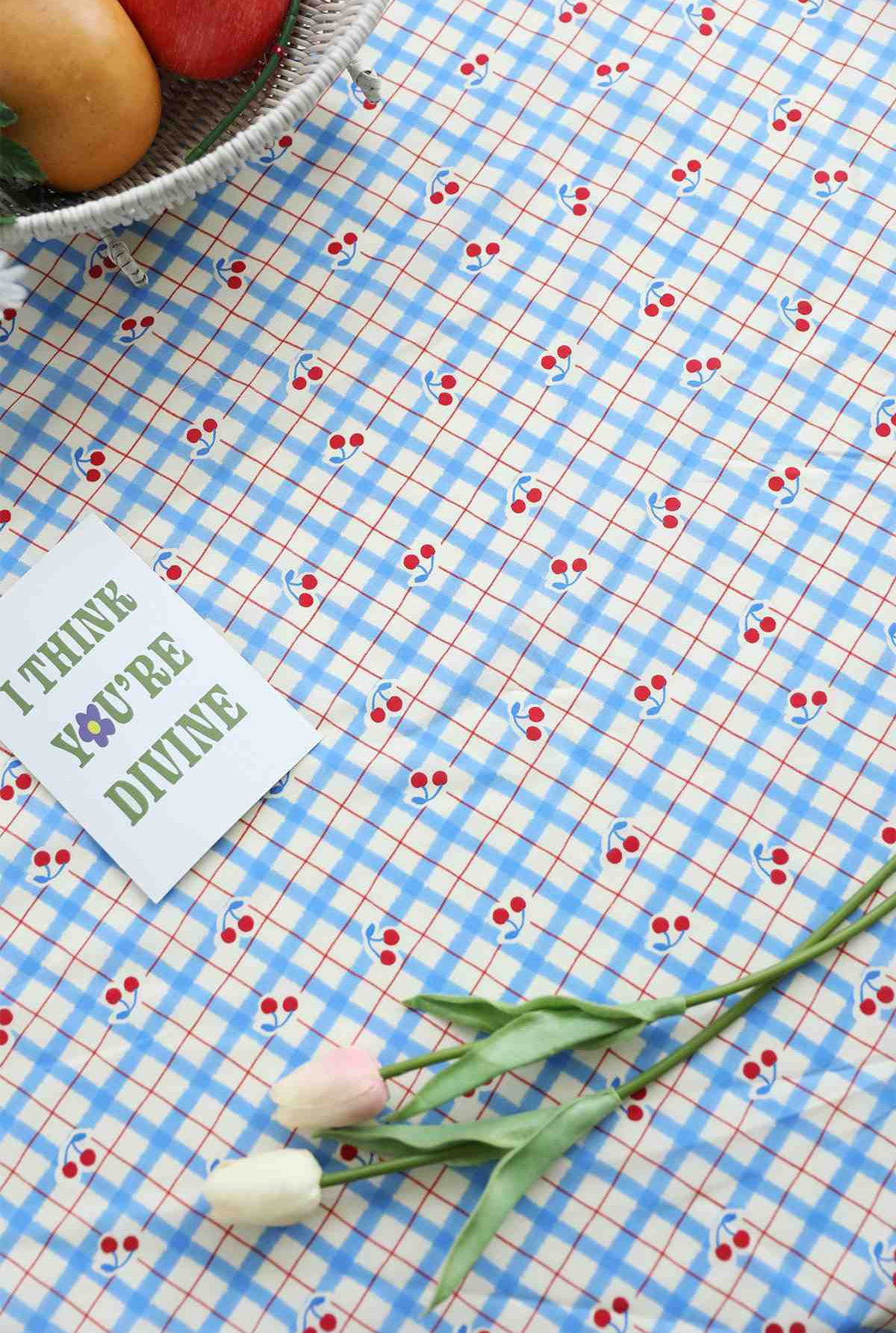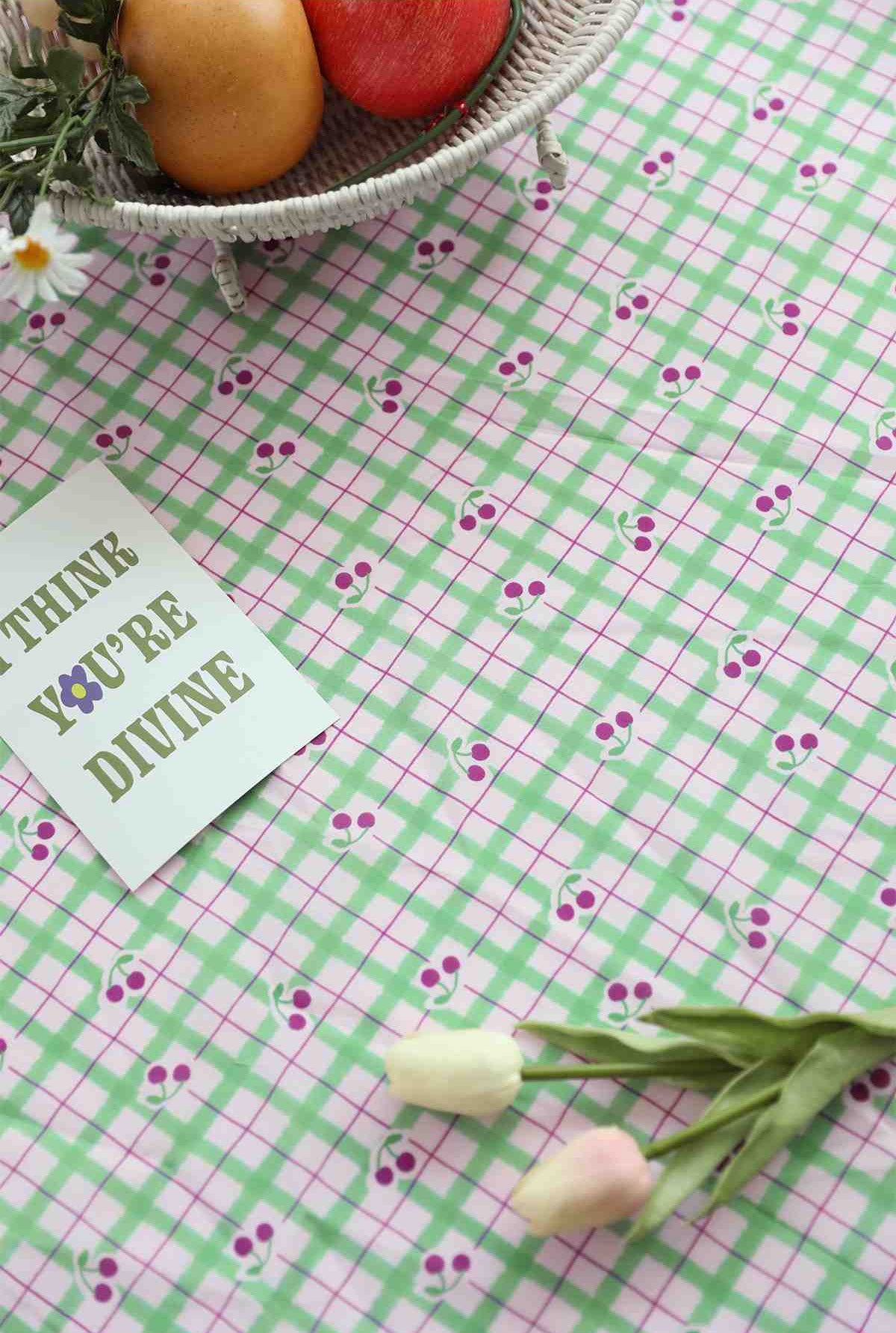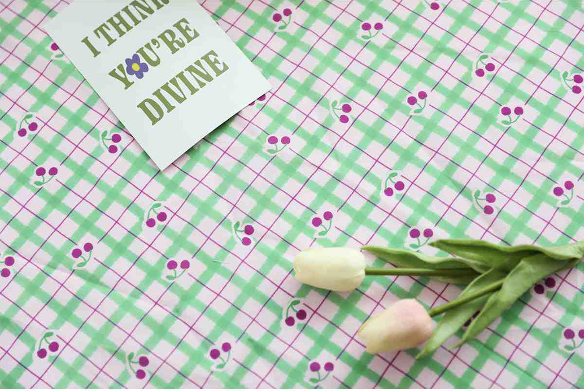 Check Cherry Patterned 30s Cotton Fabric printed in Korea