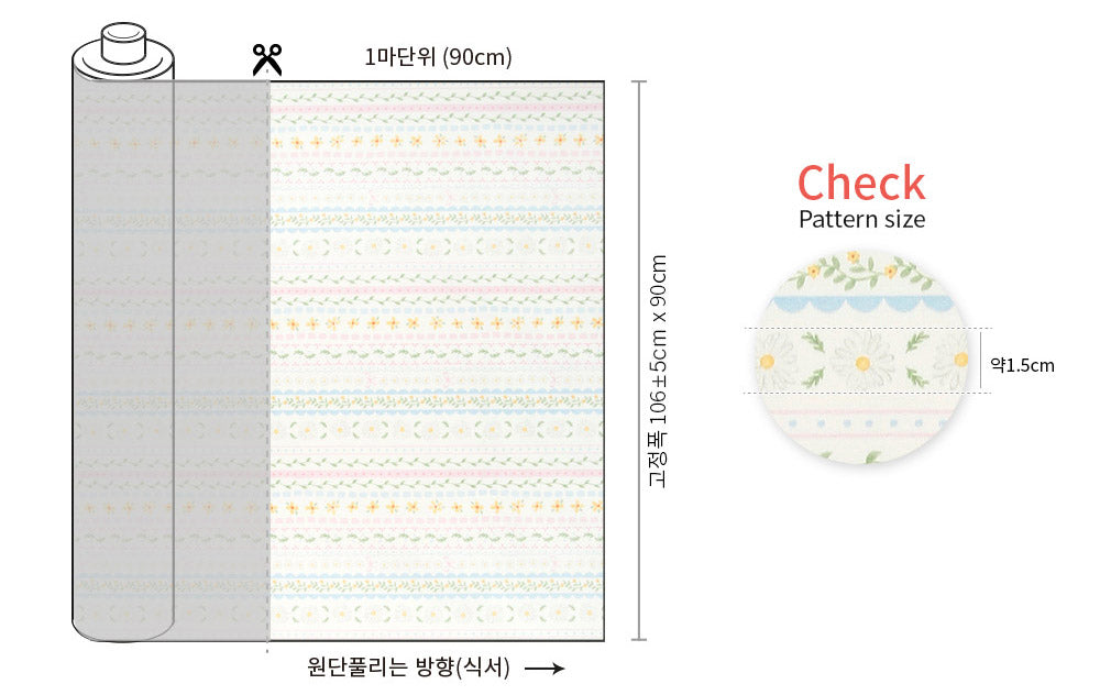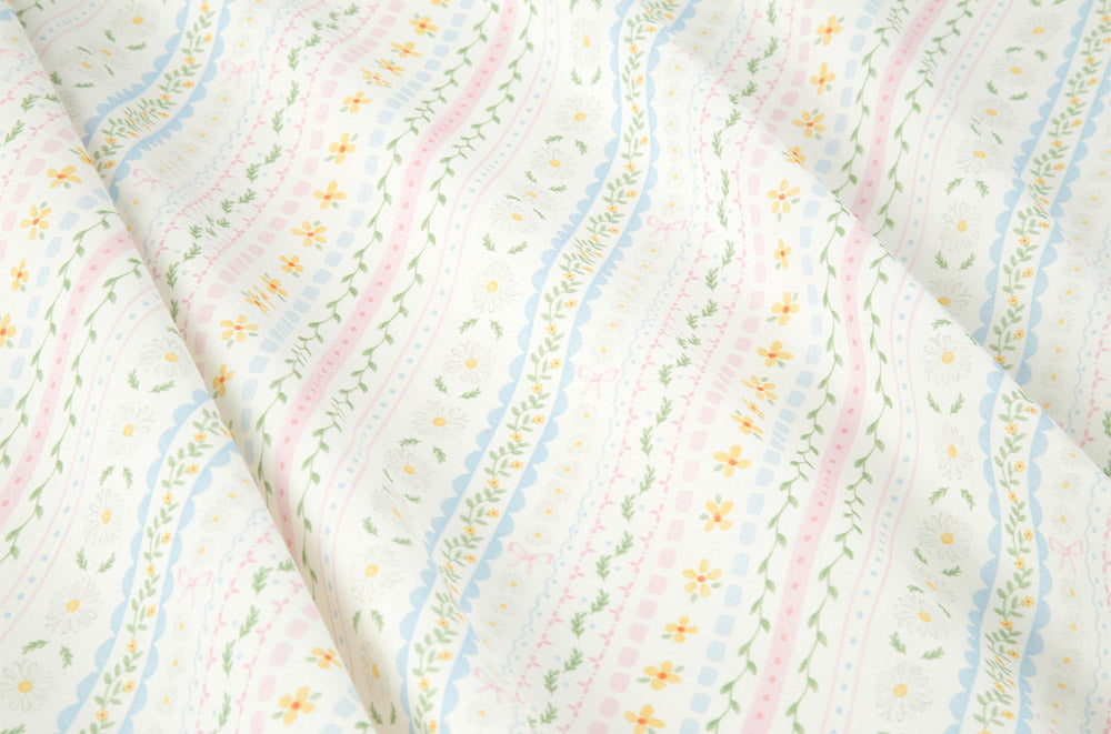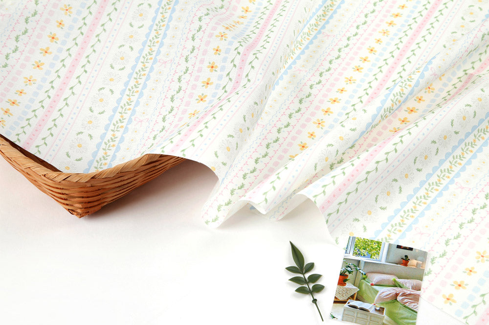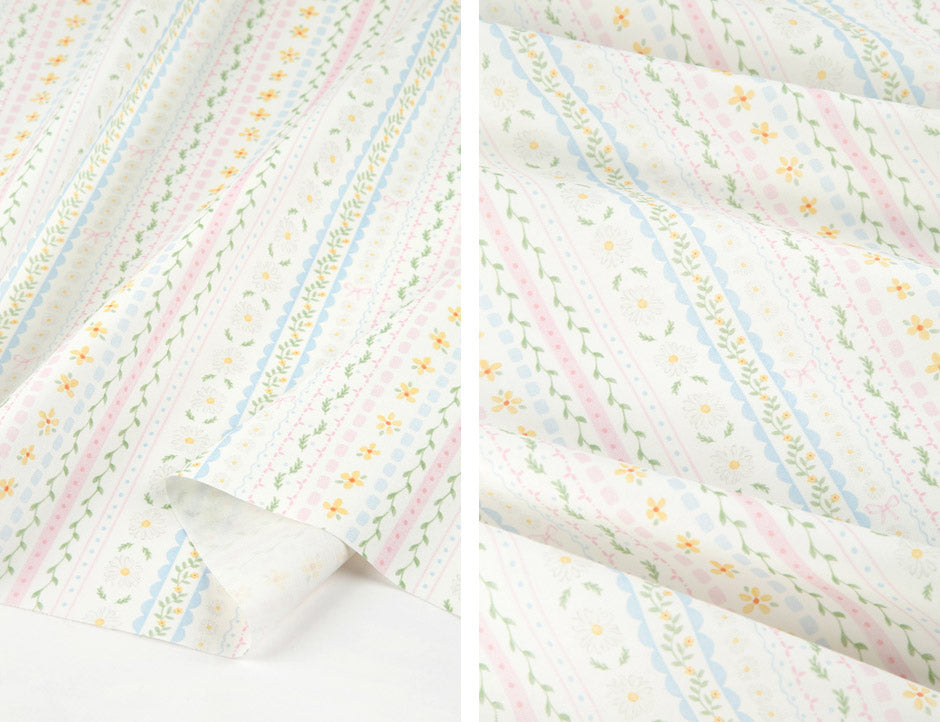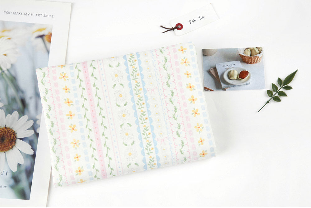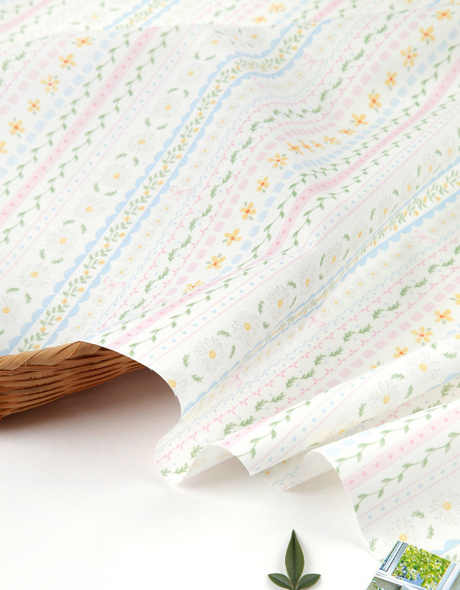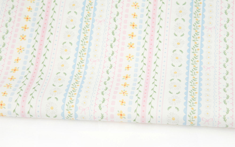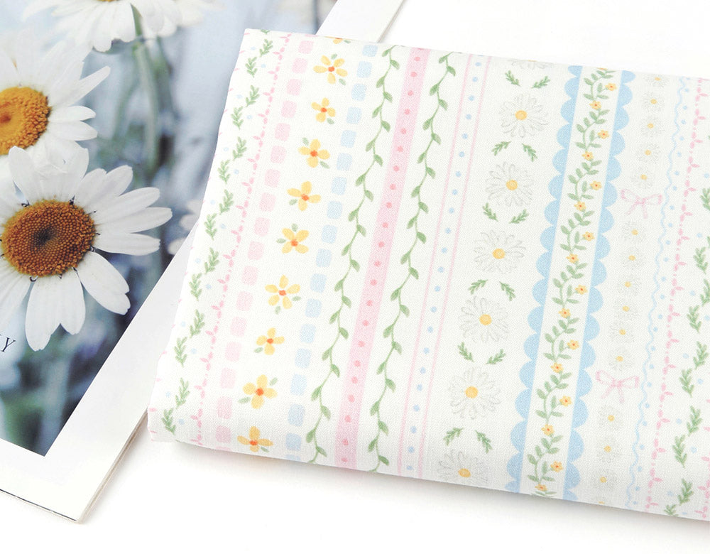 Flower Family Stripe Patterned fabric - Korean Fabric