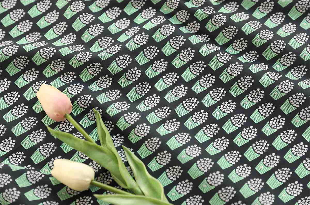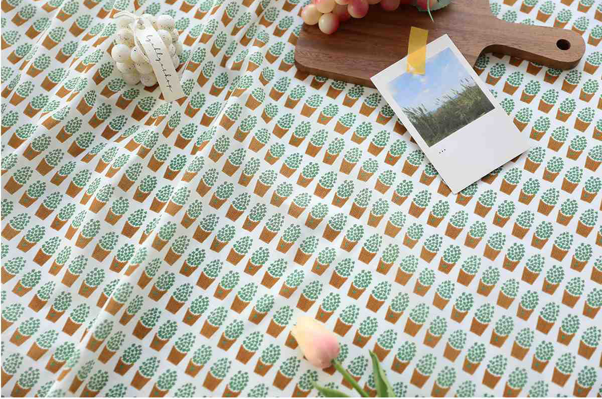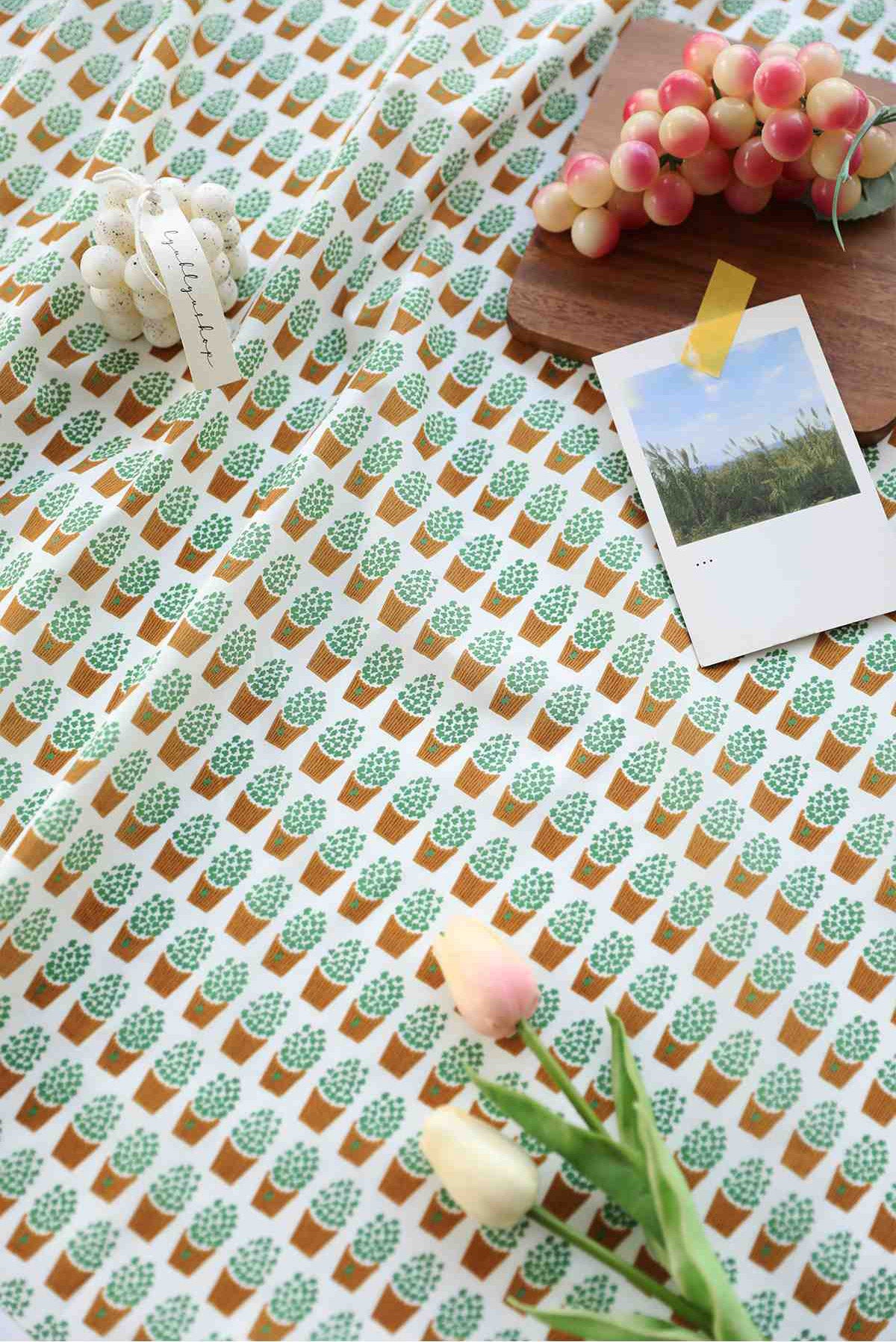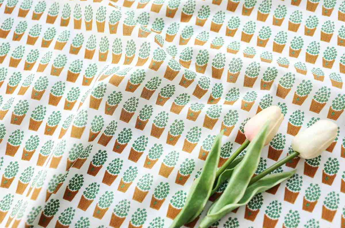Spring Picnic Flowerpot Patterned 30s Cotton Fabric printed in Korea
