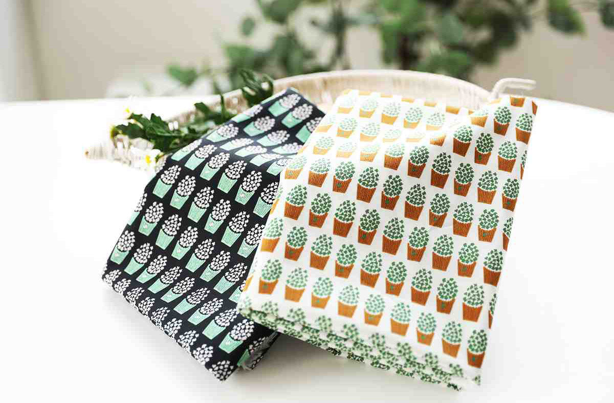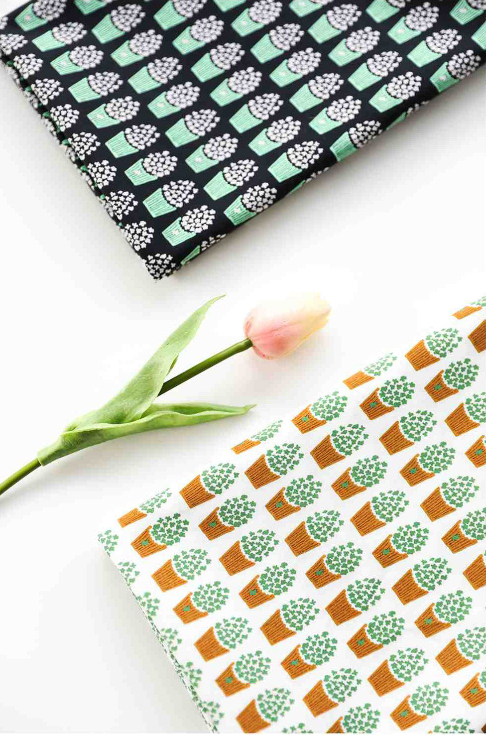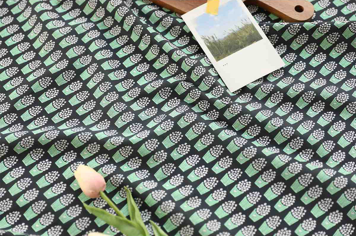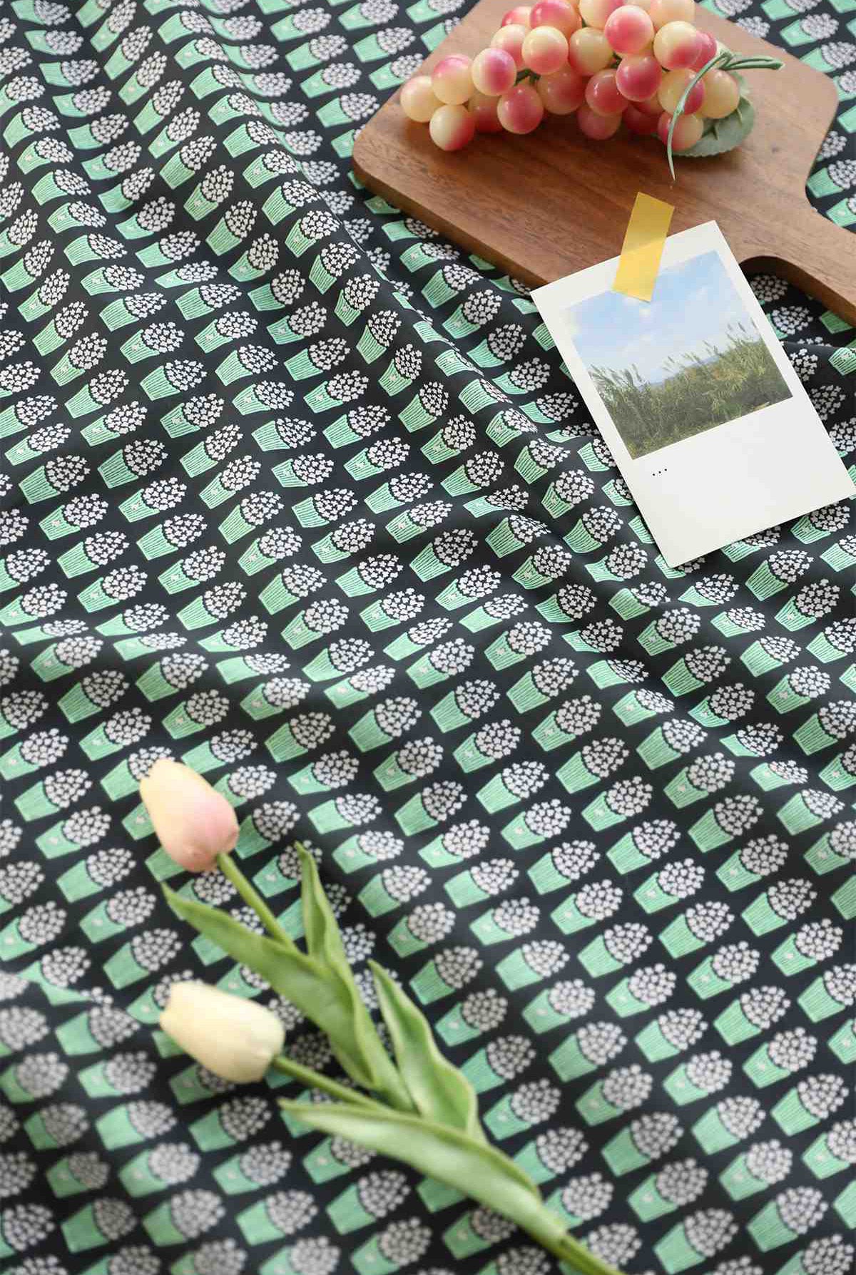 Spring Picnic Flowerpot Patterned 30s Cotton Fabric printed in Korea