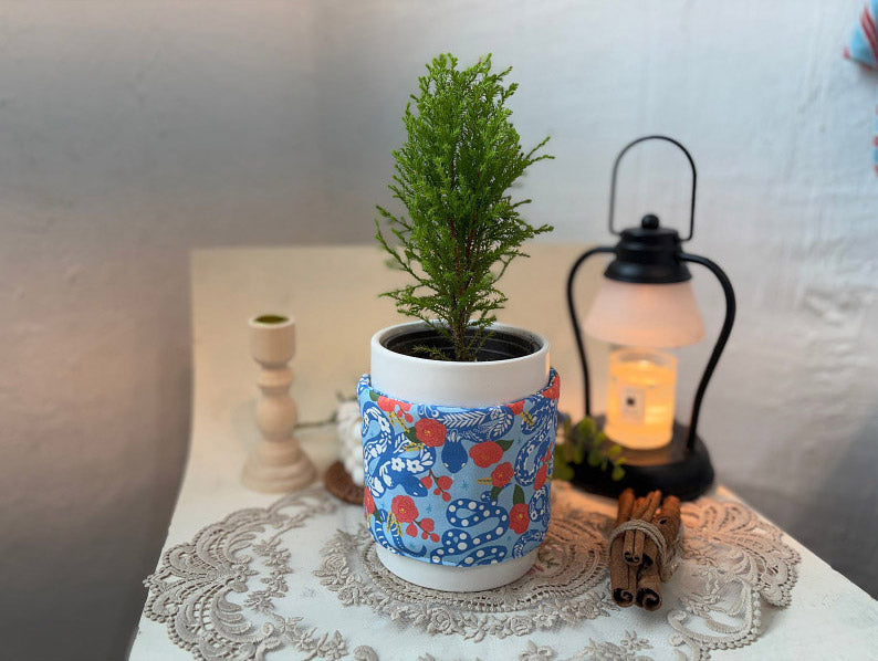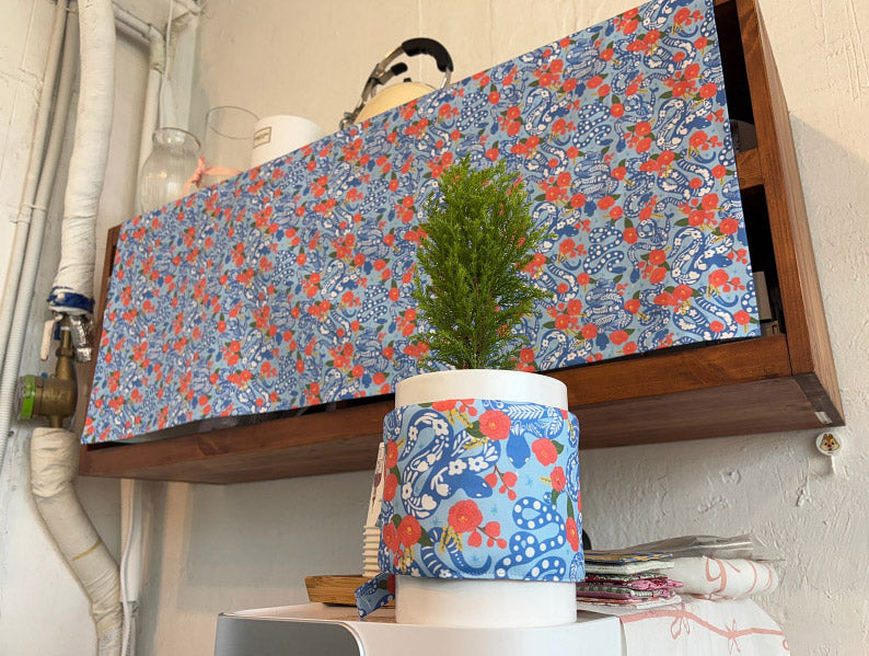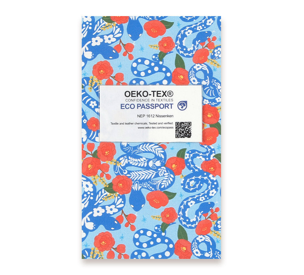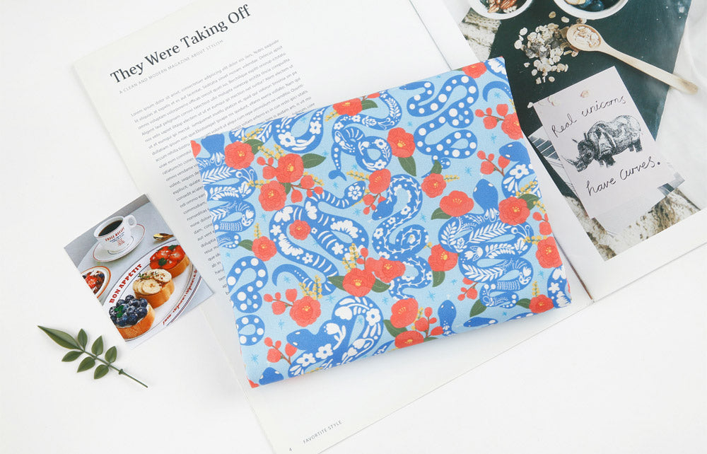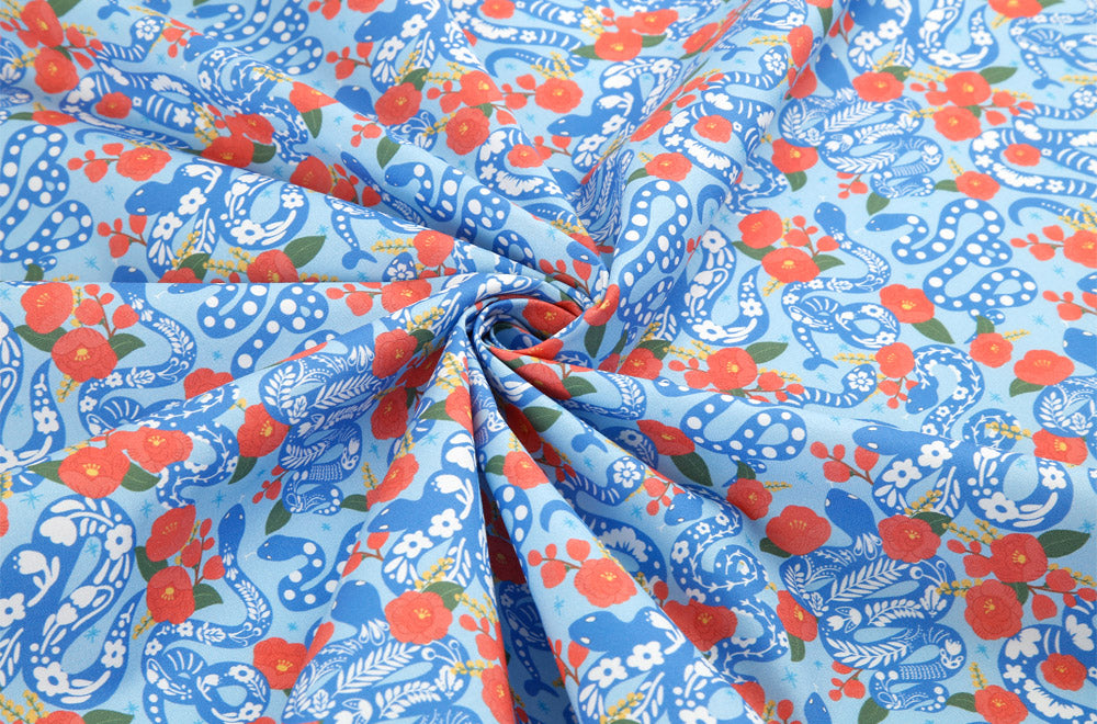 Camellia and Blue Snake Patterned fabric - Korean Fabric