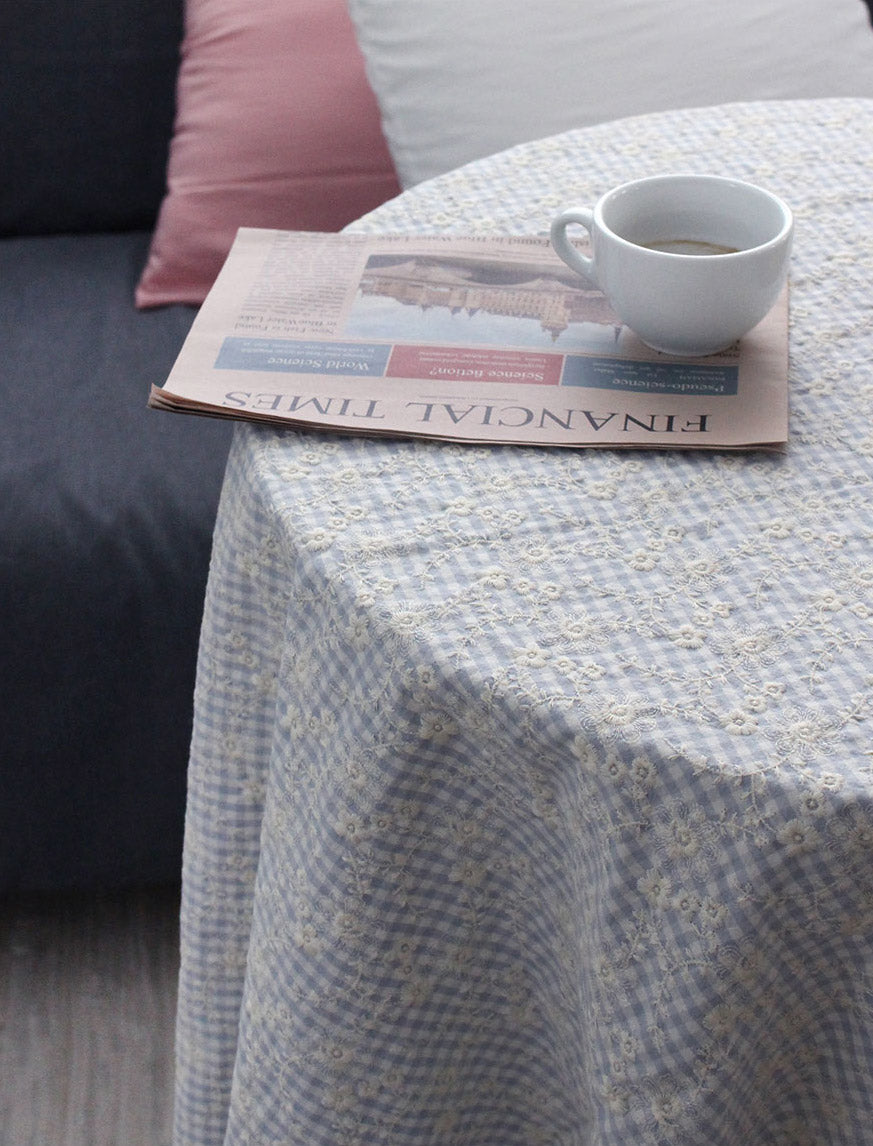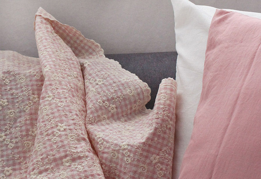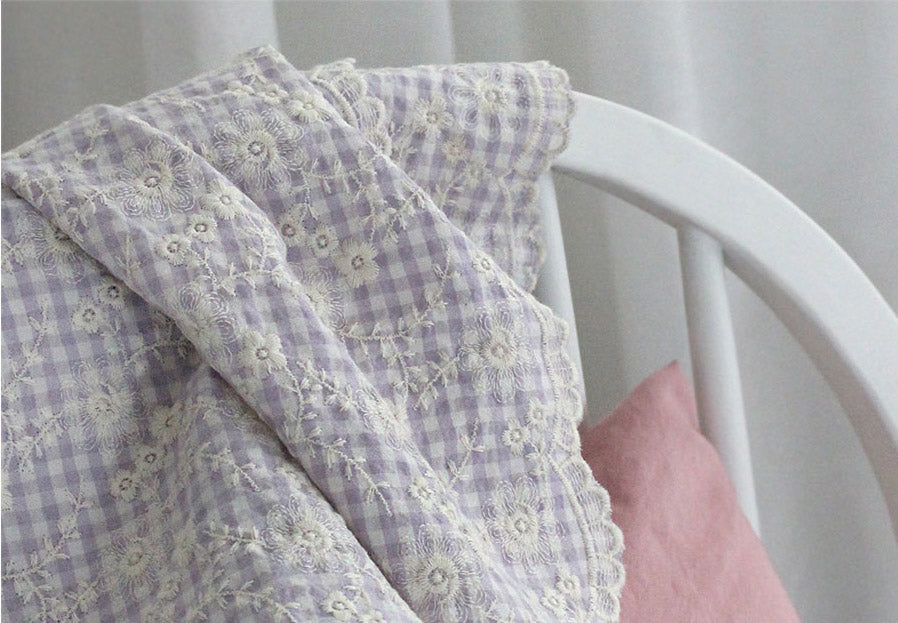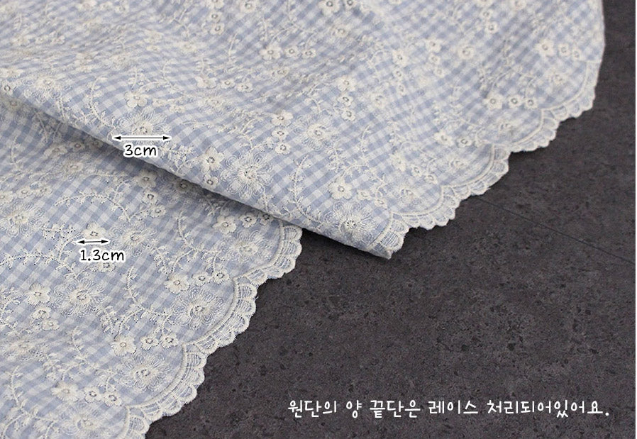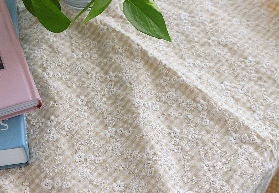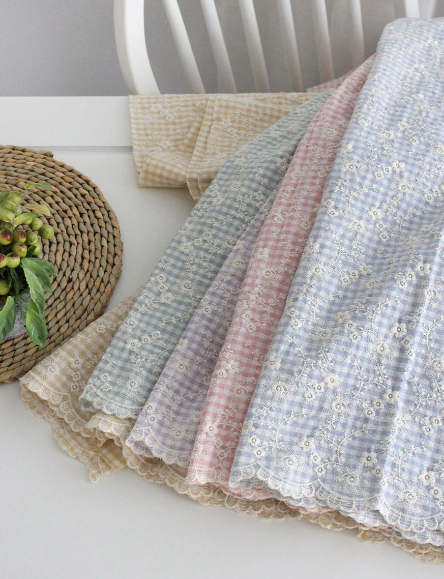 Lace Embroidery Flower Check Gingham Patterned fabric - Korean Fabric