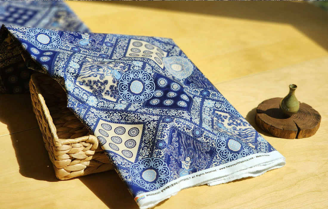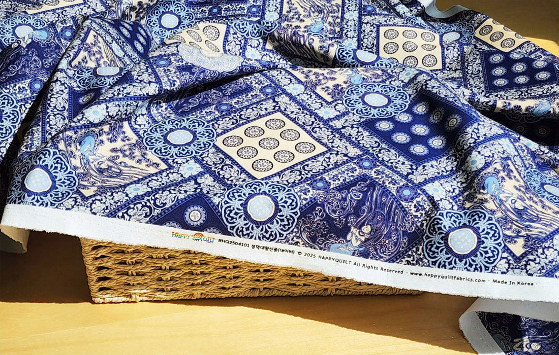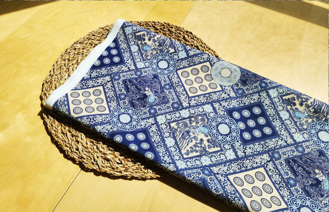Korean Traditional Sacred Bell Bandana Navy Pattern Fabric Korean Fabric
