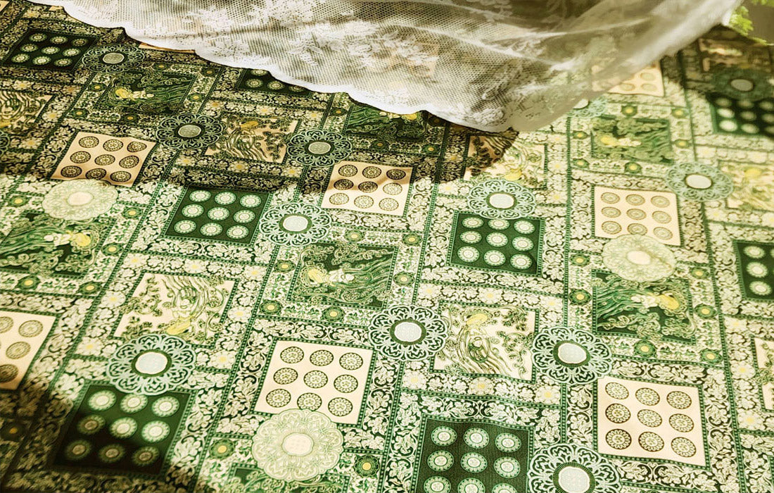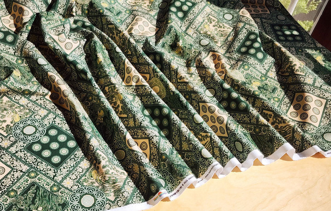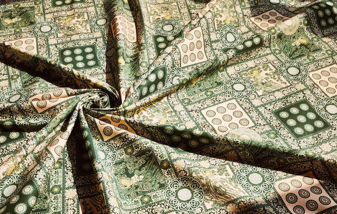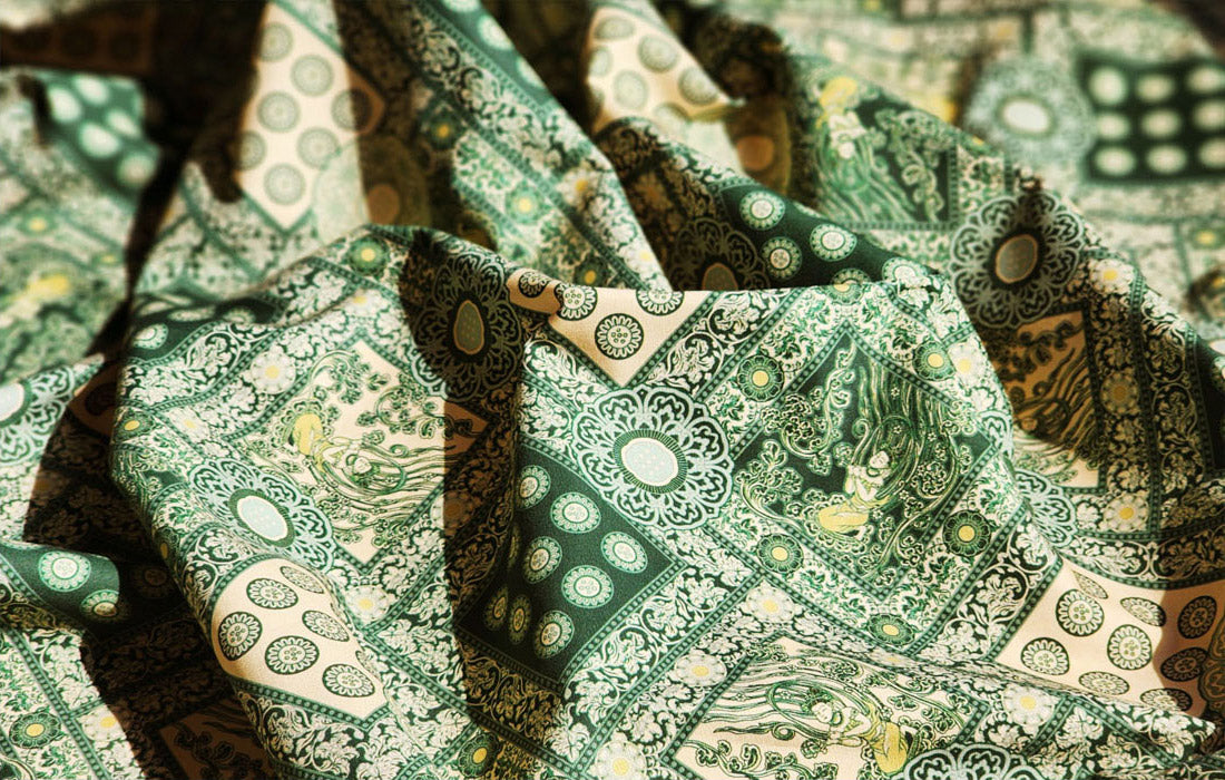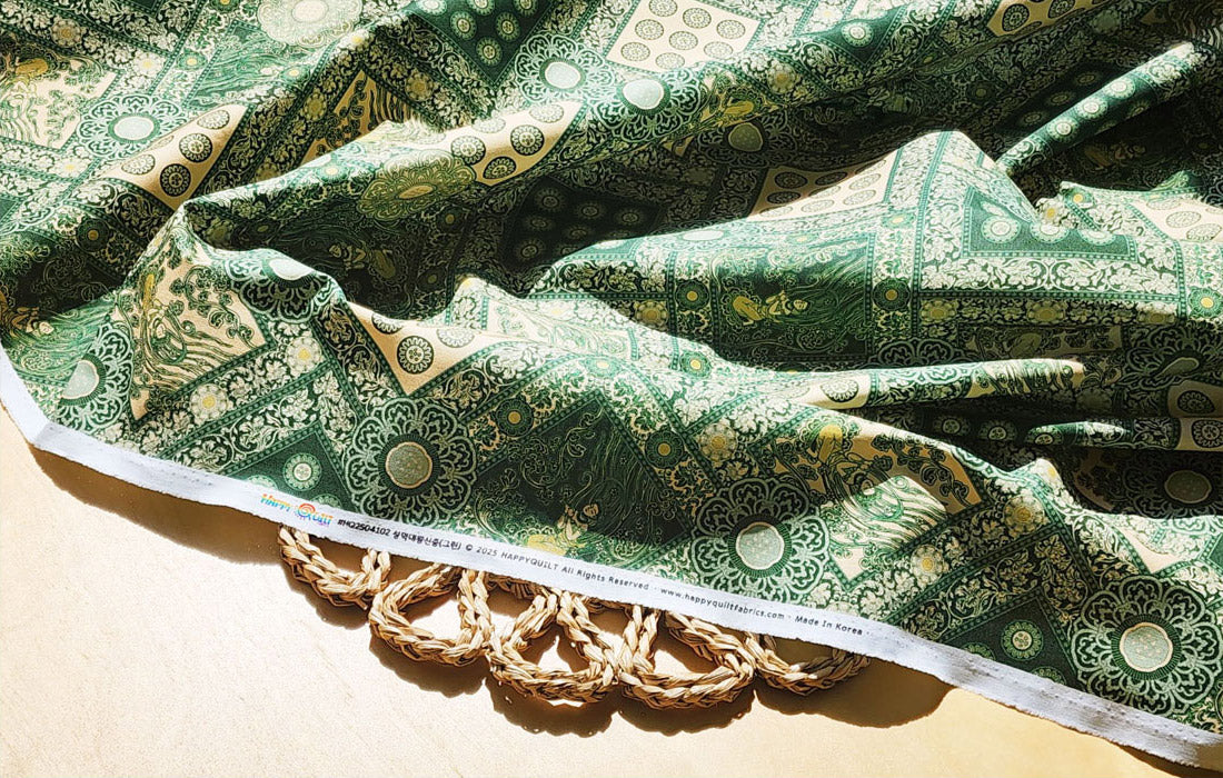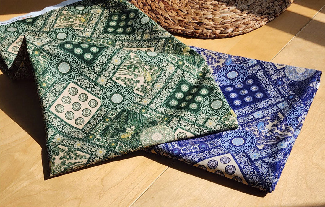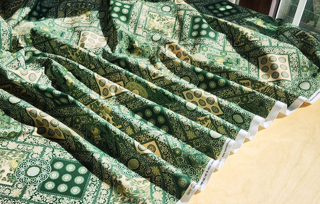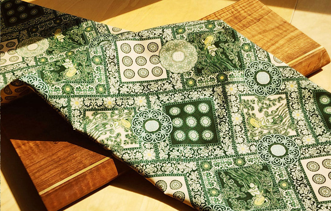 Korean Traditional Sacred Bell Bandana Green Pattern Fabric Korean Fabric