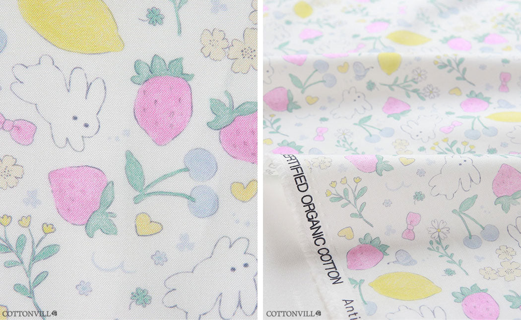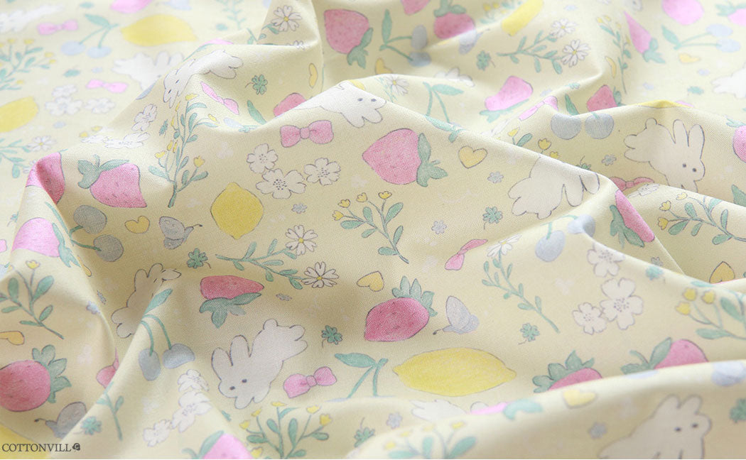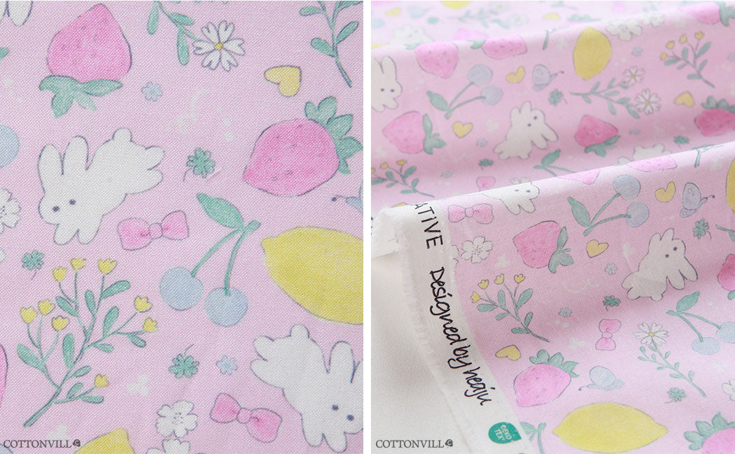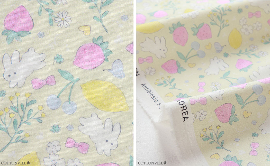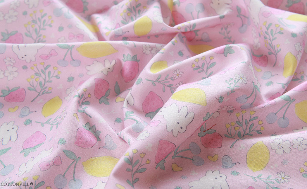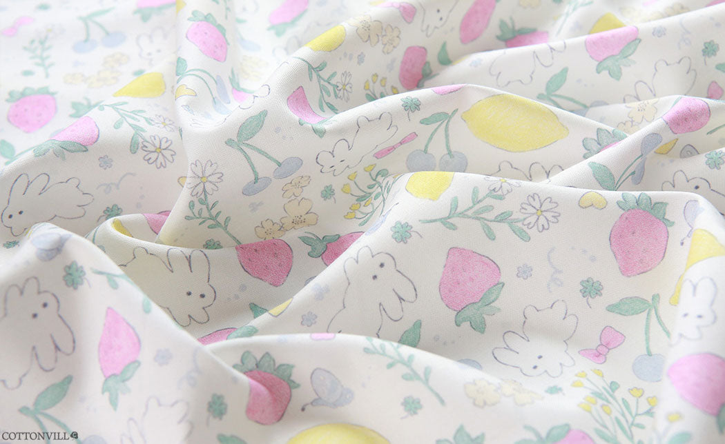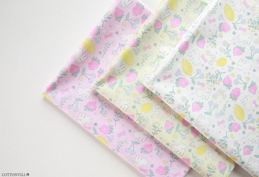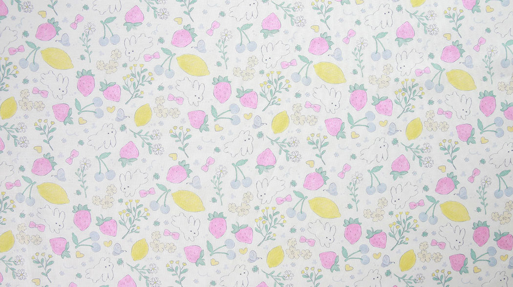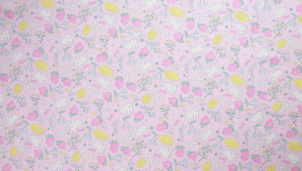 Strawberry Rabbit Patterned Fabric - Korean Fabric