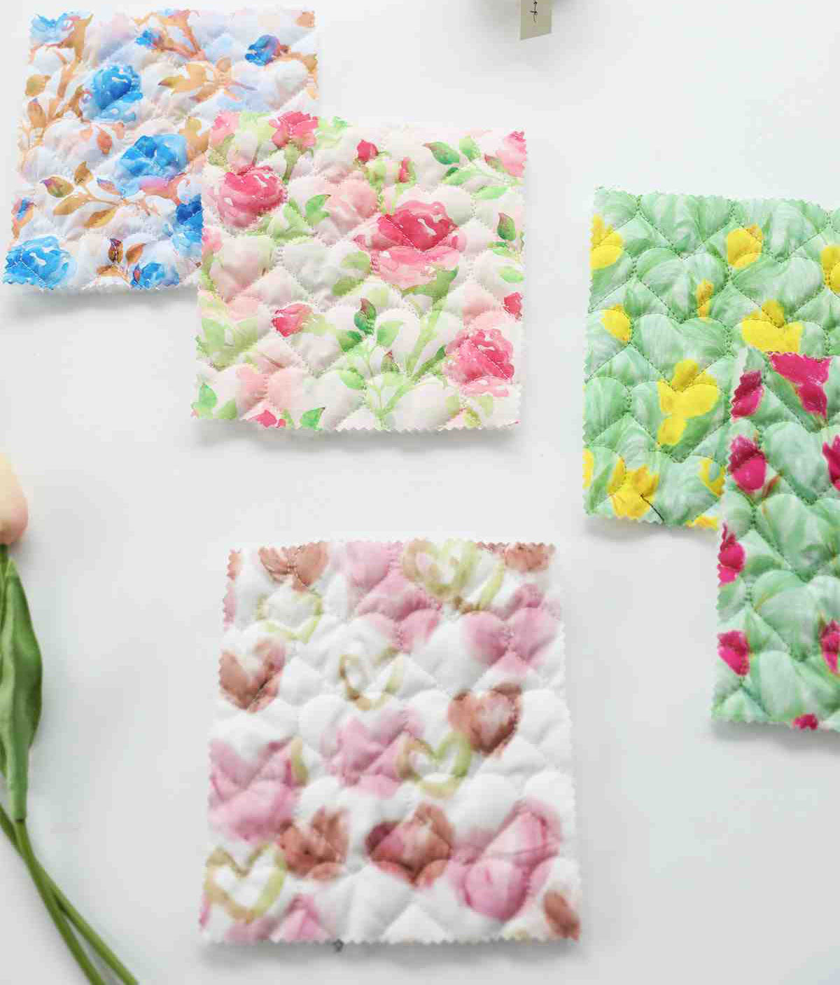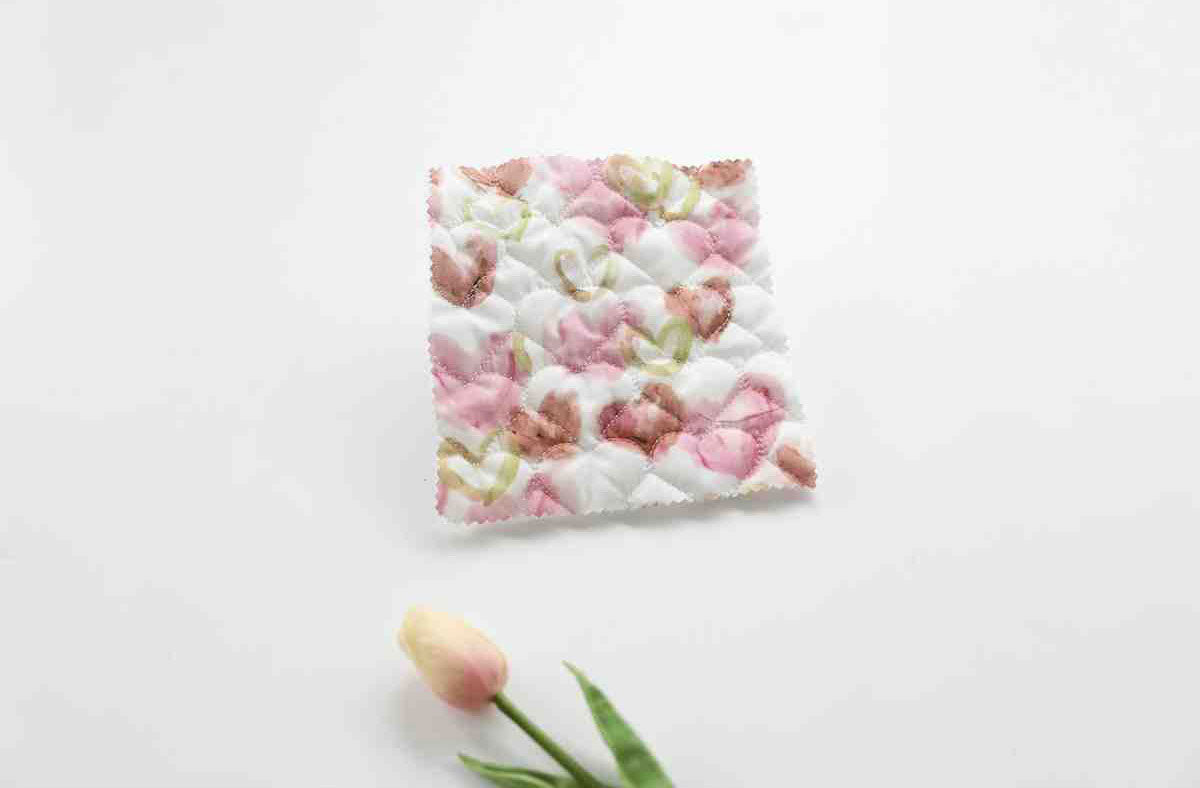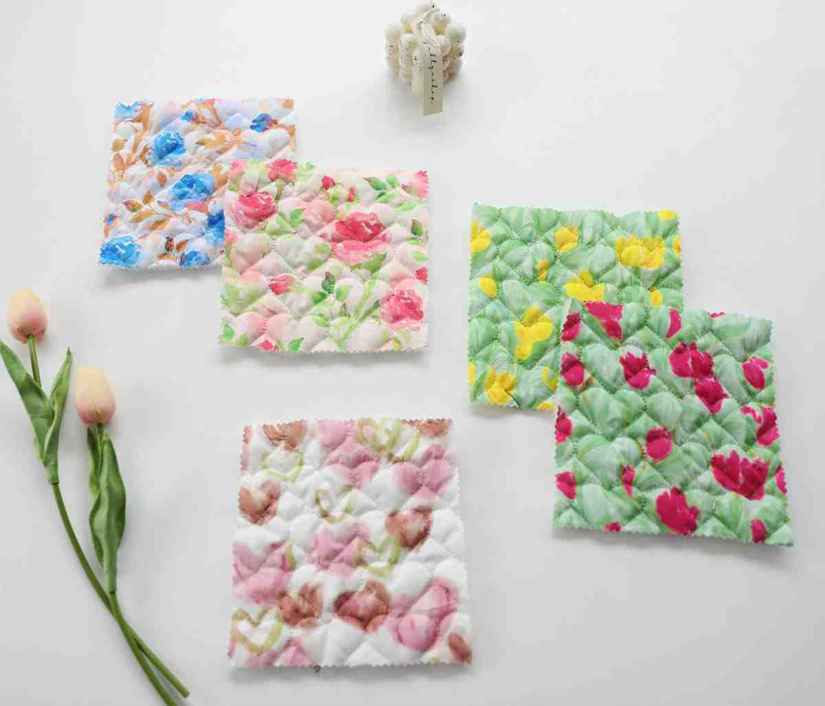 Rose Tulip Heart Heart Quilted Nubi Fabric - Korean Fabric