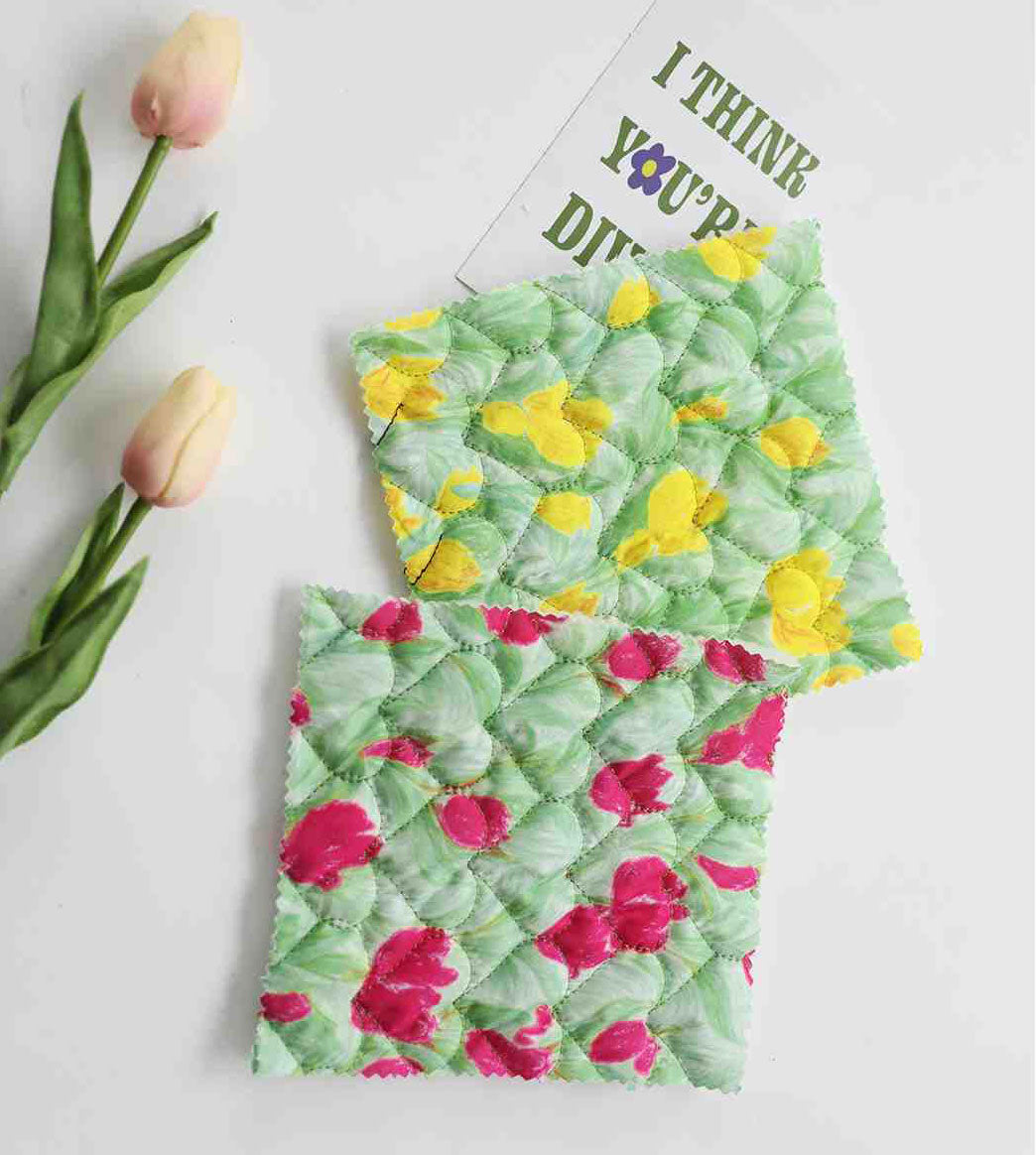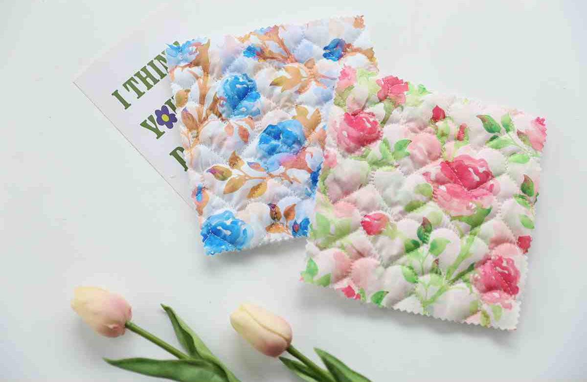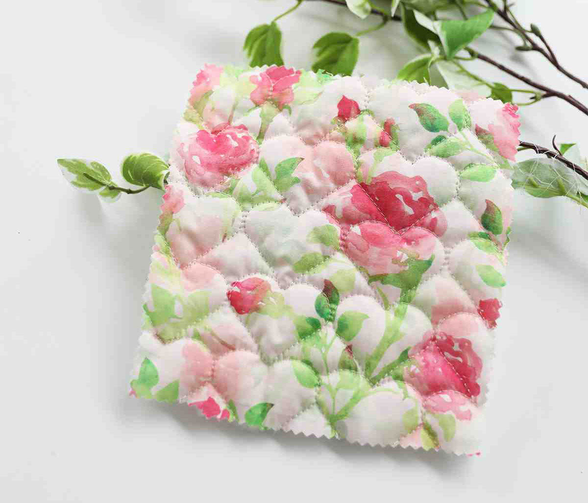 Rose Tulip Heart Heart Quilted Nubi Fabric - Korean Fabric