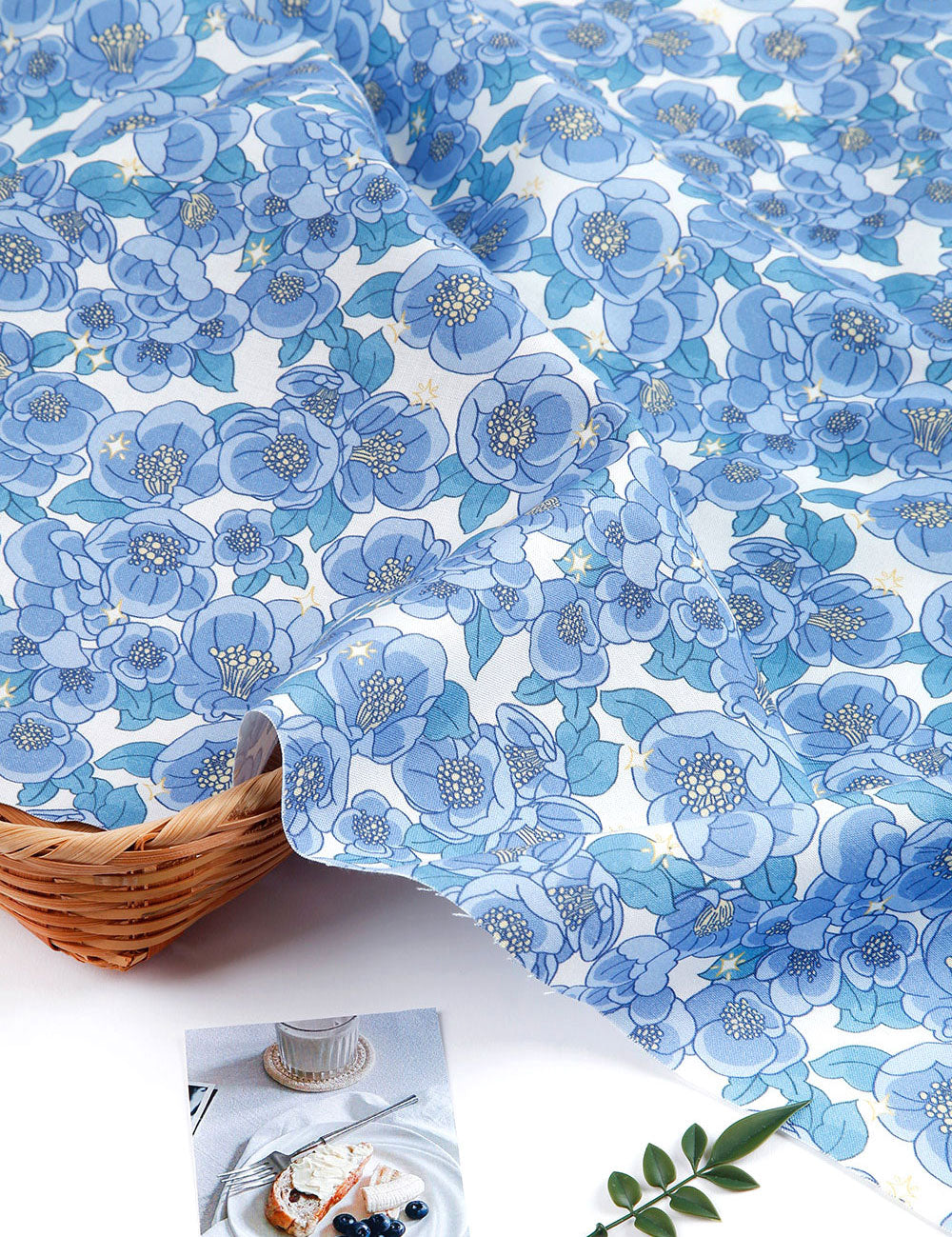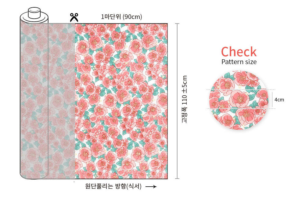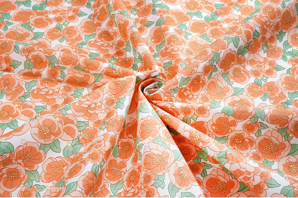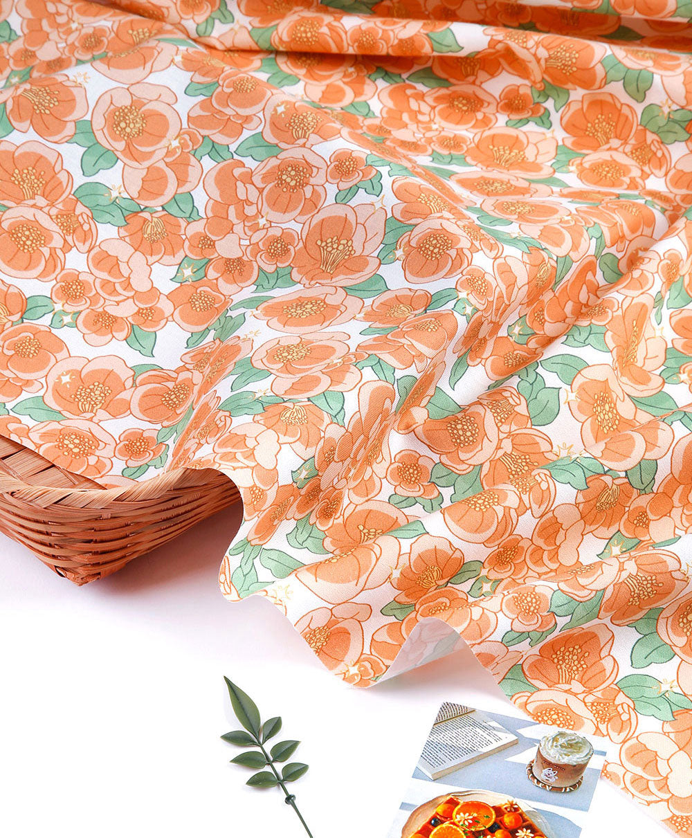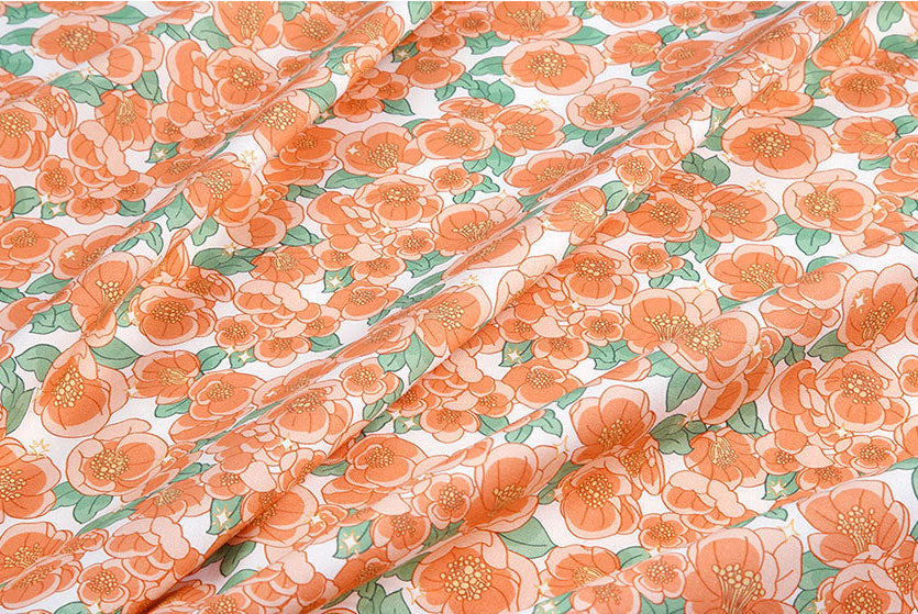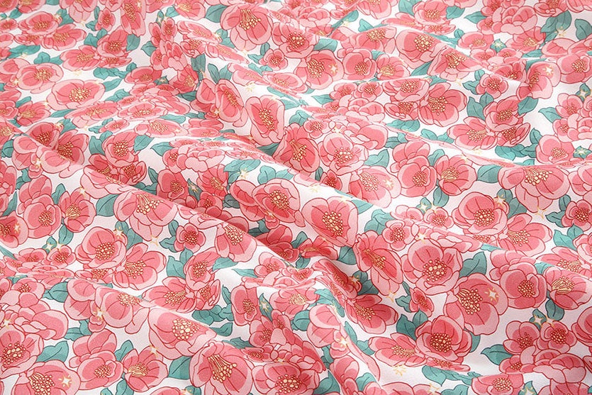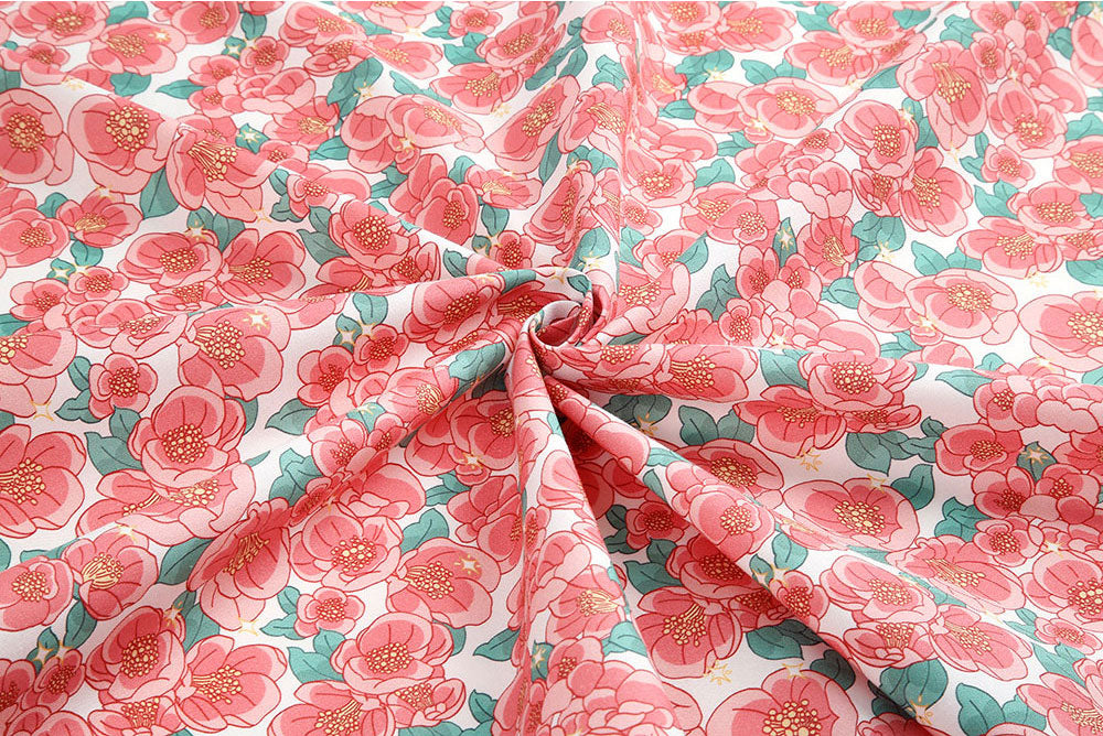 Shine Camellia Flower Patterned fabric - Korean Fabric