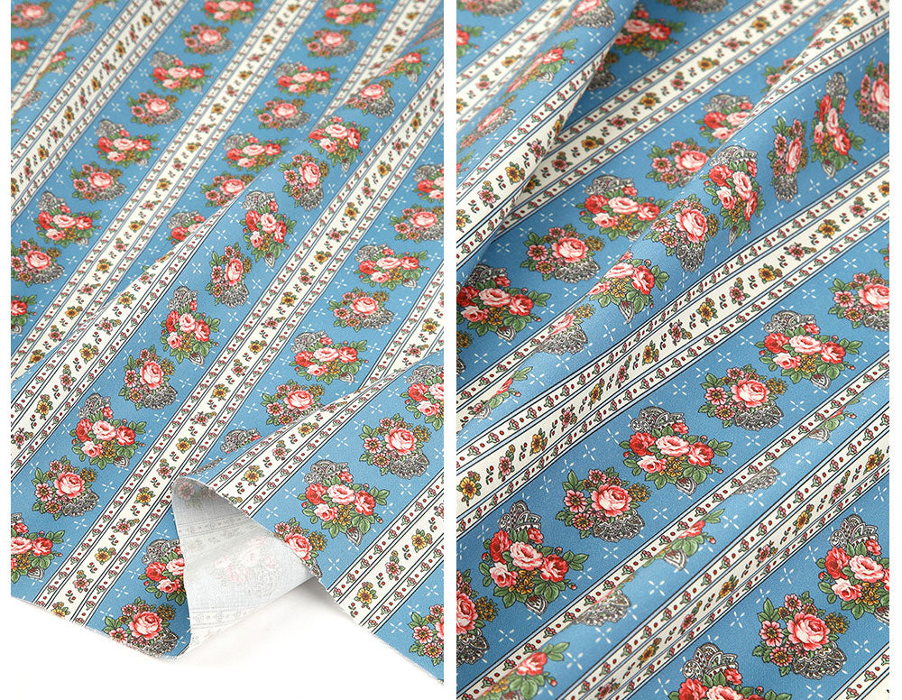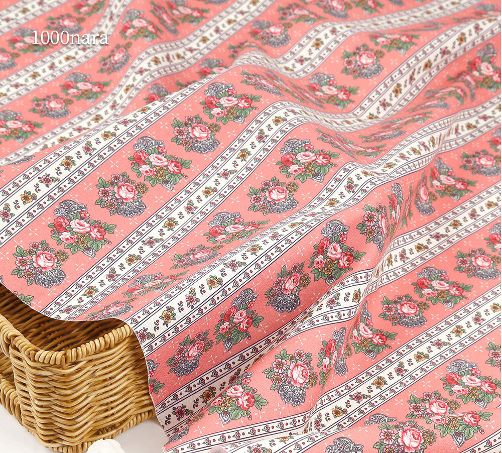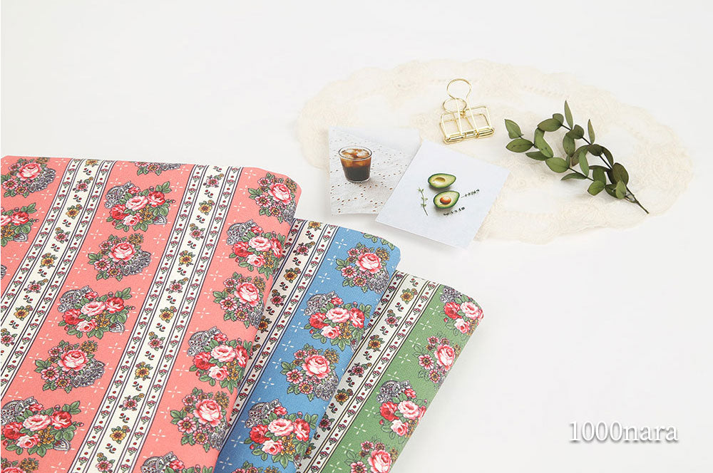 Vintage Retro Style Road of Rose Flower Patterned fabric - Korean Fabric