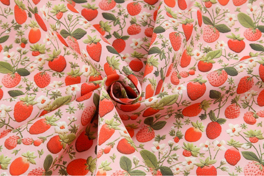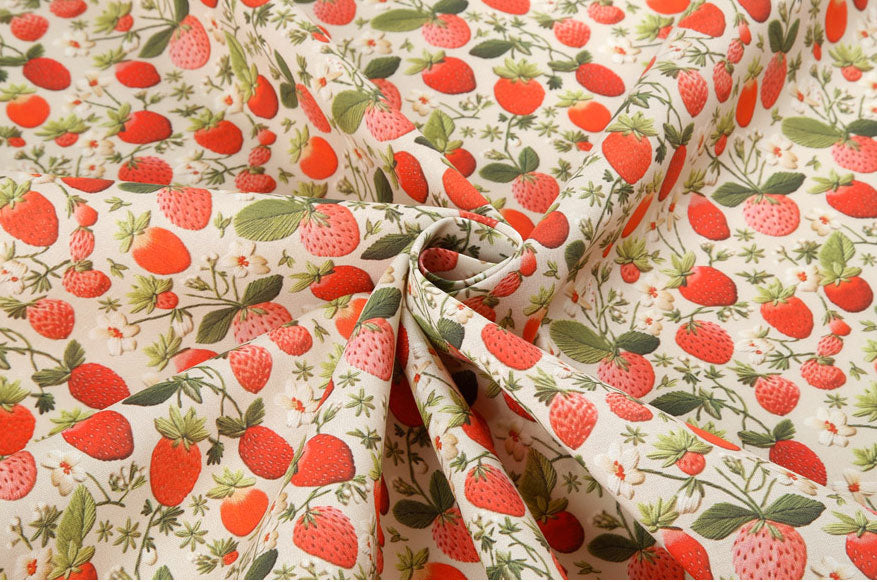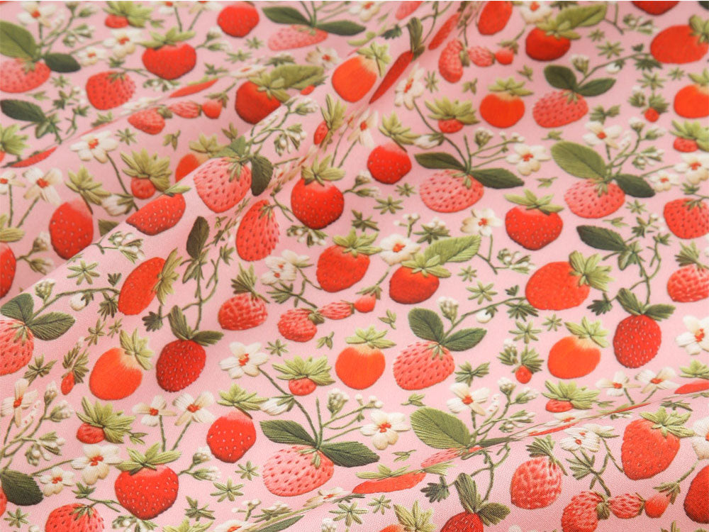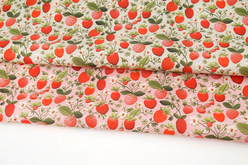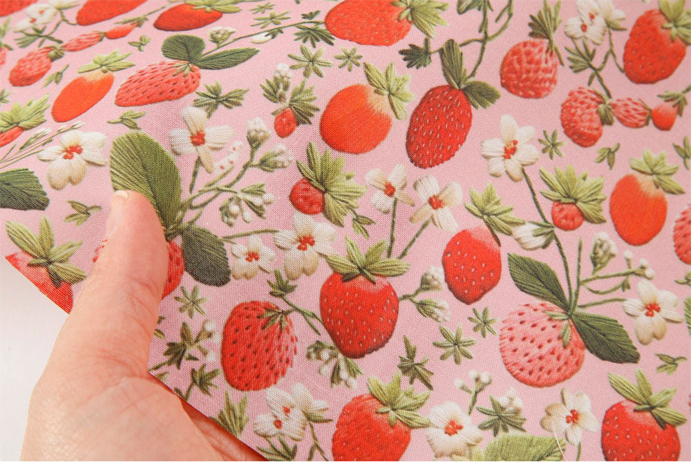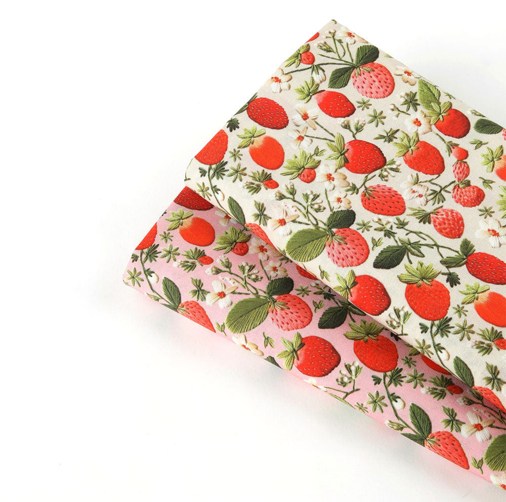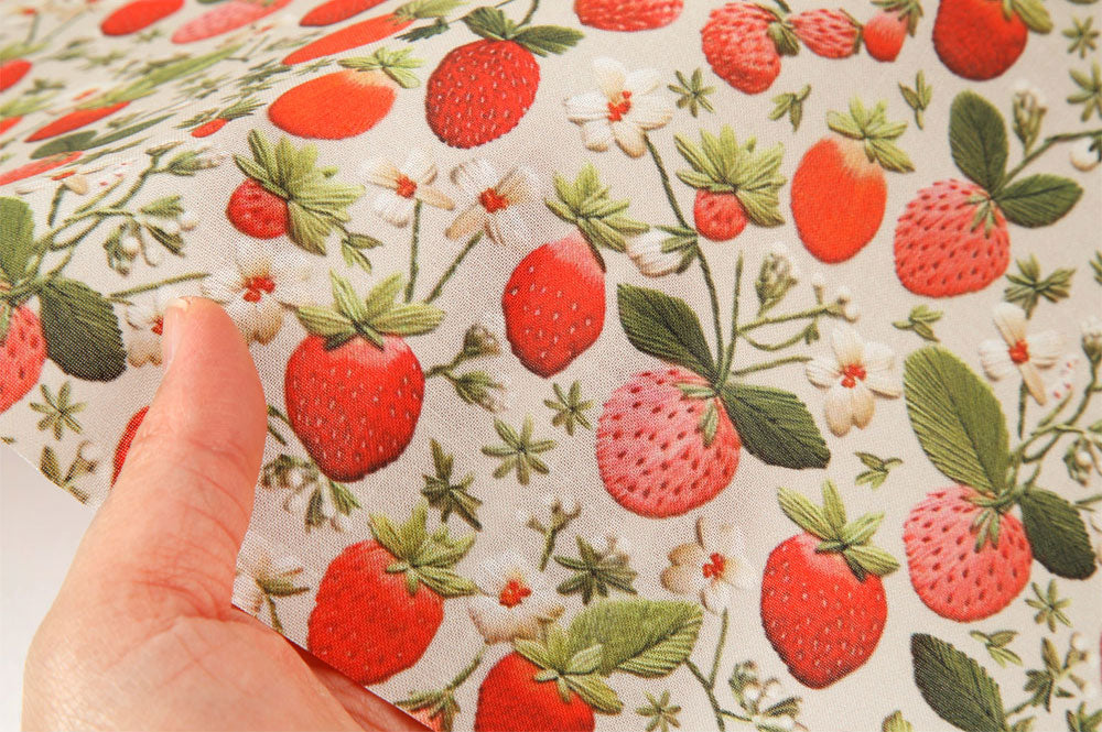 Embroidery Style Strawberry Patterned fabric - Korean Fabric