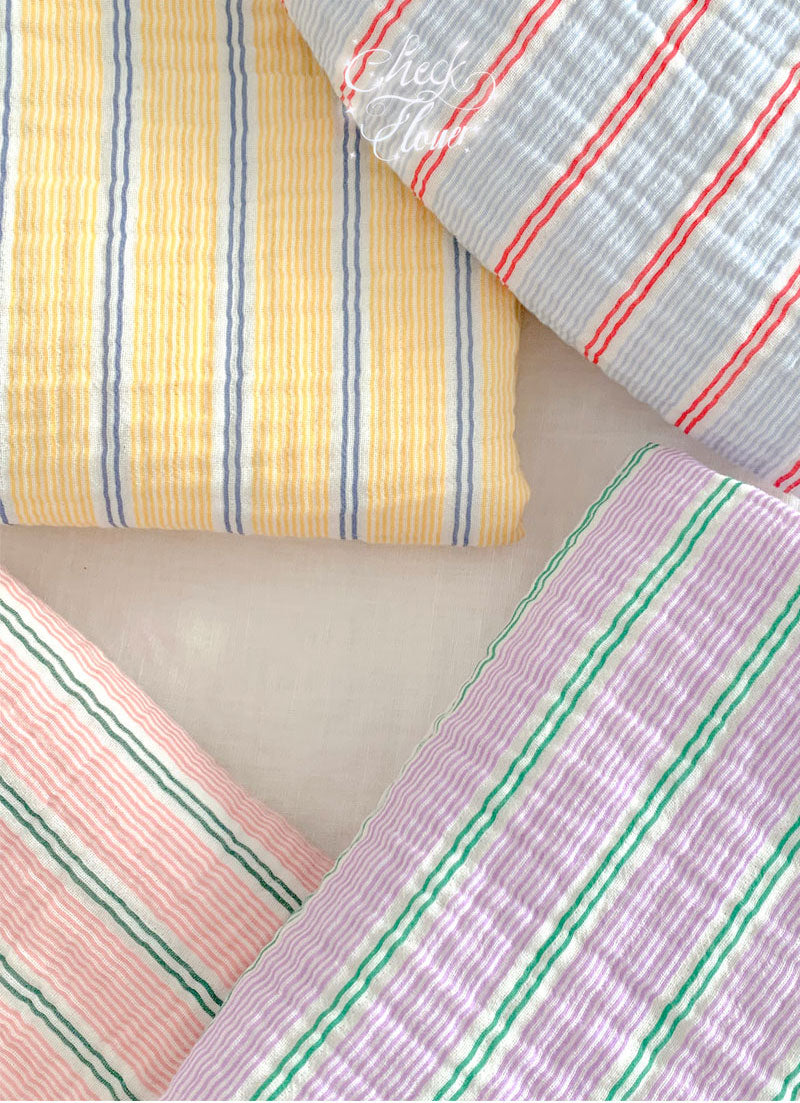 Stripe Patterned Triple Gauze Fabric - Korean Fabric
