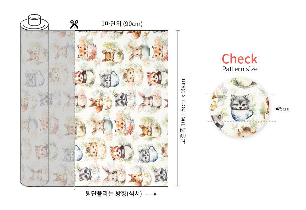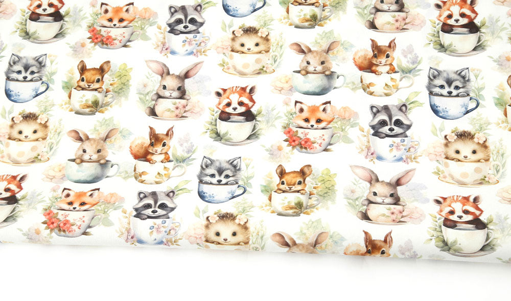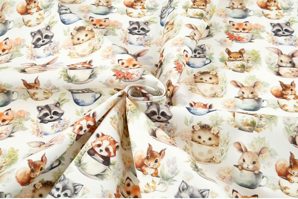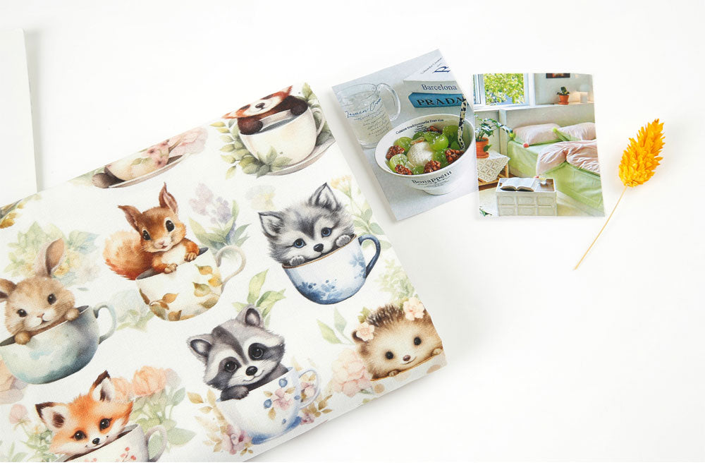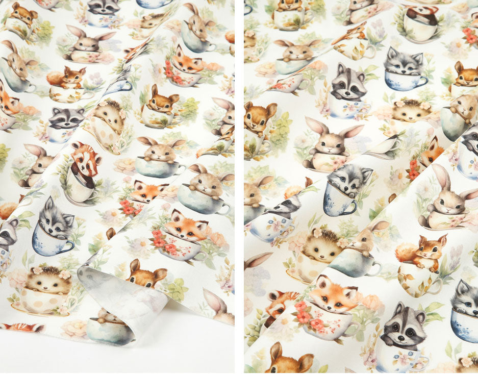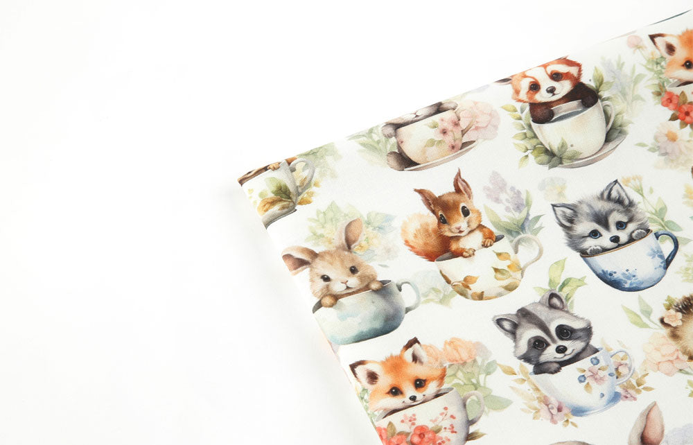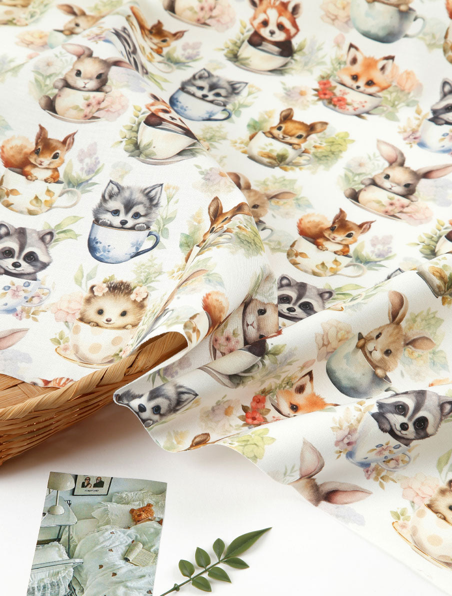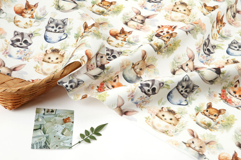 Tea Cup Baby Animals Patterned fabric - Korean Fabric