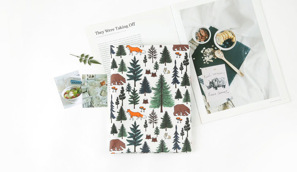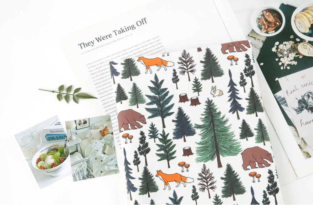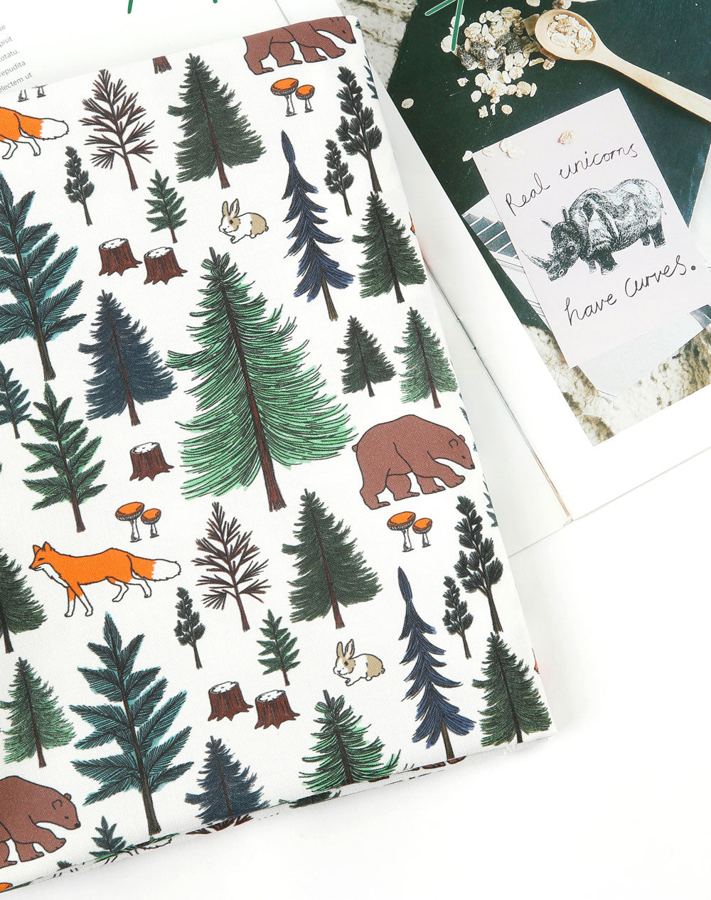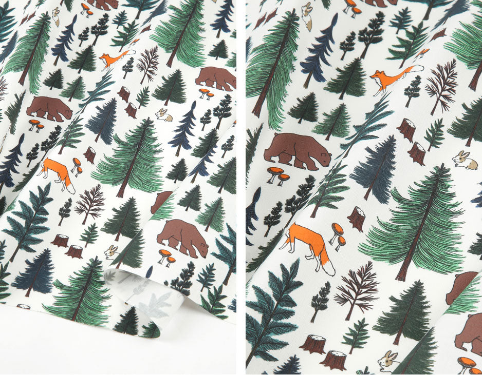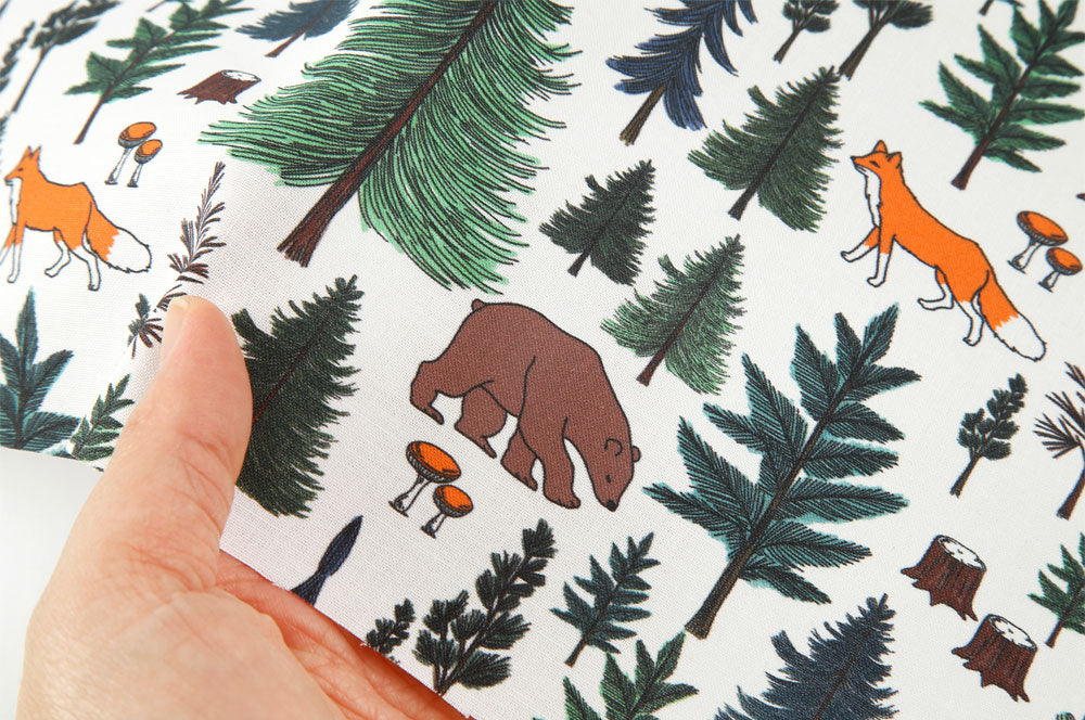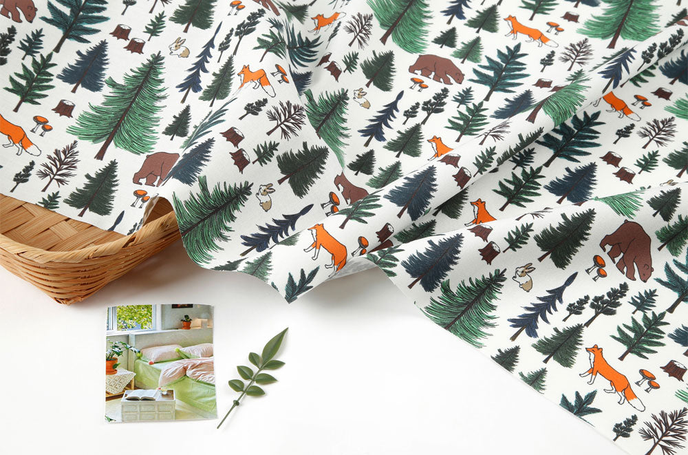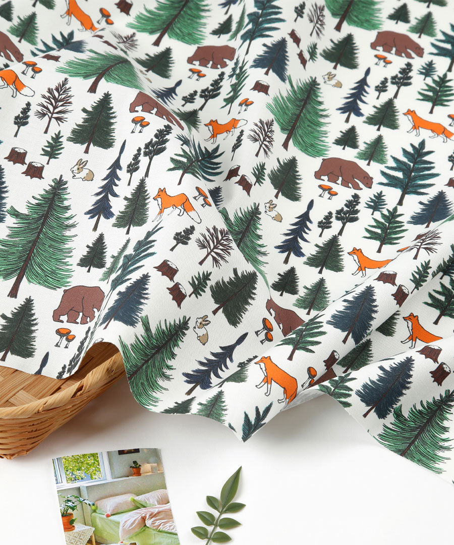 Mountain Forest Animals Fox Bear Rabbit Patterned fabric - Korean Fabric