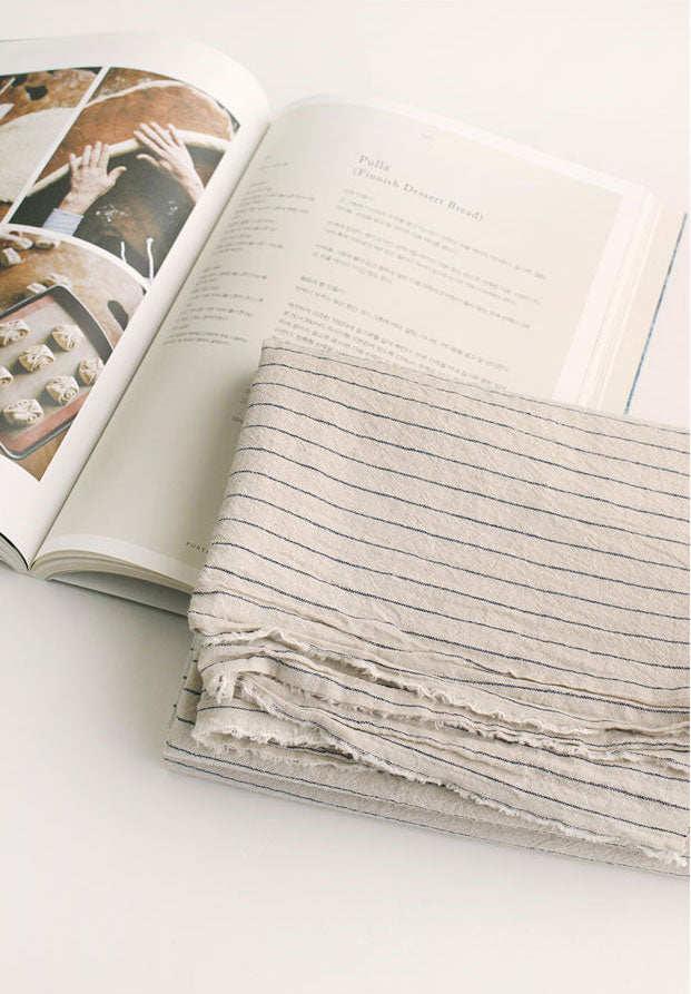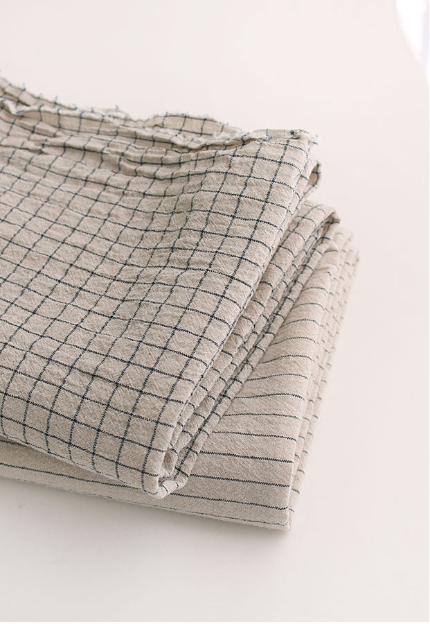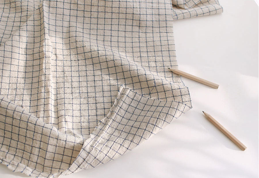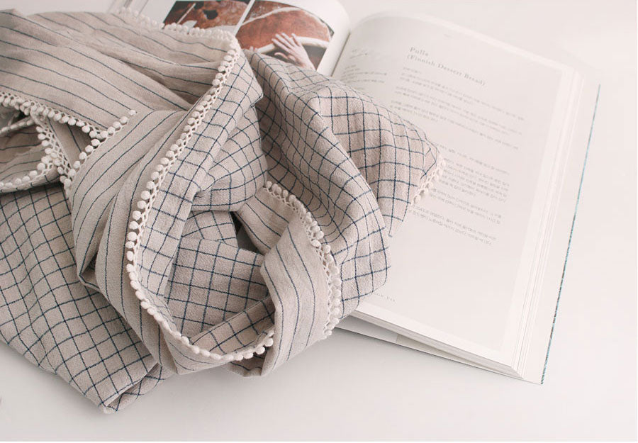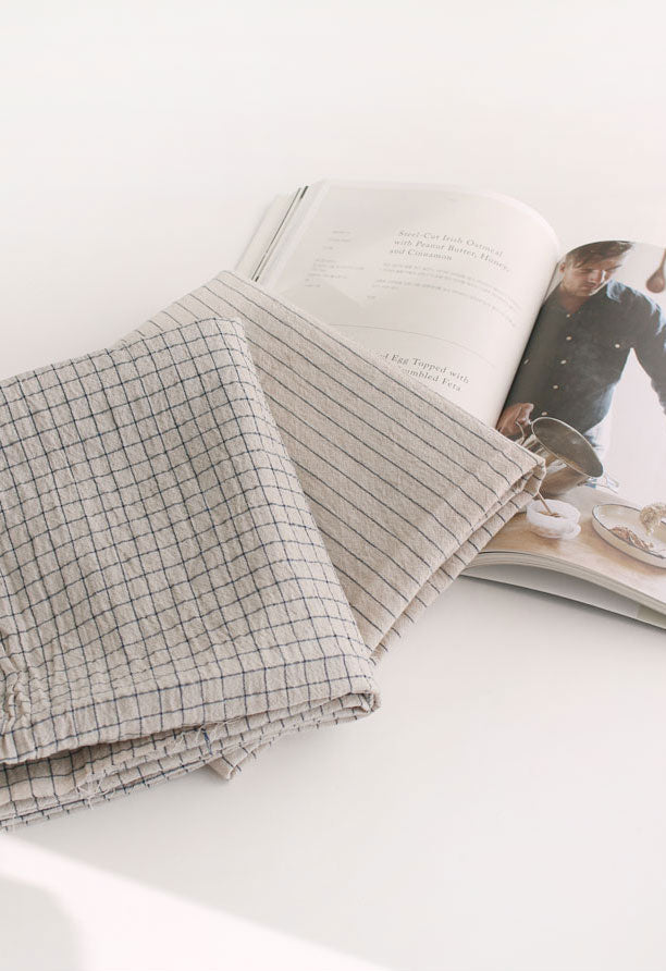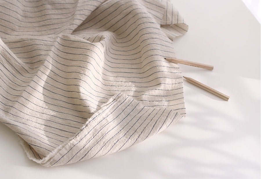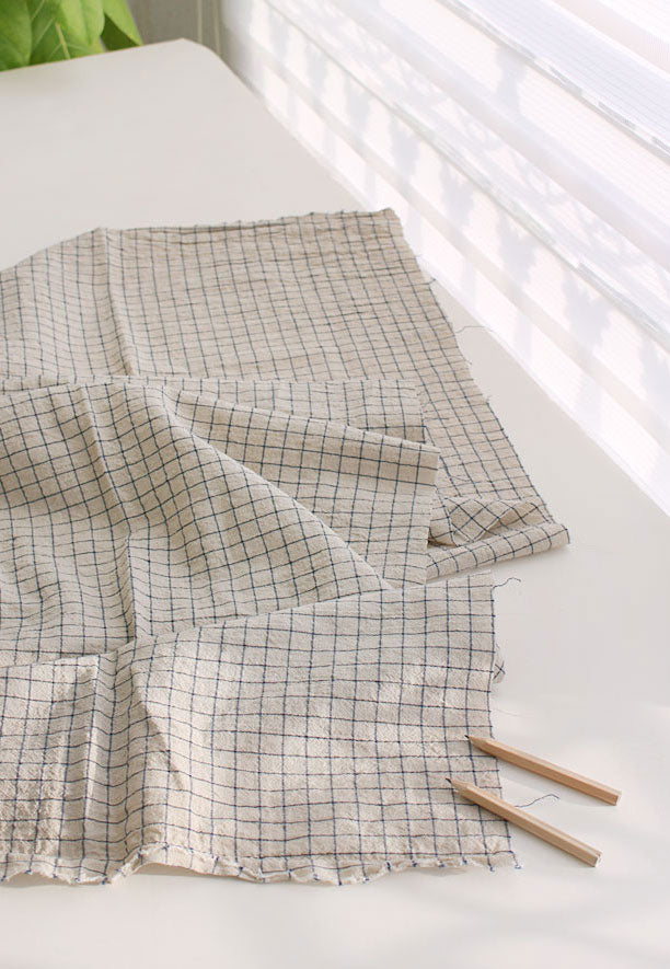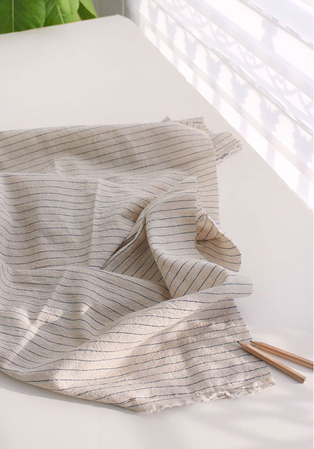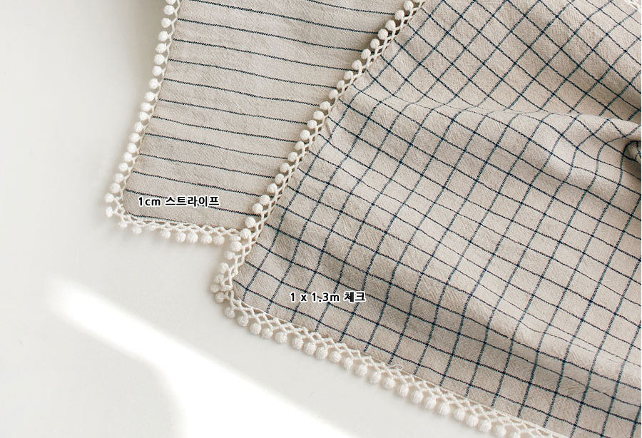Natural French Check & Stripe Patterned Fabric made in Korea / Half Yard