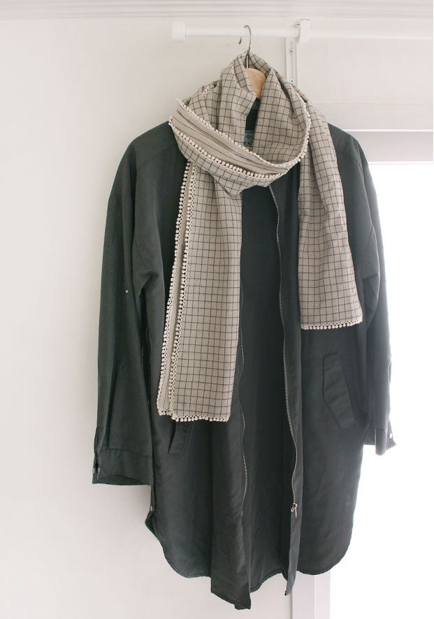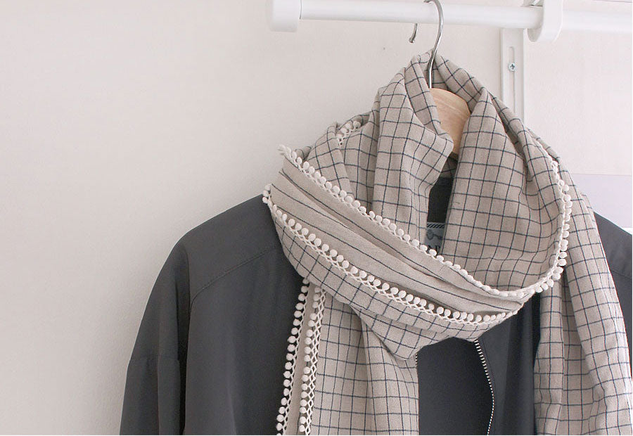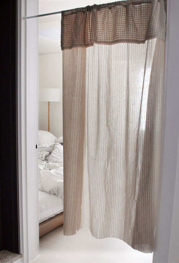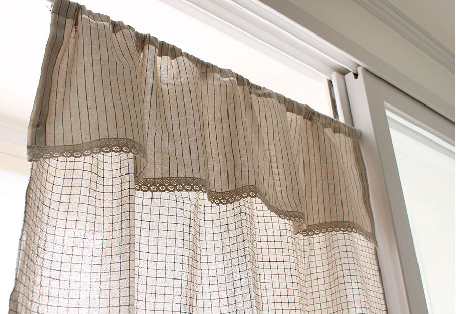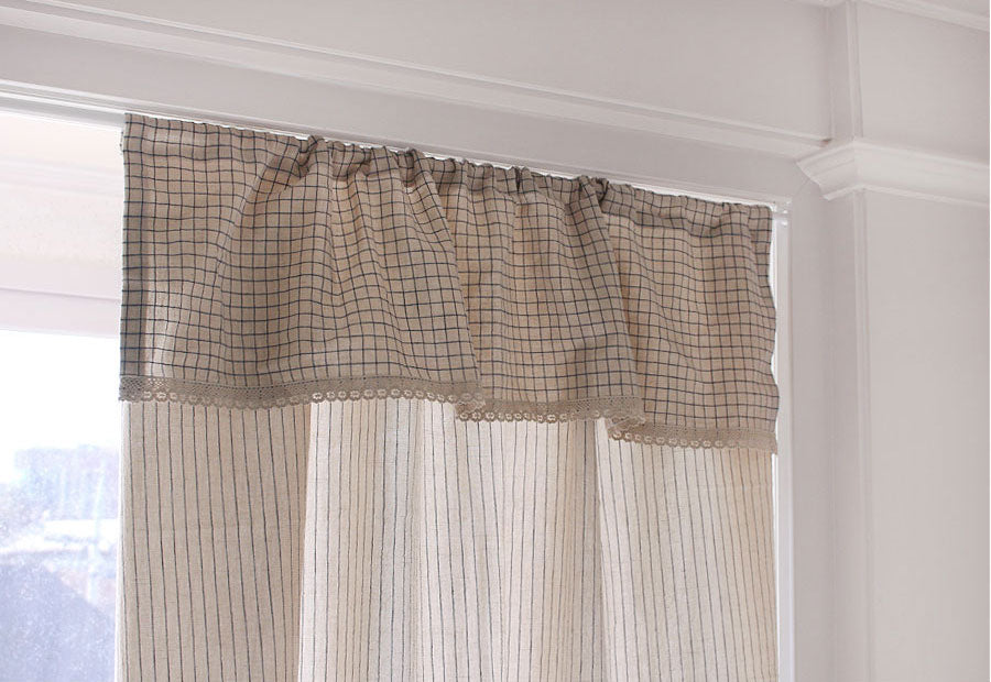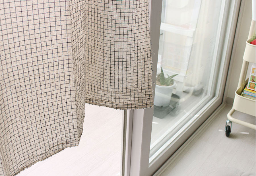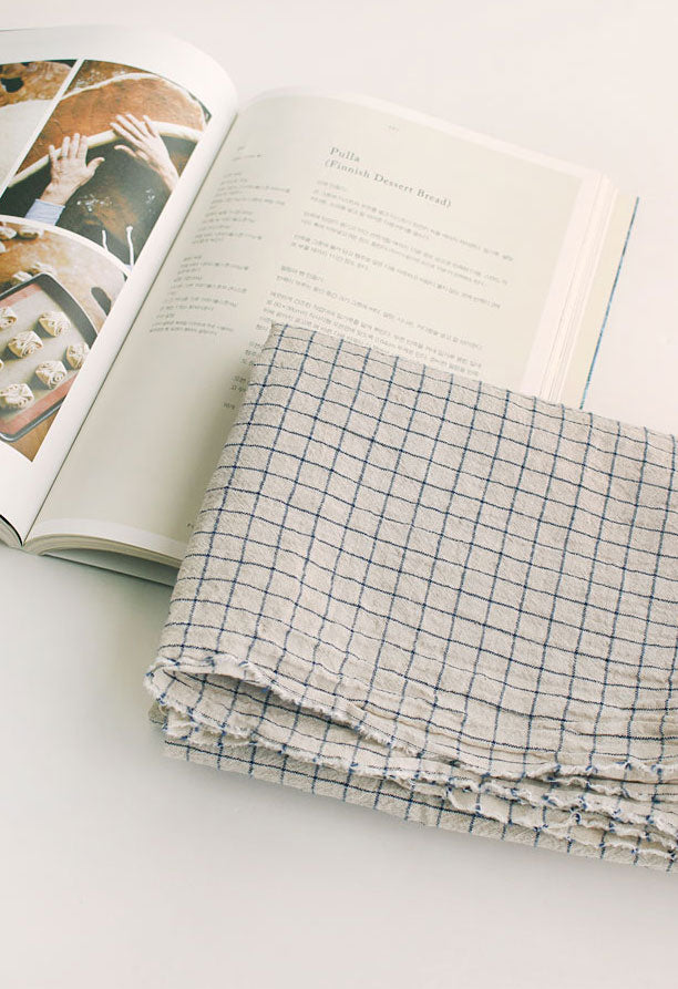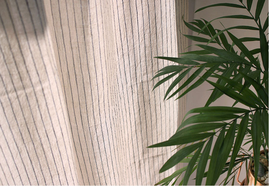Natural French Check & Stripe Patterned Fabric made in Korea / Half Yard