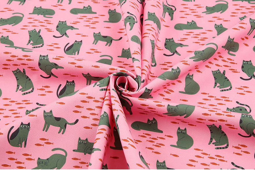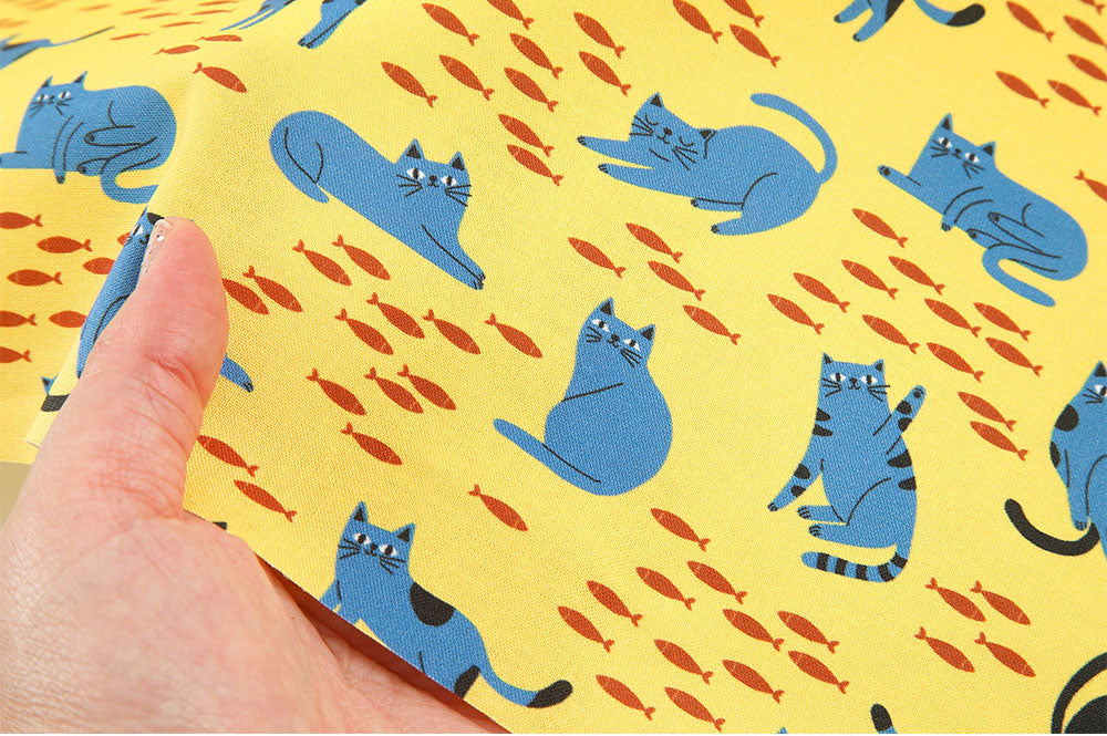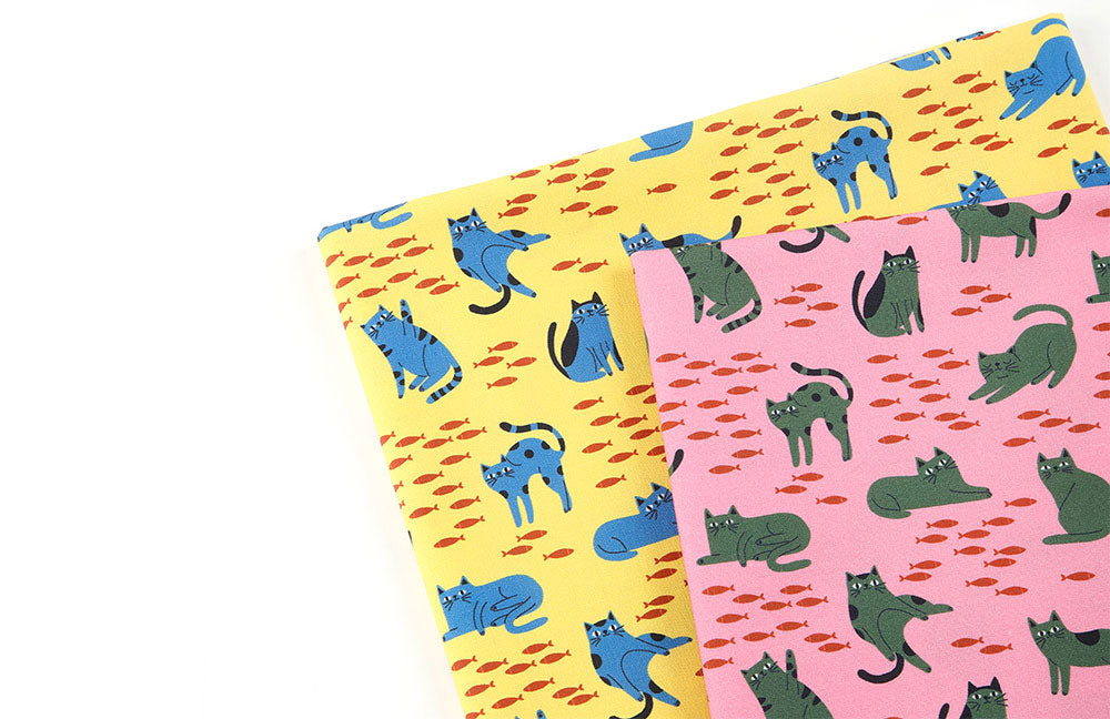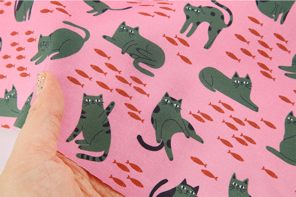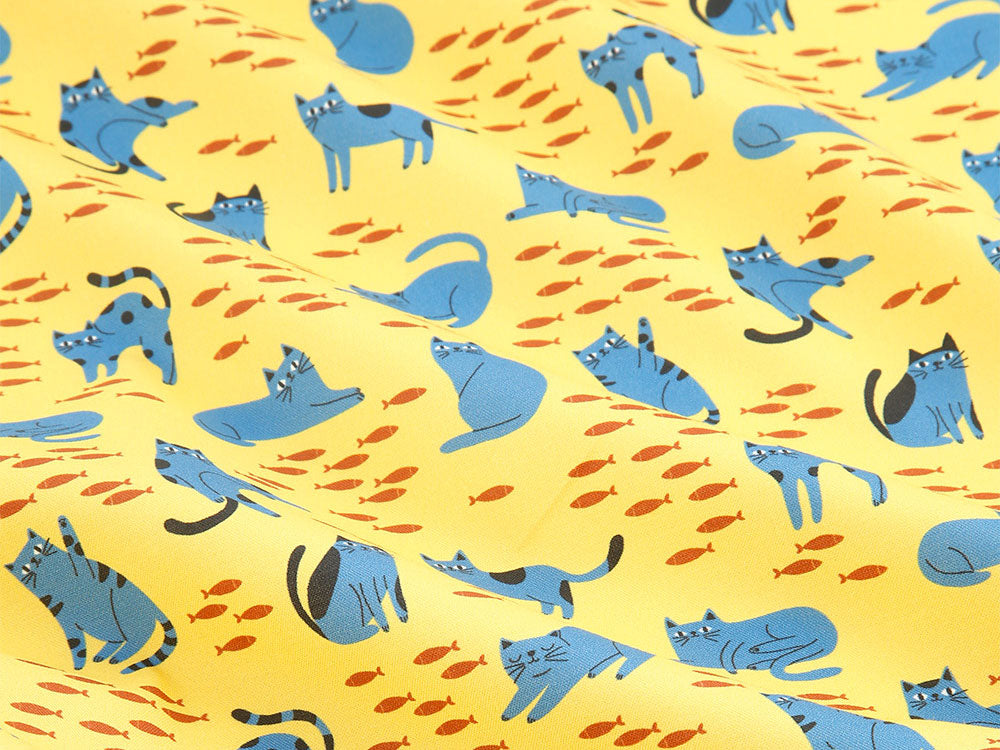 Fish & Cat Kitten Patterned fabric - Korean Fabric
