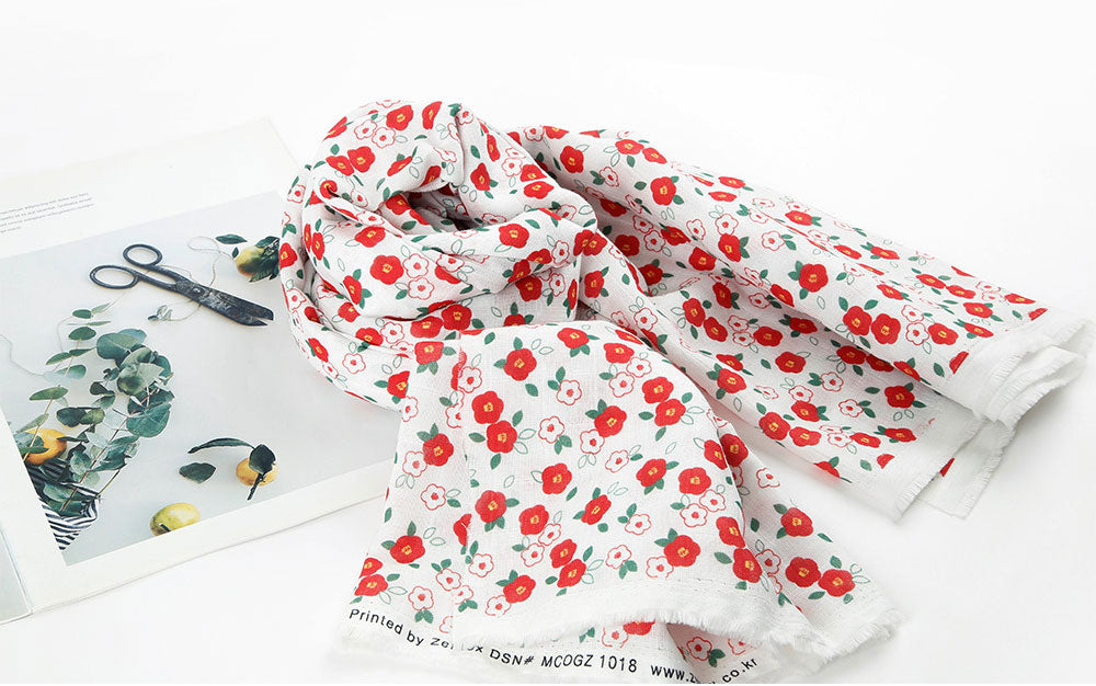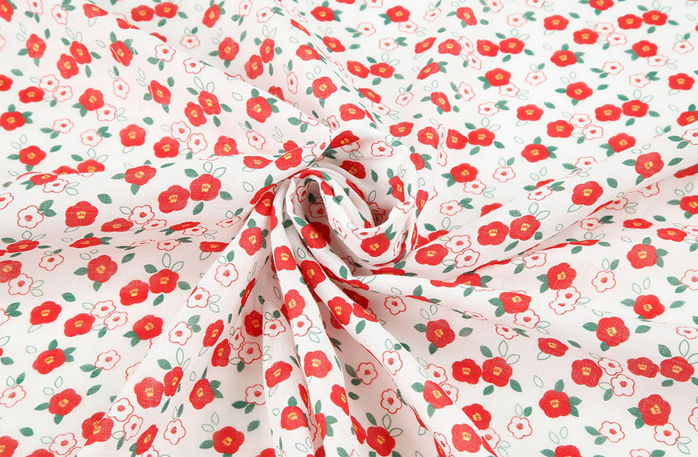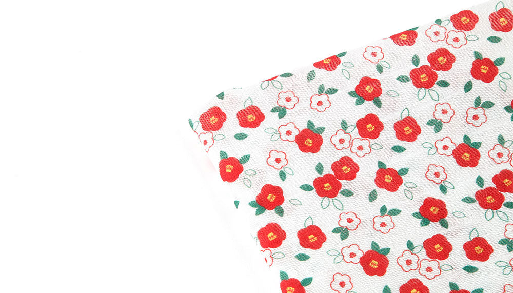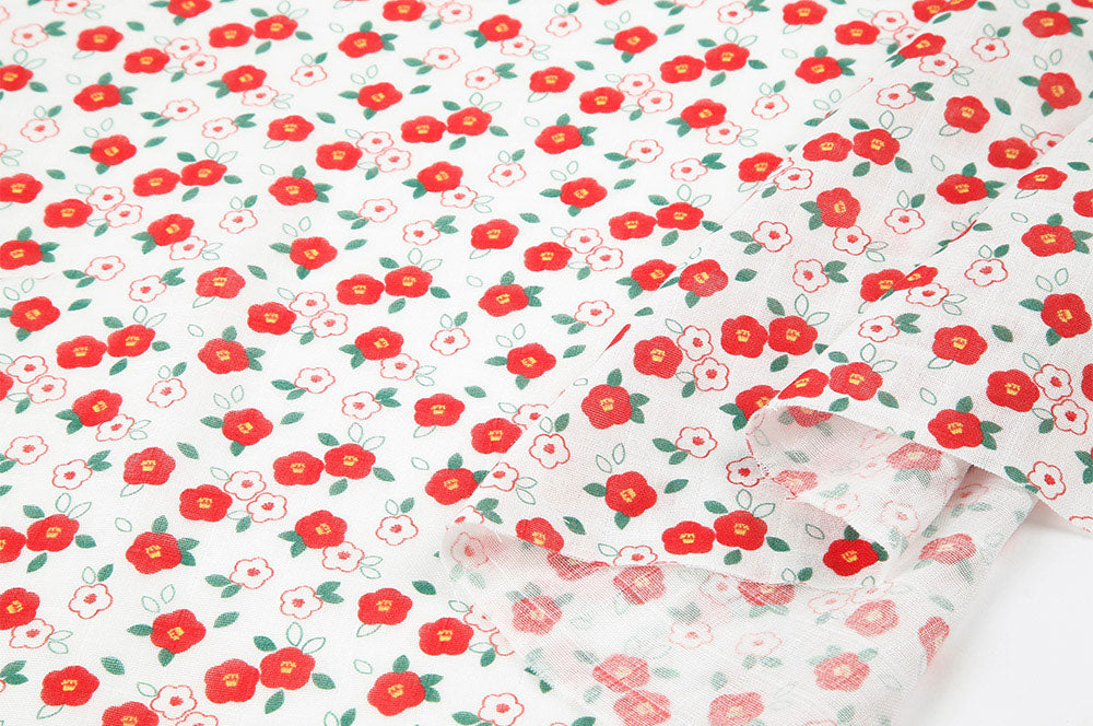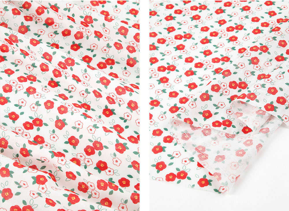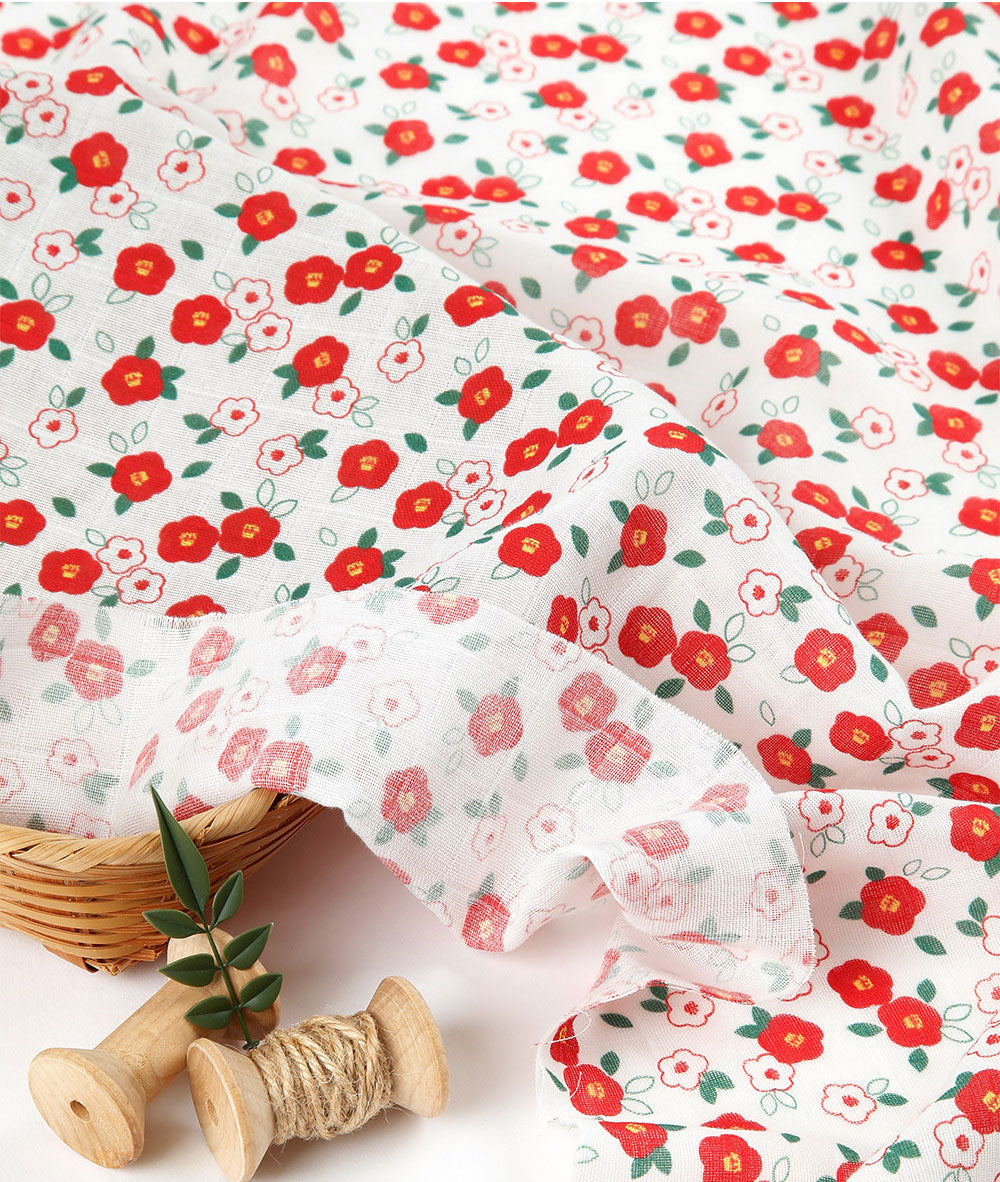 Camellia Flower Patterned Double Gauze Fabric - Korean Fabric